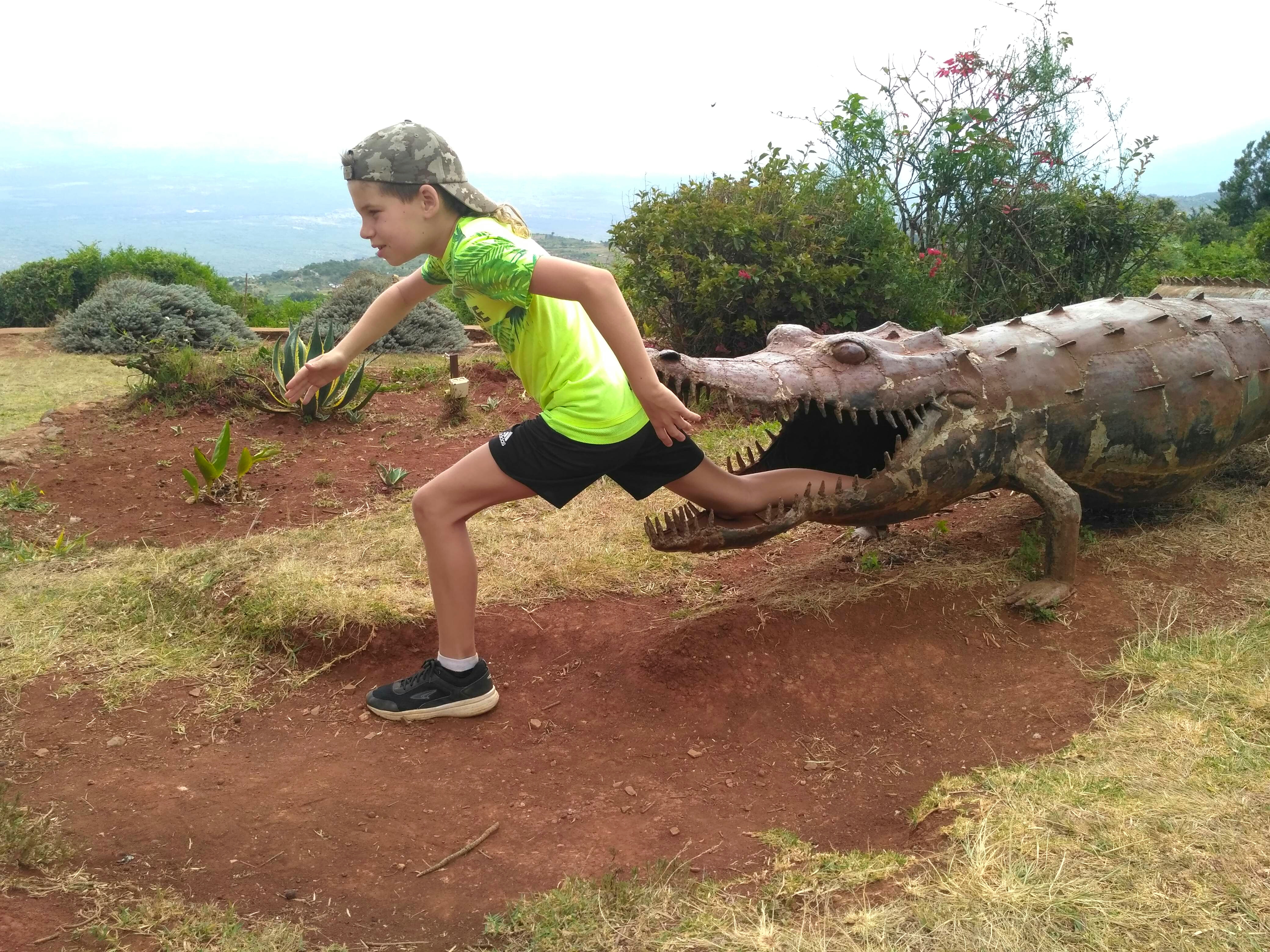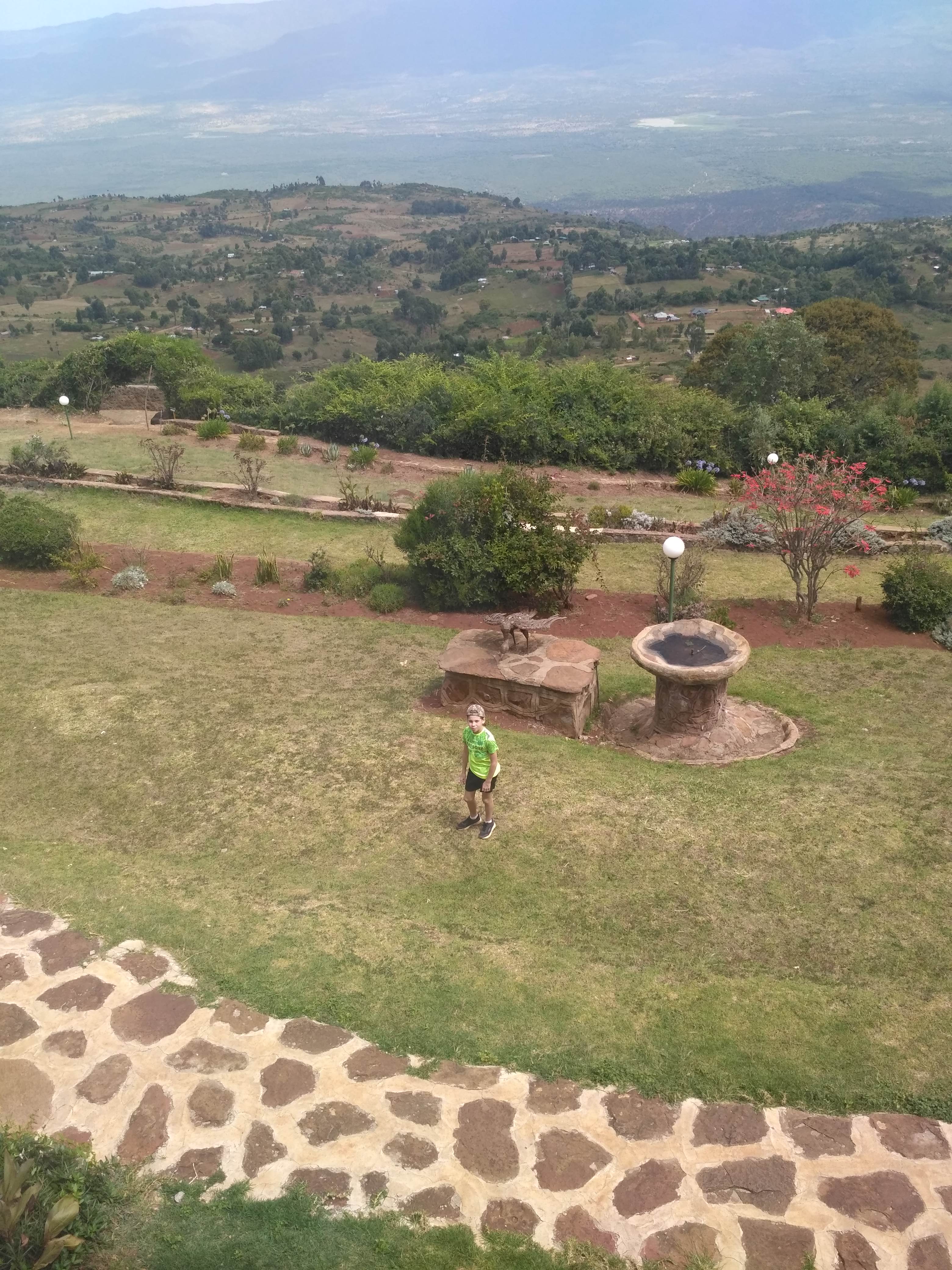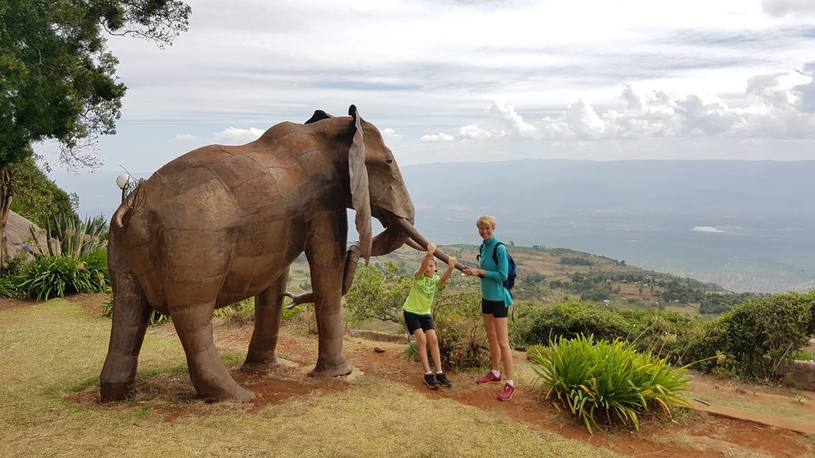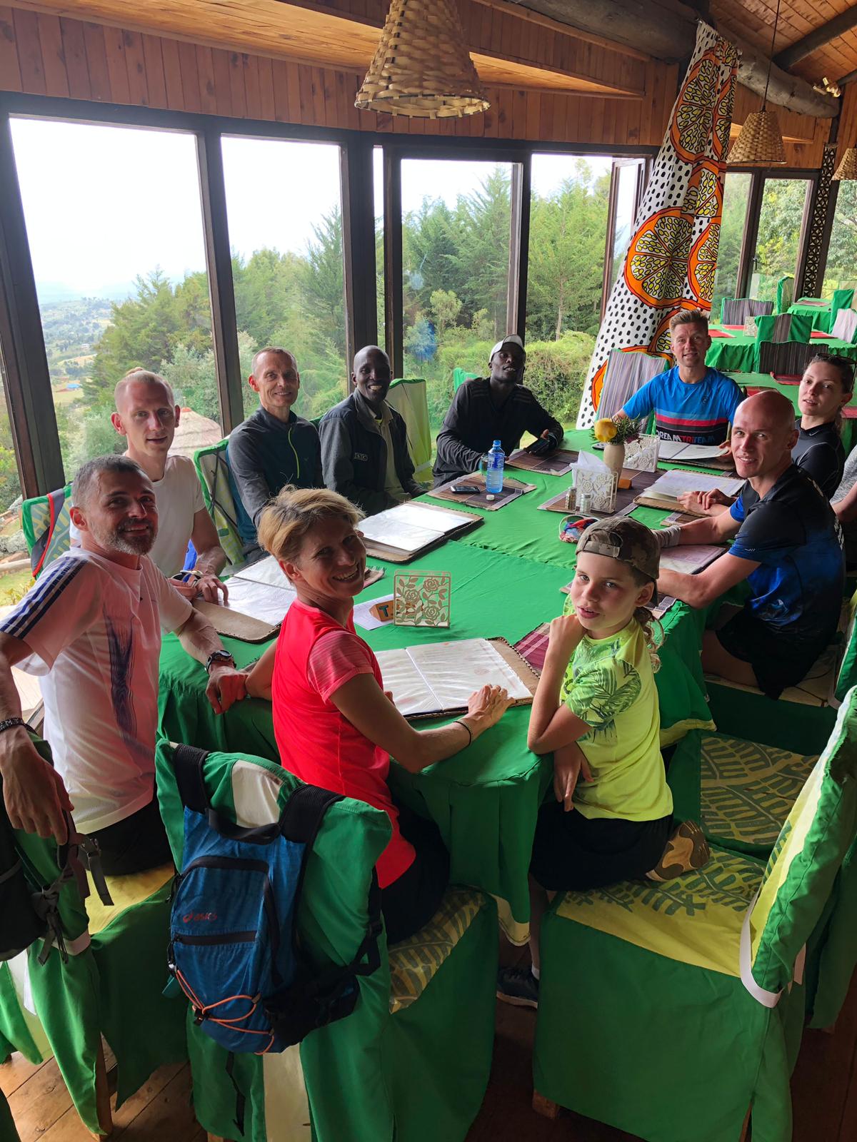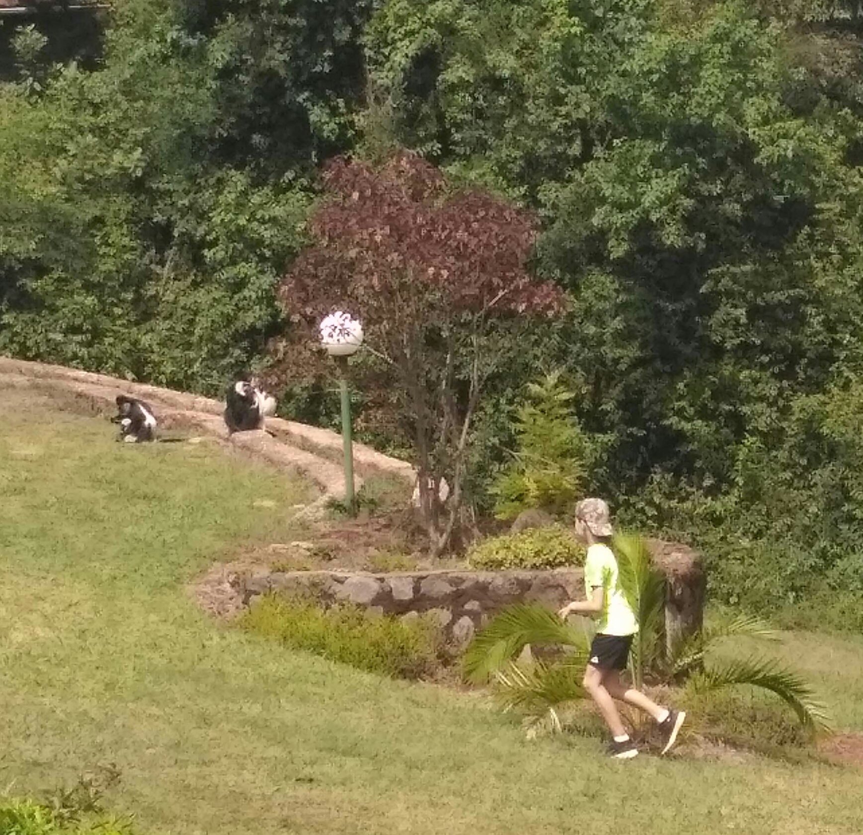Po dwóch godzinach wróciliśmy do Iten. Matatu podwiozło nas pod Kerio View. Chcieliśmy pokazać grupie kolejny z punktów widokowych. Wszyscy byli bardzo głodni, postanowiliśmy coś zjeść w tamtejszej restauracji. Widok z wielkich okien jest tam fantastyczny. Zamówiliśmy napoje i dania główne. Na zimne piwo nie trzeba było długo czekać. Obiad dostaliśmy chyba po godzinie. Było bardzo smacznie, my z Jankiem zjedliśmy super pizzę, reszta lokalne potrawy. Na zewnątrz restauracji po trawie biegały biało czarne małpy. Po wyjściu z restauracji dogonił nas Marcin Lewandowski. Razem z Angeliką Cichocką, Patrycją Wyciszkiewicz i Michałem Rozmysem trenują tu formę do wiosennego sezonu halowego. Spędzą tu trzy tygodnie. Marcin pochwalił się, że ostatni tydzień zamknął kilometrażem 180. Proponowaliśmy mu spotkanie z nami i Bartkiem i wspólną jogę, ale mają swój harmonogram. Spacerem wróciliśmy do domu. Teraz był czas na siestę.