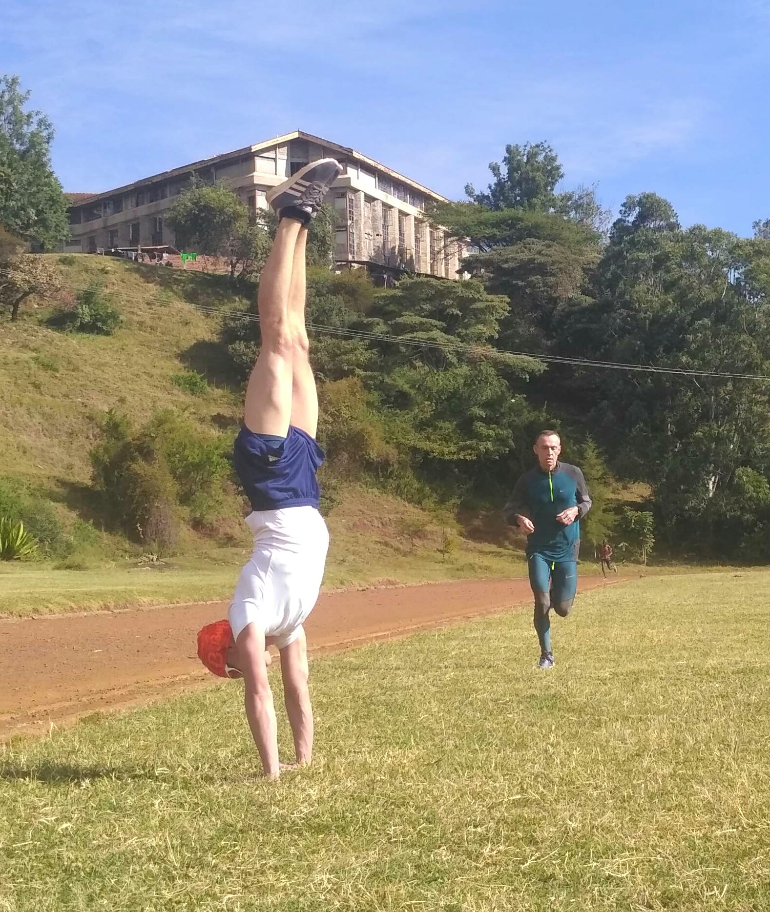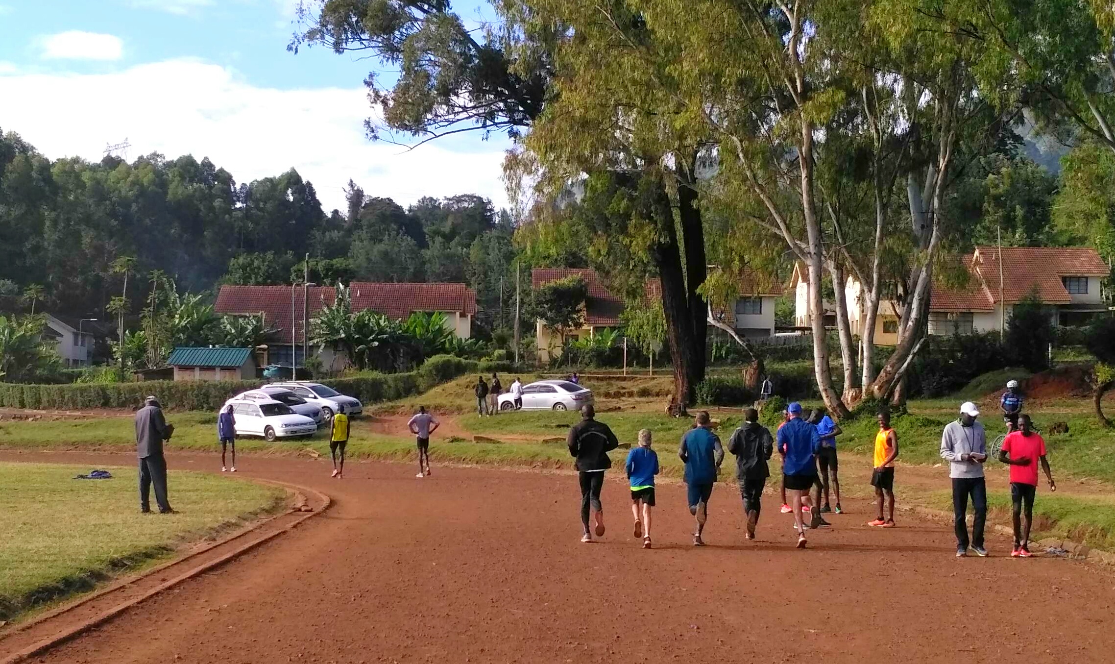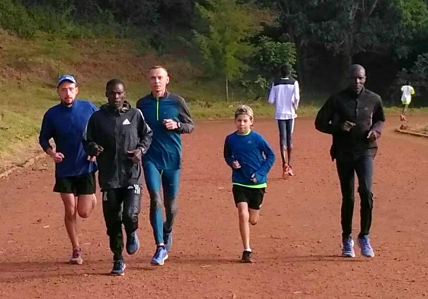 Na stadionie byli też inni coache, którzy ze stoperami sprawdzali poprawę swoich podopiecznych. Żar lał się z nieba i z ciał galopujących z prędkością ok 2:30/km Kenijczyków. Nasza ekipa miała okazję z bliska poczuć ten pęd i jak sami mówią „znaleźć swoje miejsce w szeregu”. Jeden z tamtejszych trenerów podszedł do nas pytając się skąd jesteśmy. Od razu zwrócił uwagę na Antka, Porannego Biegacza, pytając czy jest 800 metrowcem. Gdy usłyszał, że ten biega maratony, skwitował tylko, że na maraton to Antek jest za wysoki.