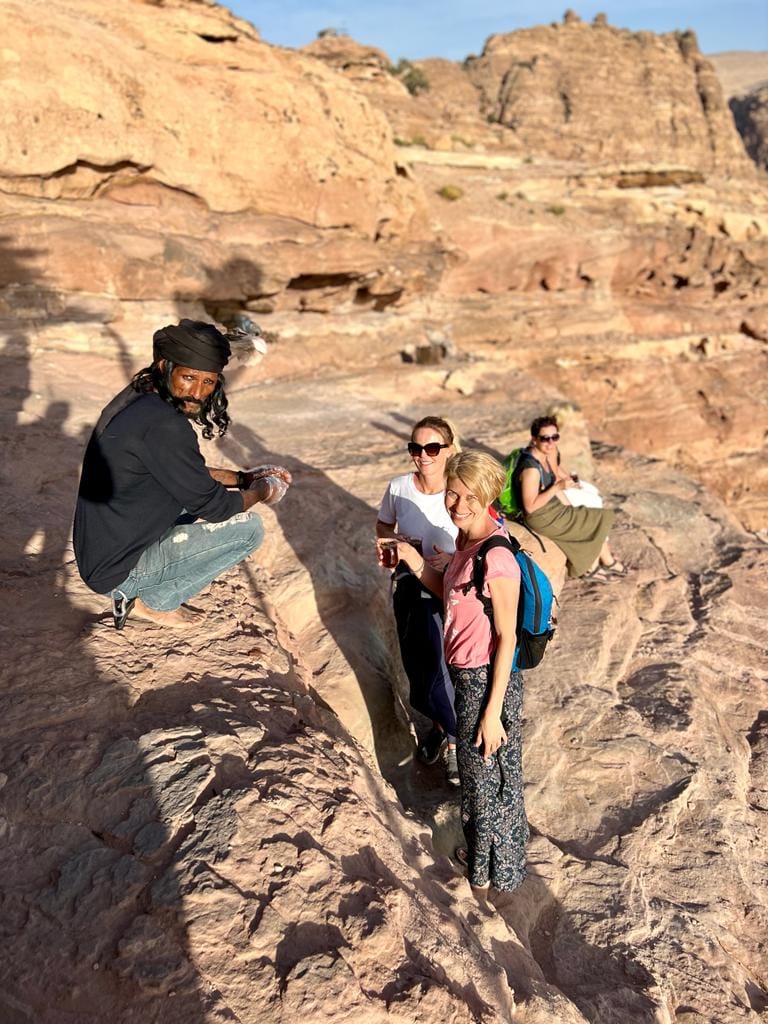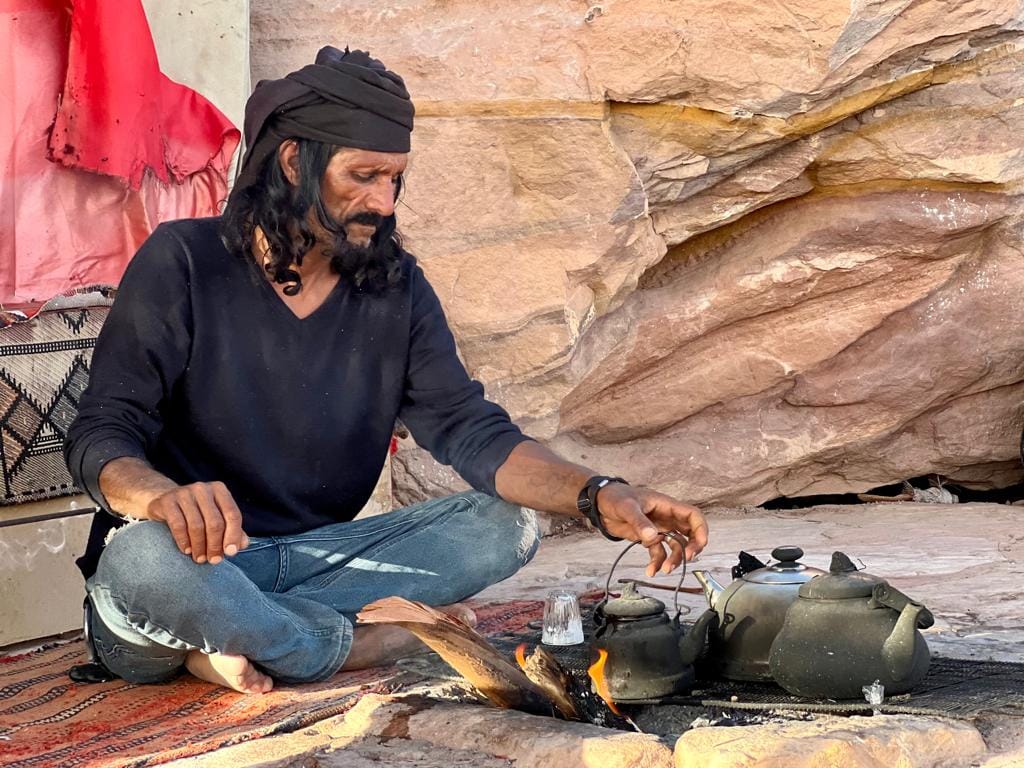 Miejscowi zagospodarowali półki skalne zachęcając, by usiąść i napić się herbaty z widokiem na starożytne miasto. Oczywiście każdy oferowany widok był „the best”. 😉 Natomiast każdy z Arabów wyglądał jak Jack Sparrow. Czarne kreski wokół ich oczu mają wydobyć z nich blask. Skorzystaliśmy z propozycji i napiliśmy się słodkiej herbaty z miętą w jednym z takich bestów. Views były naprawdę spektakularne.