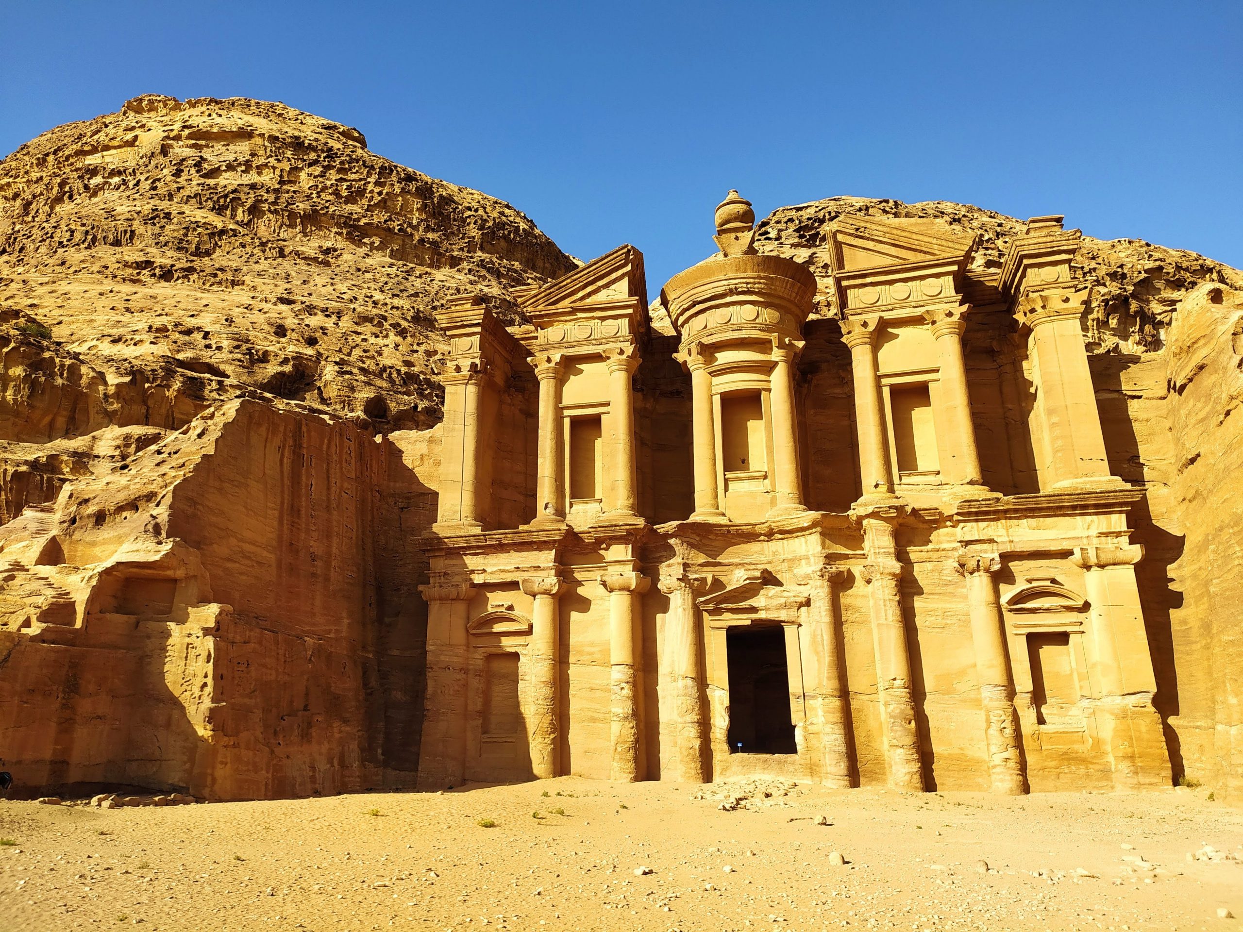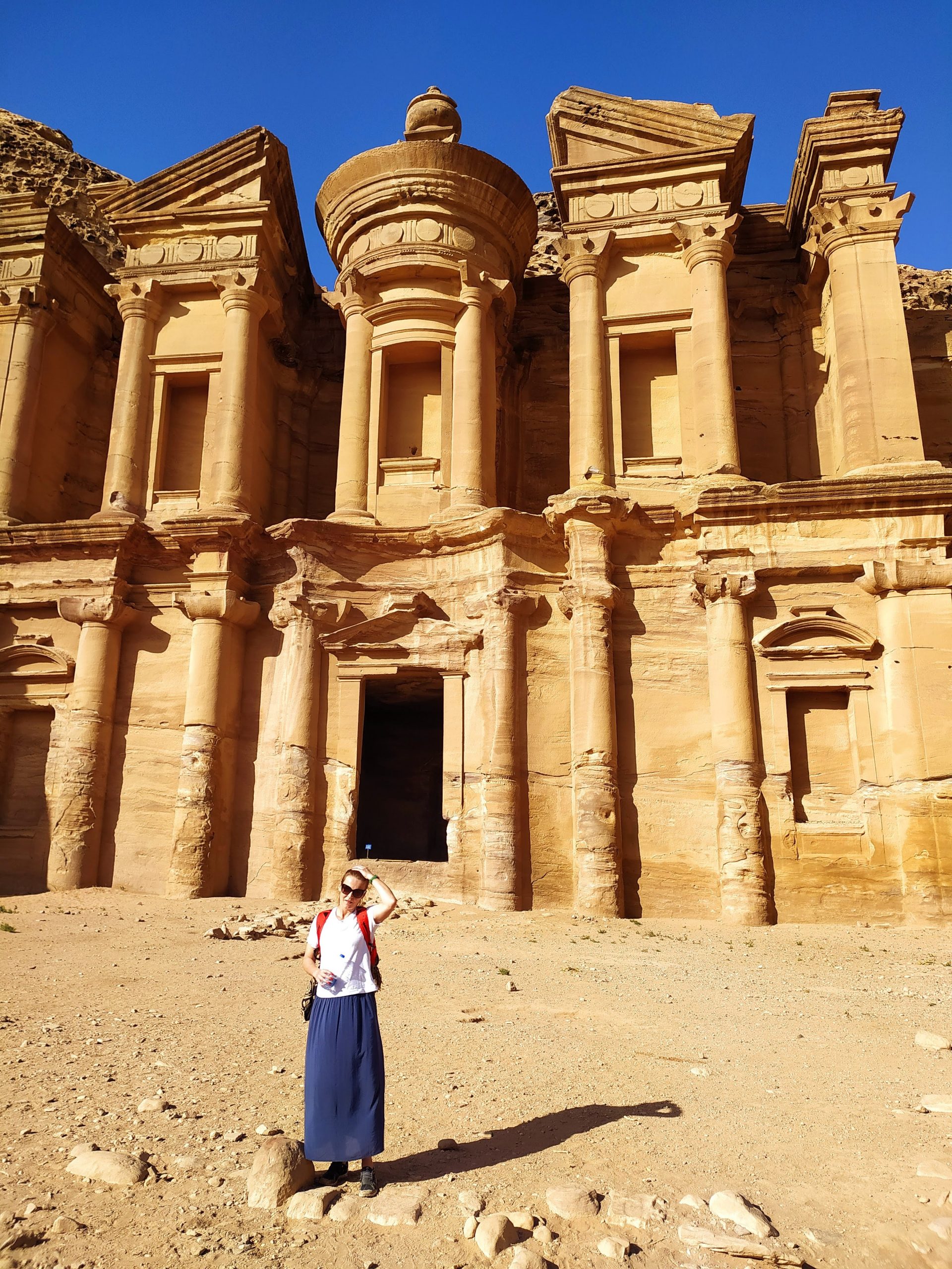 Petra – starożytne królestwo Nabatejczyków. Wykute w skale świątynie, grobowce, groty służące kiedyś za domy. Leżąca na przecięciu dawnych szlaków handlowych, zniszczona przez trzęsienia ziemi. Wchodząc tam przenosisz się w inny świat. Stojąc na wyższych skalnych półkach słyszy się gwar dobiegający z dołu, tętent koni – można zamknąć oczy i wyobrazić sobie jak było tu 2 tys lat temu.