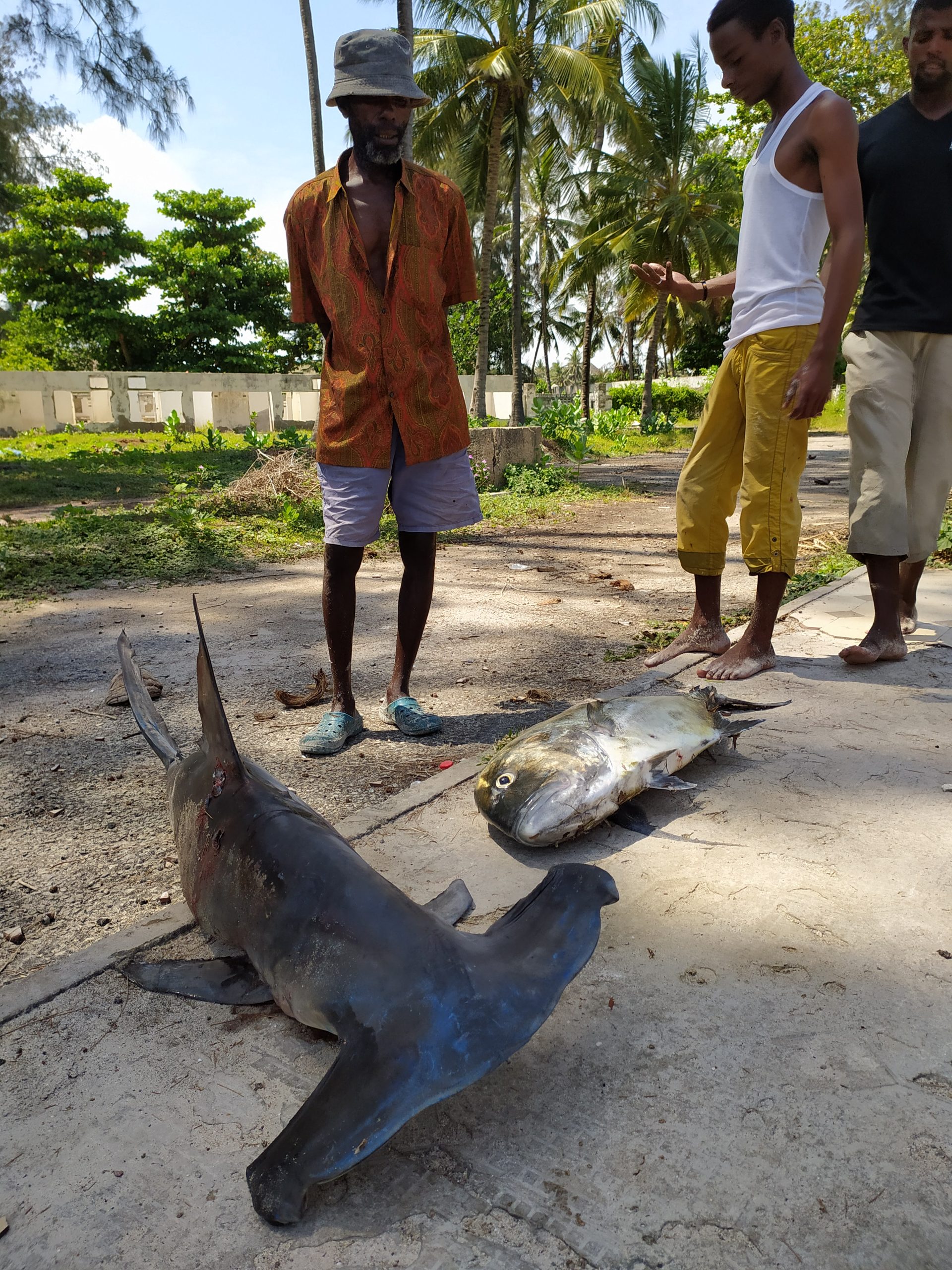 Pizza była bardzo dobra, kelnerzy sztywniejsi niż w Iten, właściciel hotelu Włoch. Restauracja położona w pięknie zadbanym, egzotycznym ogrodzie. Najedzeni poszliśmy na spacer, poszukać oceanu. Był zaledwie kilka minut od naszego domu. Spotkaliśmy rybaków, którzy wrócili właśnie z połowów. Nieśli ogromne ryby, mieli też rekina młota. Mimo że nie jestem wegetarianką, to zrobiło mi się żal tego pięknego stworzenia. Dotknęliśmy z yacoolem jego skóry. Gdy głaskało się go w kierunku ogona był idealnie gładki, gdy przejeżdżało się dłonią w kierunku głowy szorstki jak dwudniowy męski zarost.