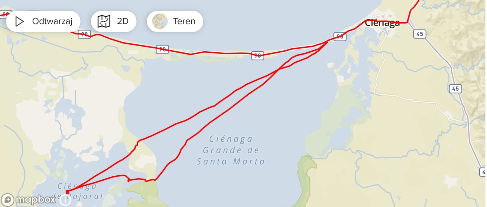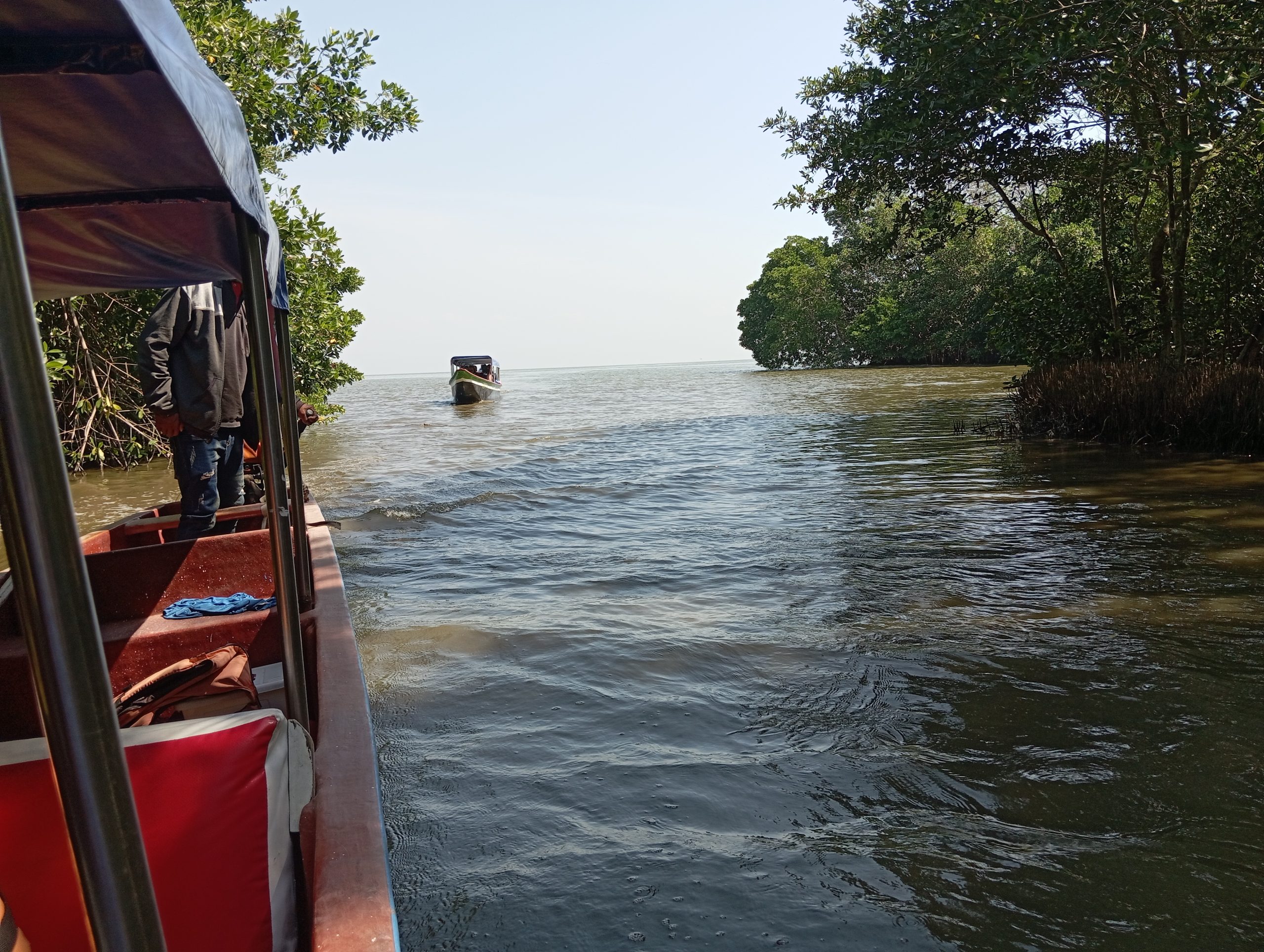 Po drodze mijaliśmy olbrzymi zbiornik wodny, Cienaga. Zatrzymaliśmy się tam na wycieczkę. Gigantyczne jezioro oddziela od morza wąska grobla. Dawniej nie było tu drogi, a między dwoma brzegami kursował prom. Gdy w końcu powstała droga asfaltowa, zamknęła ona naturalne kanały, którymi woda słona mieszała się ze słodką spływającą rzekami do jeziora. Tworzyło to specyficzny mikroklimat i warunki życia dla wielu zwierząt. Budowa drogi, usunięcie olbrzymiej ilości lasów namorzynowych spowodowała katastrofę ekologiczną. Próbowano potem jakoś temu zapobiec, tworząc pod drogą kanały ułatwiające wodom mieszanie się, ale nie udało się odzyskać stanu pierwotnego.