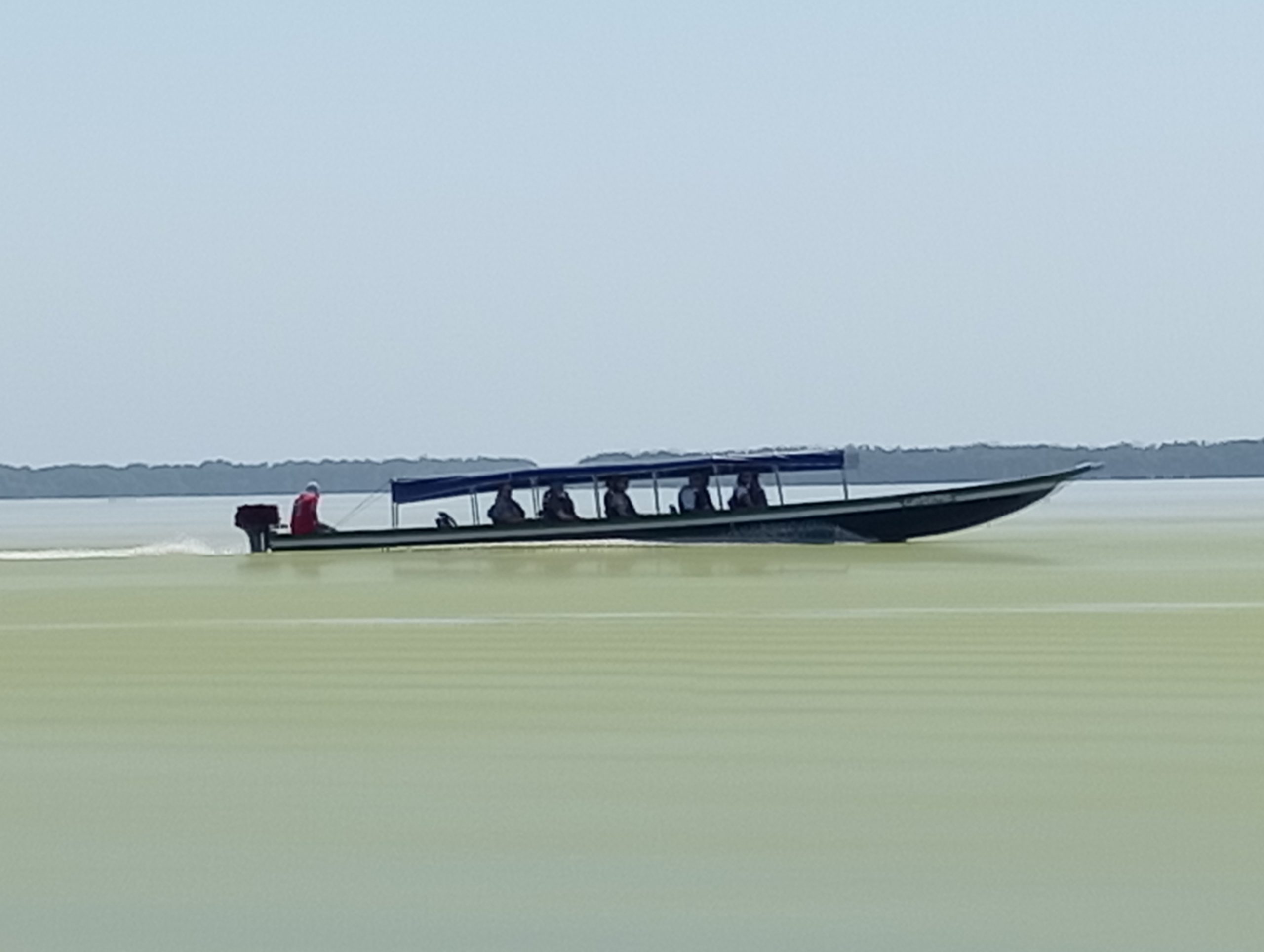 Jezioro zamieszkuje obecnie ok 200 gatunków ryb. Występujące na nim lasy mangrowe niejako dzielą rozlewisko na 22 mniejsze jeziora. Rybacy nadali im nazwy, a każde jezioro ma swoje specyficzne gatunki ryb, zależnie od stopnia zasolenia. Miejsce to określa się też „International Birds Airport”. Żyje tu ponad 150 gatunków ptaków, z tego ok 50 przylatuje tu zimować z Kanady czy Europy. Przepłynęliśmy wąskimi kanałami między drzewami mangrowymi. Nad naszymi głowami latały ptaki.