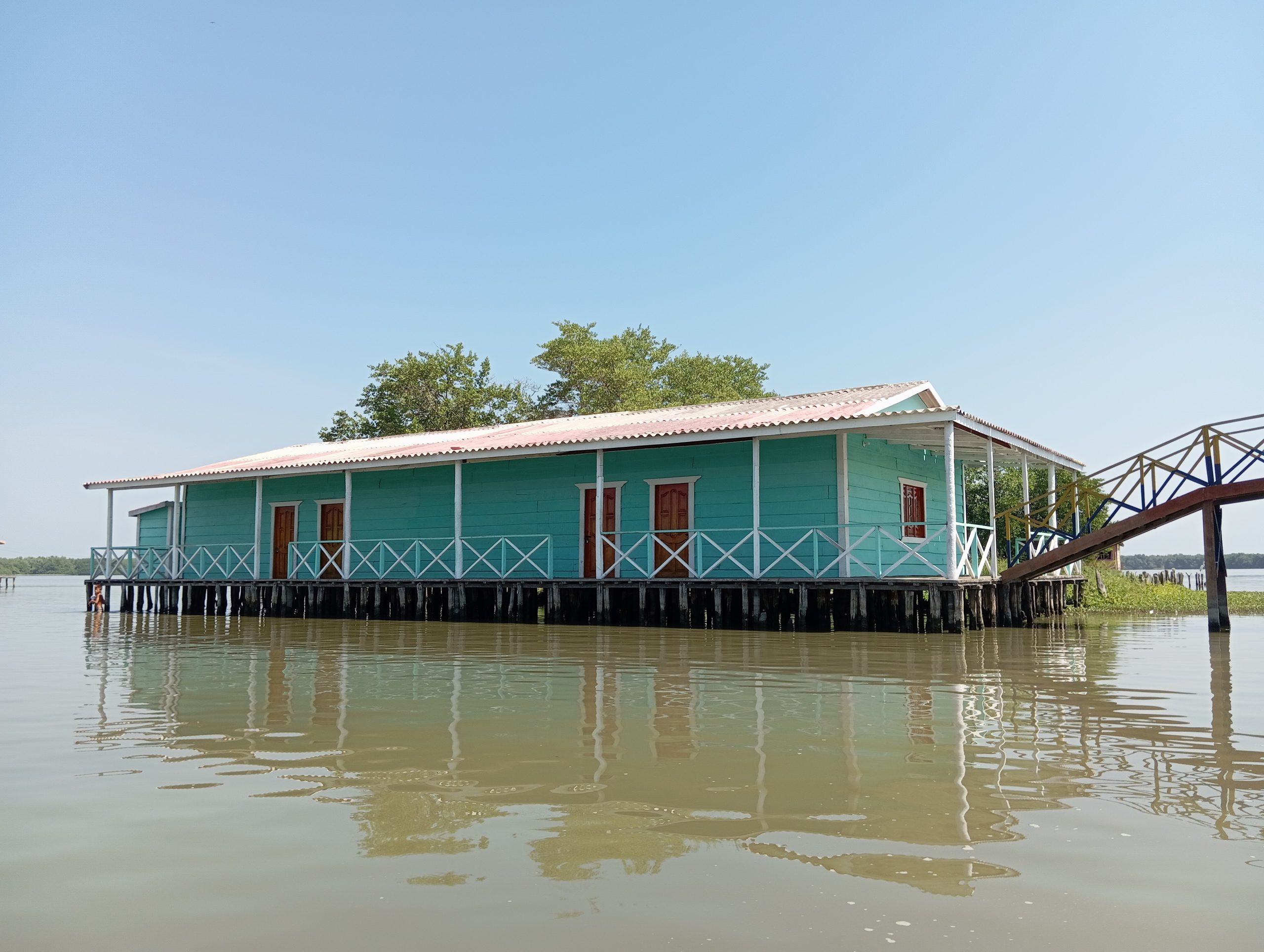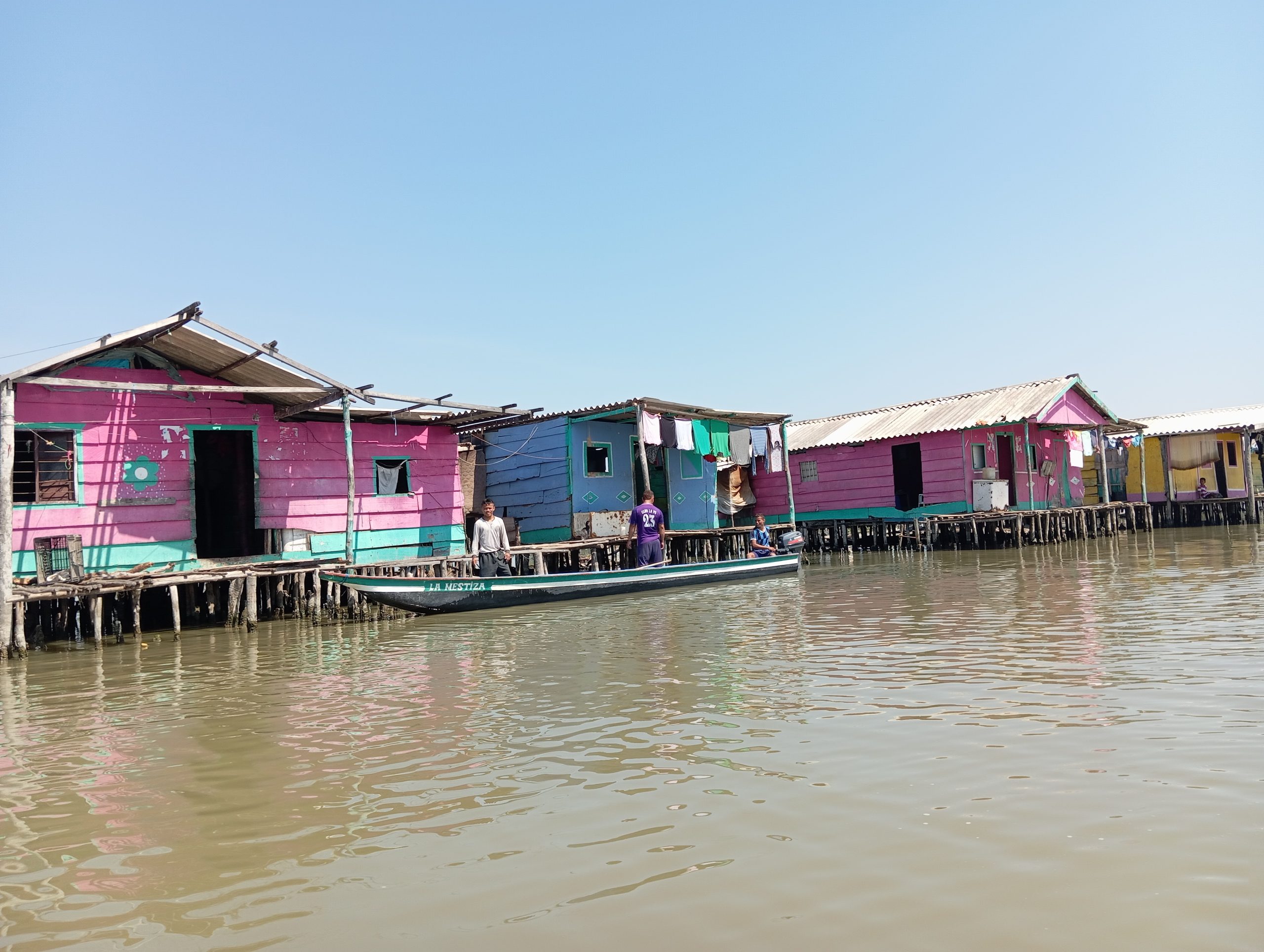 My odwiedziliśmy dwie z takich wiosek – New Venice i Buenavista. Pierwszą zamieszkuje około 3500 ludzi, drugą ok 1200. Poza domami rybaków, były tam szkoły, kościoły, sklepiki, małe restauracje. Wszystko zbudowane na wodzie, na palach, pomalowane różnokolorowo, jak wszystko w Kolumbii.