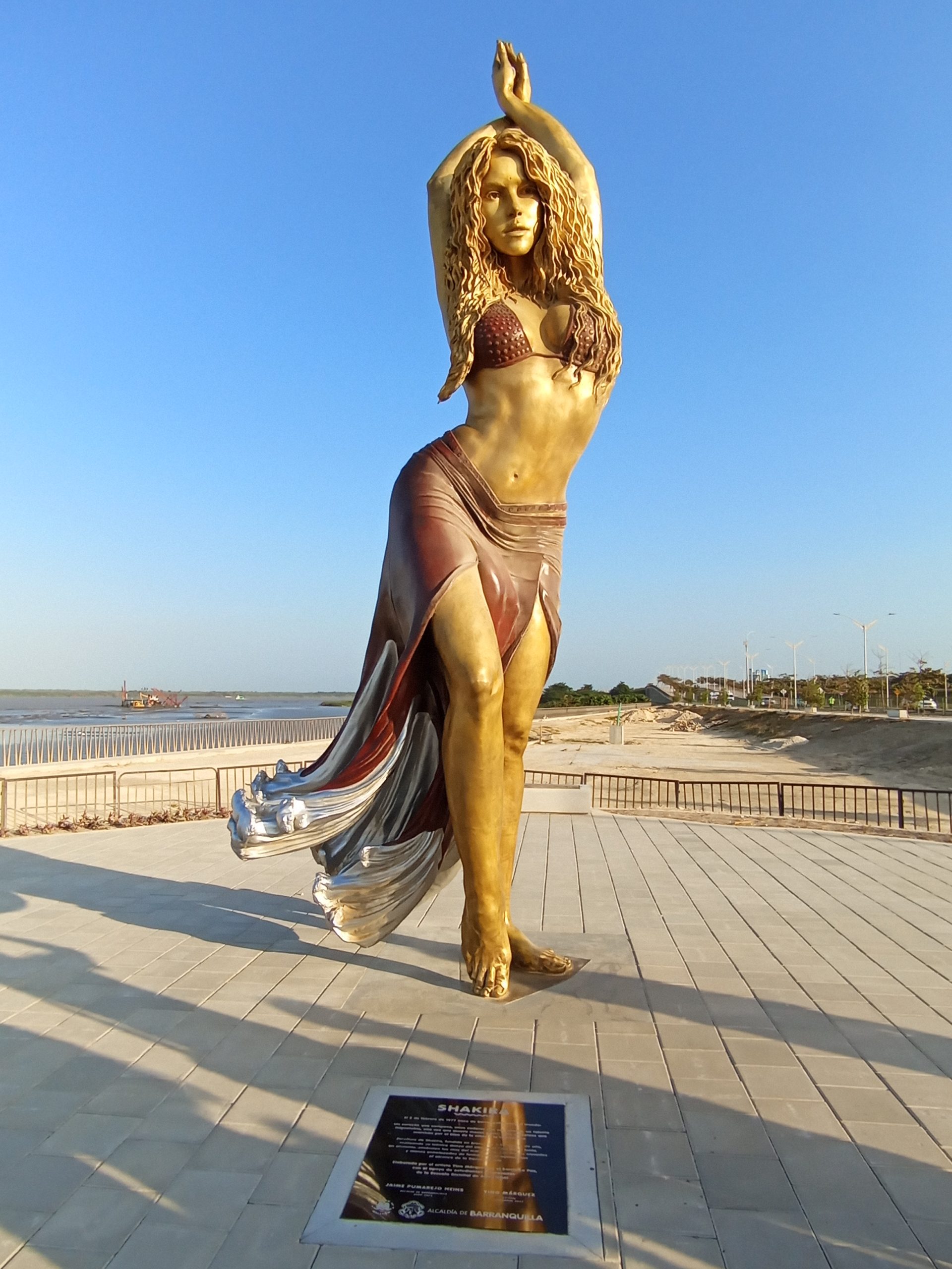 Później ruszyliśmy naszym wesołym busem dalej w kierunku Cartageny. Po drodze przejechaliśmy przez miasto Barranquilla, skąd pochodzi Shakira. Szybka fota przy pomniku piosenkarki i dalsza jazda. W Barranquilla do morza uchodzi jedna z głównych rzek Kolumbii – Magdalena. Znajduje się tu także jeden z najważniejszych portów w kraju.