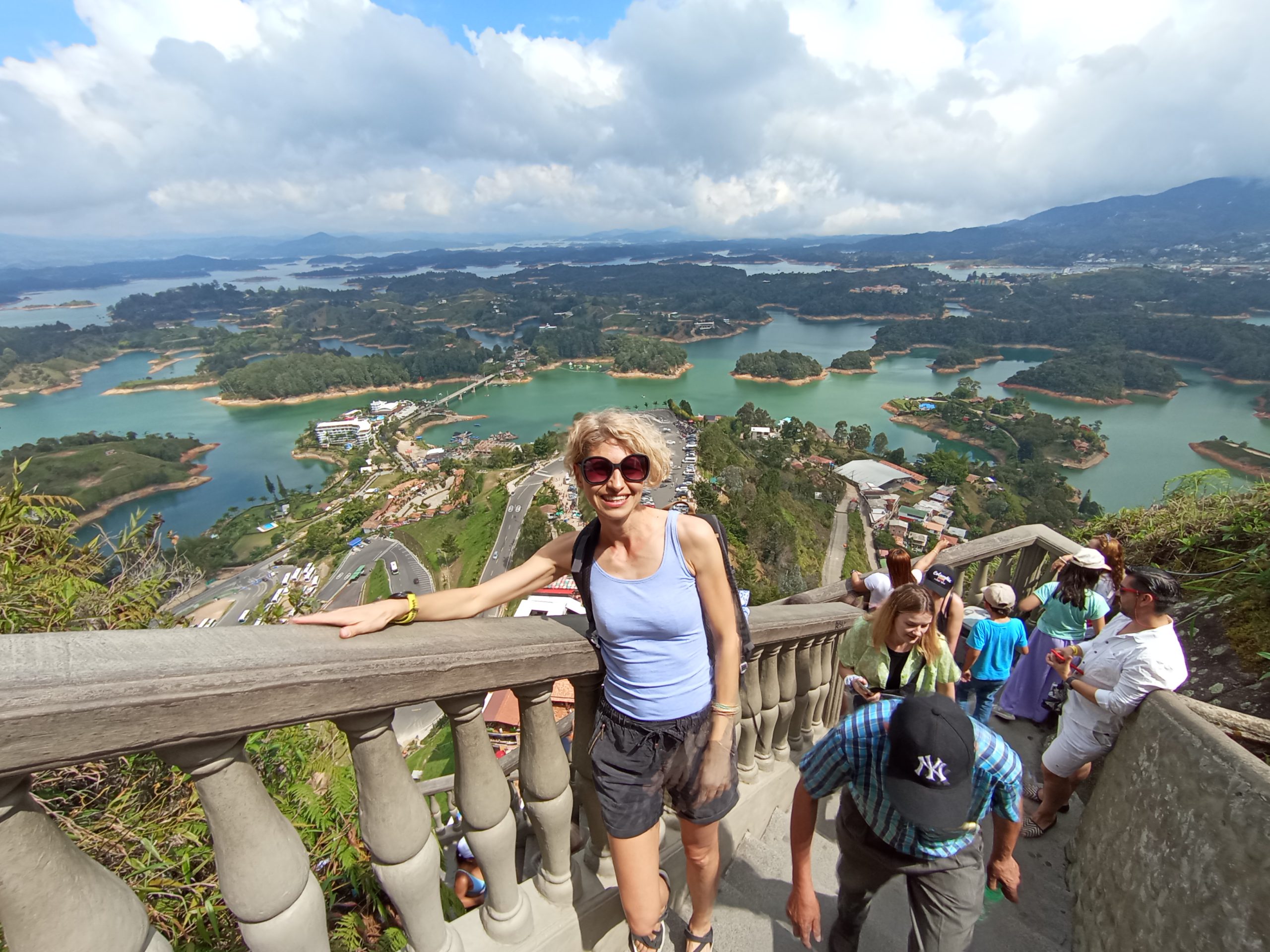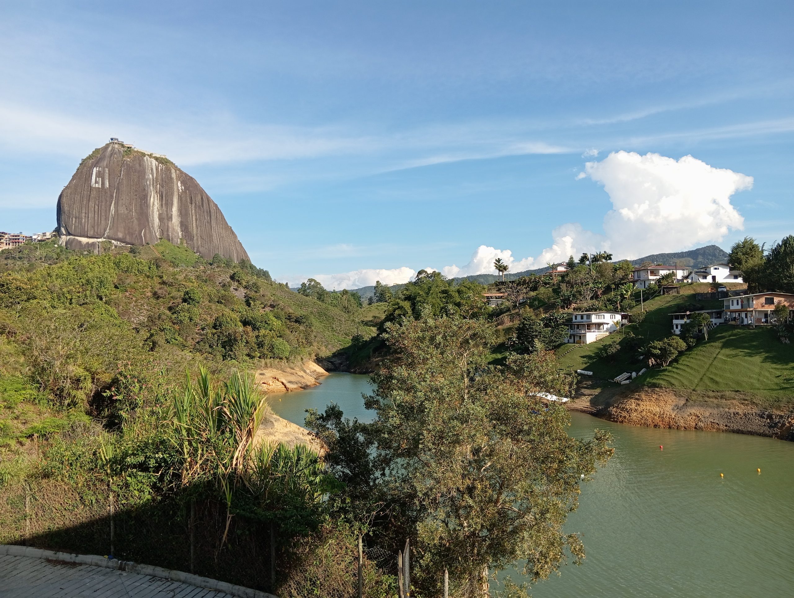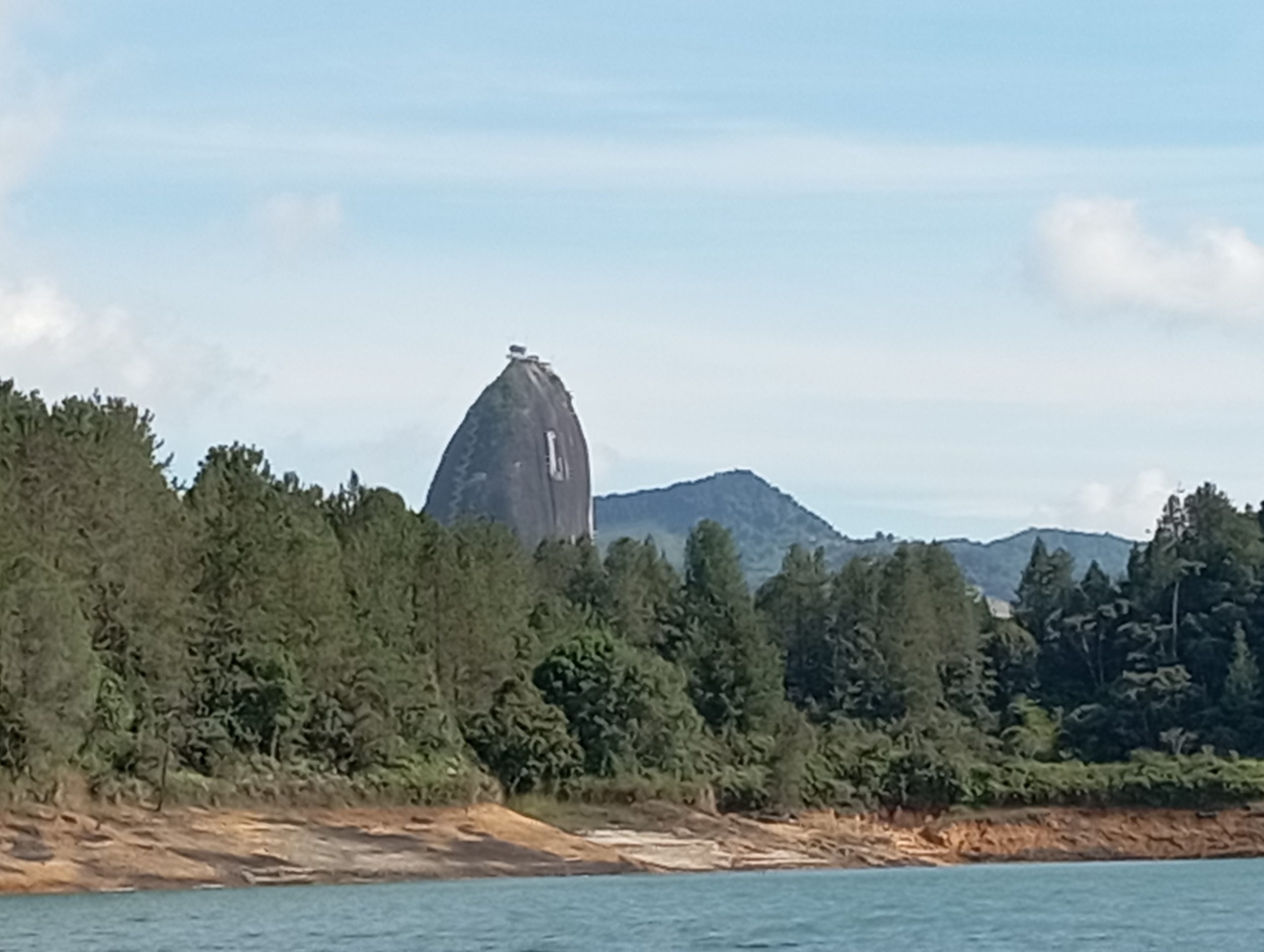 Między miasteczkami Guatape a Penol znajduje się olbrzymi obelisk. Jest to własność prywatna, a oba miasta rywalizują, do którego z nich należy. Była nawet próba podpisania kamienia, na jednej z jego ścian widoczna jest litera „G”. Z czasem w to miejsce zaczęły przyjeżdżać osoby, które chciały się wspiąć na skałę. A ponieważ to własność prywatna, właściciel postanowił zrobić z tego biznes. Wybudował zygzakowate schody, po których można wejść na płaski wierzchołek. Na górze oczywiście kramiki z napojami i pamiątkami. I widoki na całą okolicę z licznymi jeziorami. Jeziora są sztuczne, ale tworzą krajobraz niczym nasze Mazury. Można po nich pływać łódkami i na skuterach wodnych.