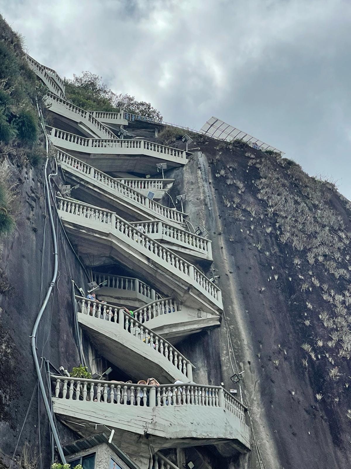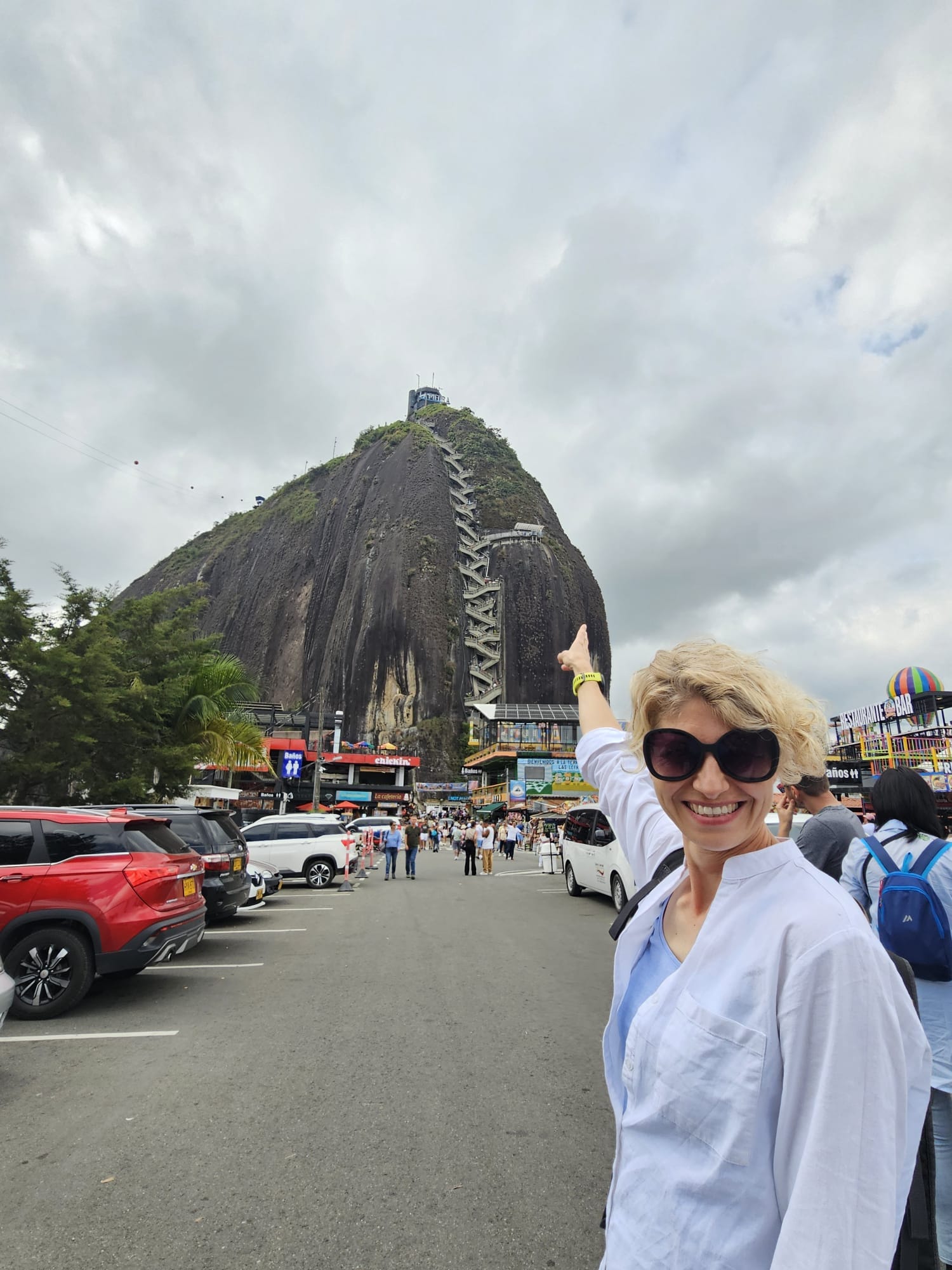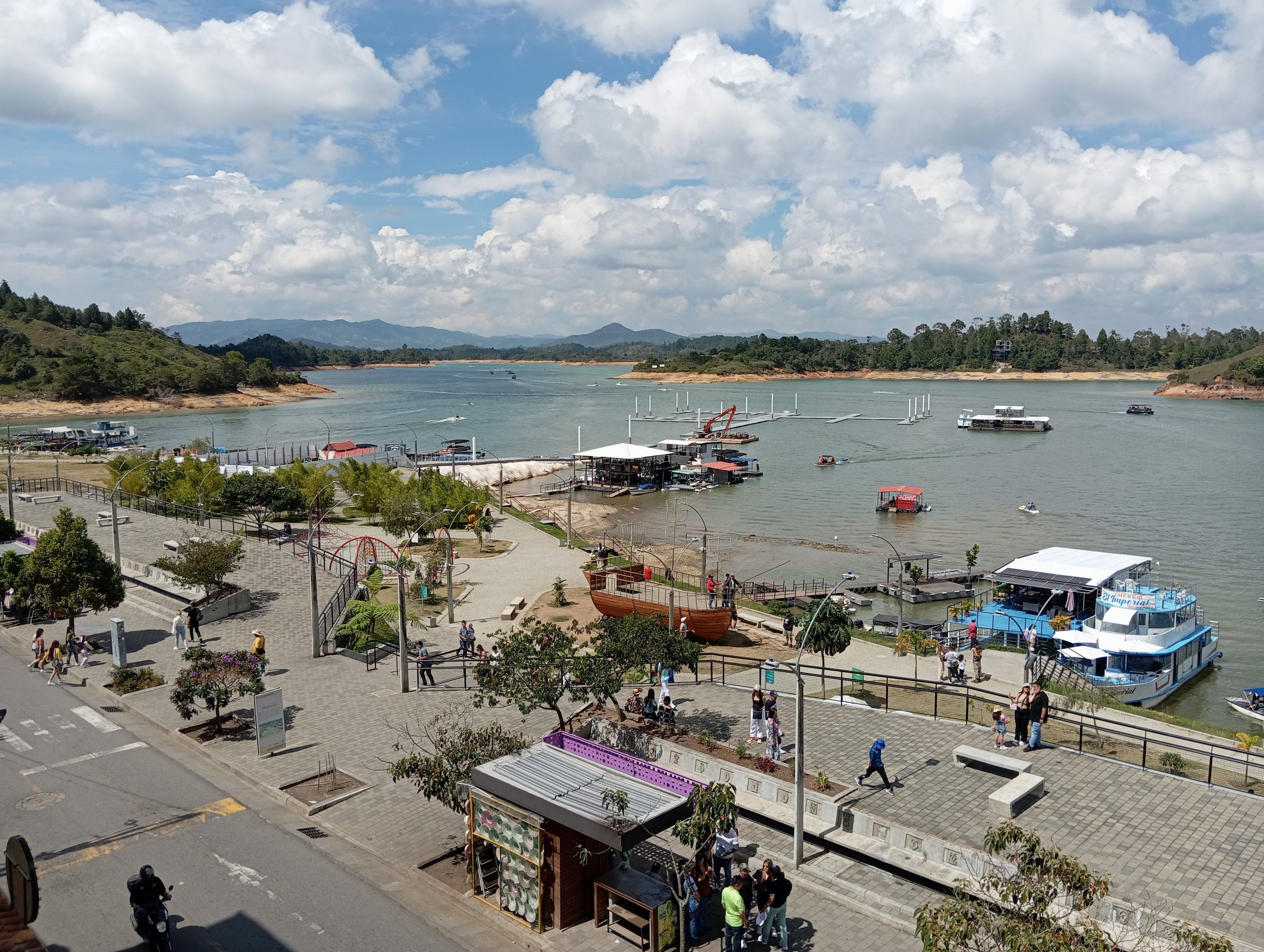 Między miasteczkami Guatape a Penol znajduje się olbrzymi obelisk. Jest to własność prywatna, a oba miasta rywalizują, do którego z nich należy. Była nawet próba podpisania kamienia, na jednej z jego ścian widoczna jest litera „G”. Z czasem w to miejsce zaczęły przyjeżdżać osoby, które chciały się wspiąć na skałę. A ponieważ to własność prywatna, właściciel postanowił zrobić z tego biznes. Wybudował zygzakowate schody, po których można wejść na płaski wierzchołek. Na górze oczywiście kramiki z napojami i pamiątkami. I widoki na całą okolicę z licznymi jeziorami. Jeziora są sztuczne, ale tworzą krajobraz niczym nasze Mazury. Można po nich pływać łódkami i na skuterach wodnych.