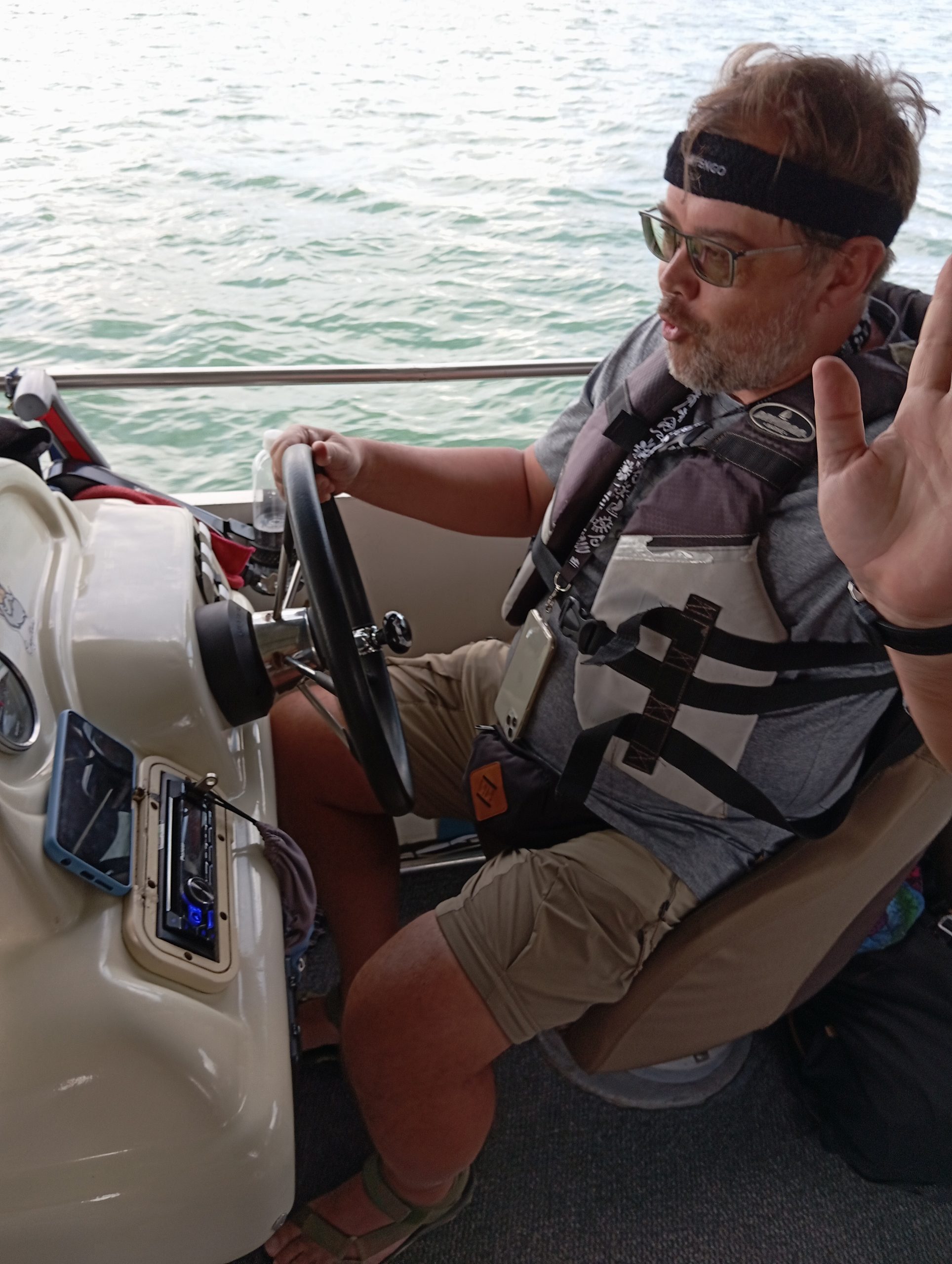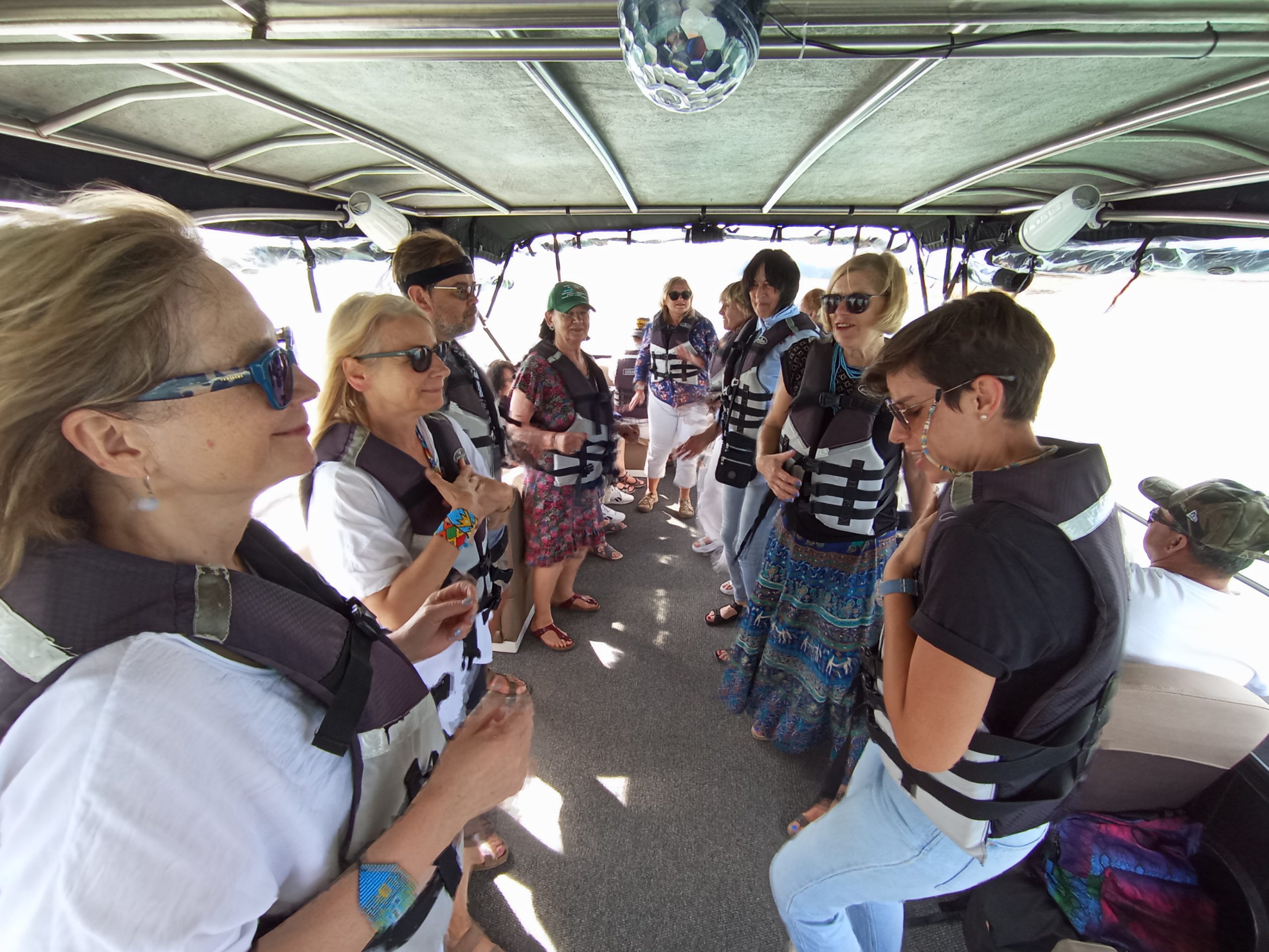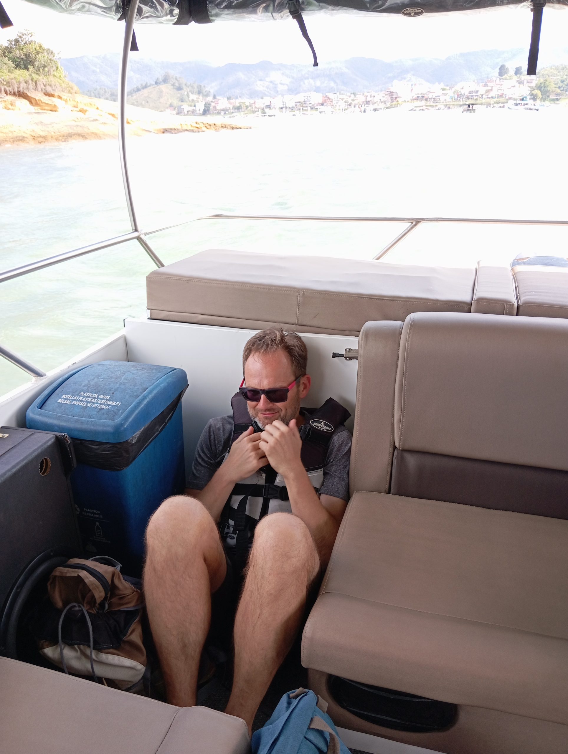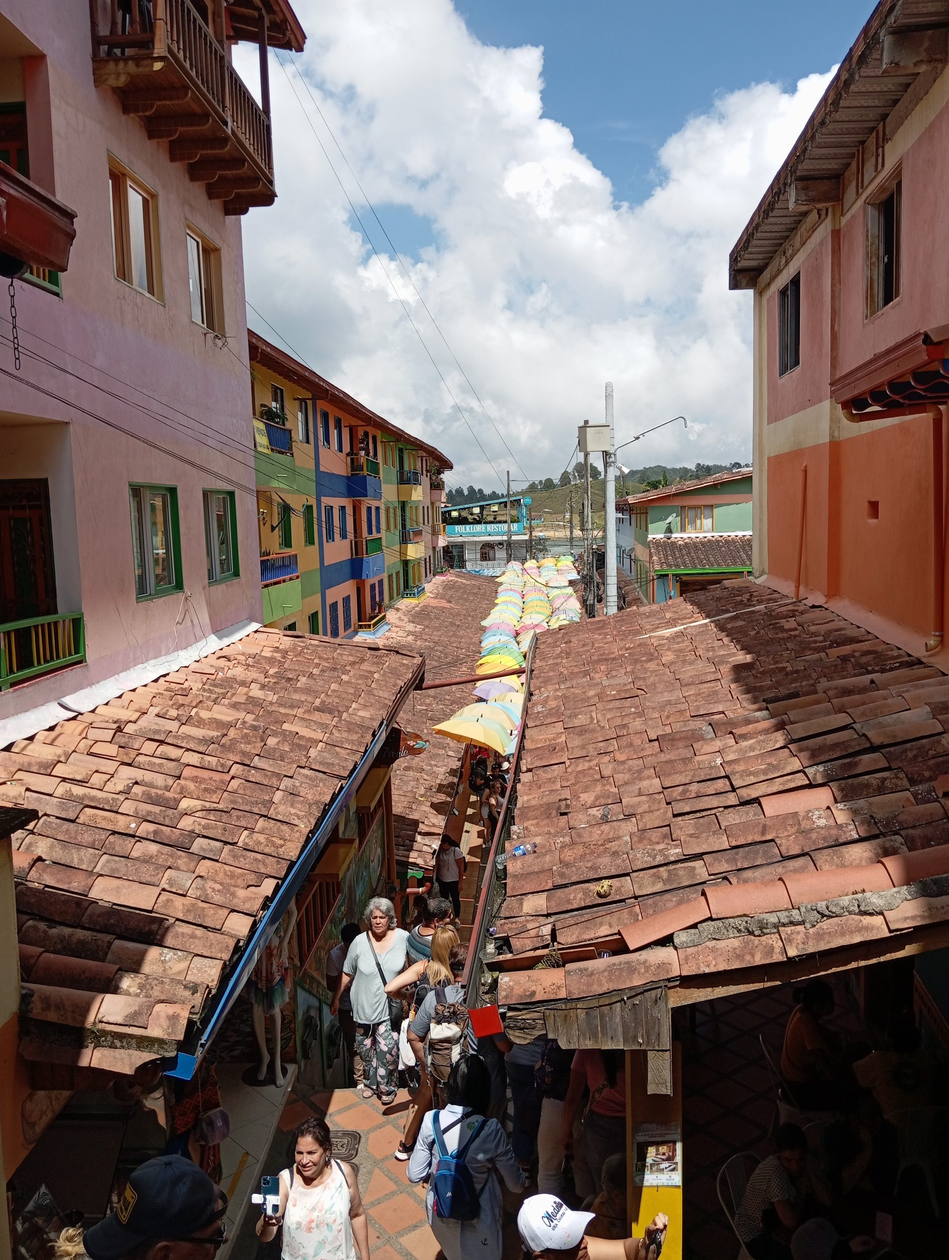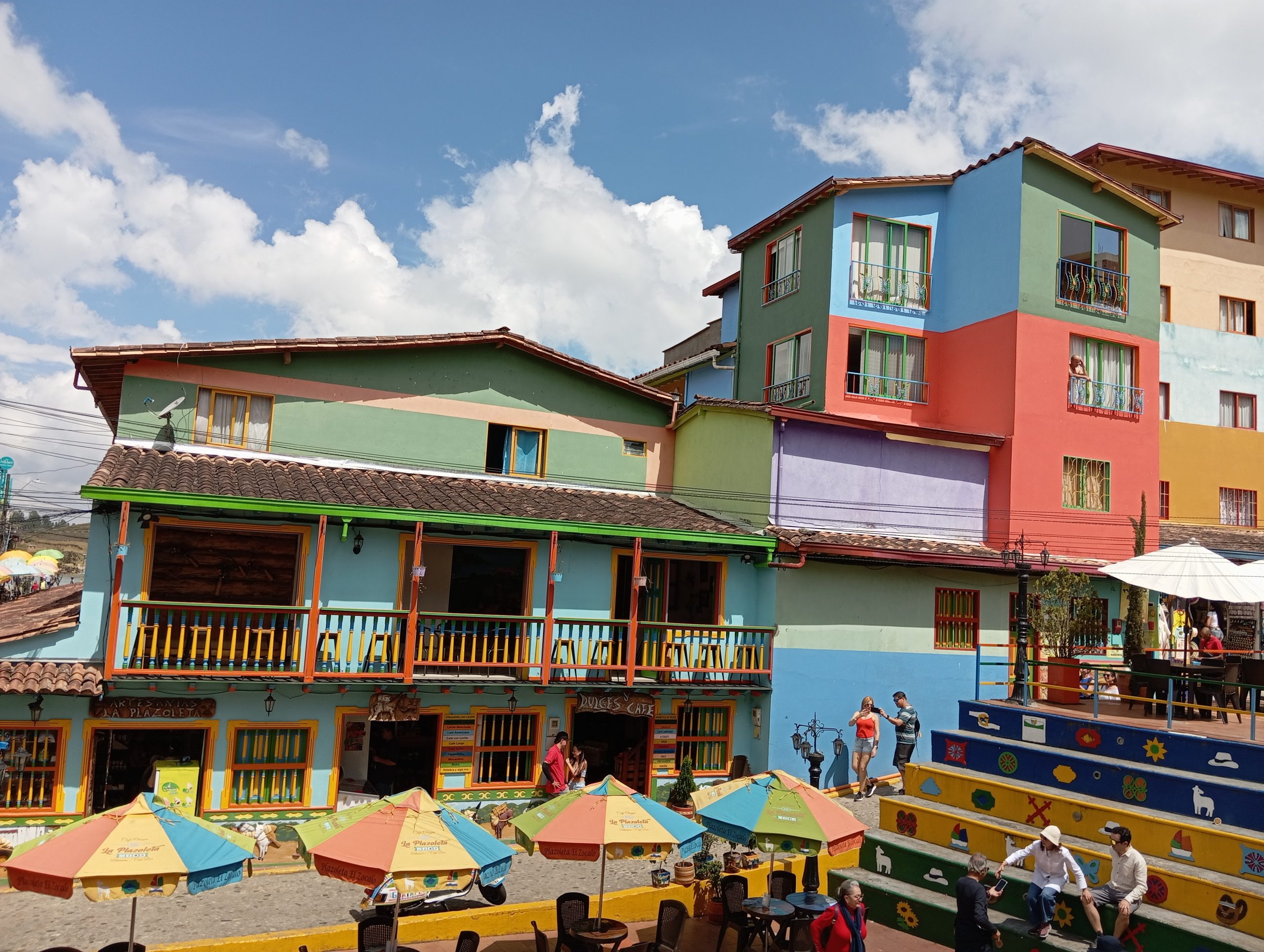 Po zejściu na dół podjechaliśmy do Guatape. Pochodziliśmy po barwnych uliczkach, przyglądając się zdobieniem na fasadach domów. Lunch na tarasie knajpy z widokiem na jezioro. Później przeszliśmy na brzeg jeziora i ruszyliśmy w rejs. Anna Maria włączyła na swoim telefonie kolumbijskie rytmy i zaczęliśmy zabawę. Najpierw królowała salsa, potem polskie szlagiery. Mijało nas wiele innych łodzi, ale na żadnej nie bawili się tak jak my. Przez dobrą godzinę pływaliśmy, mogąc podziwiać wielki głaz w oddali z różnych stron.