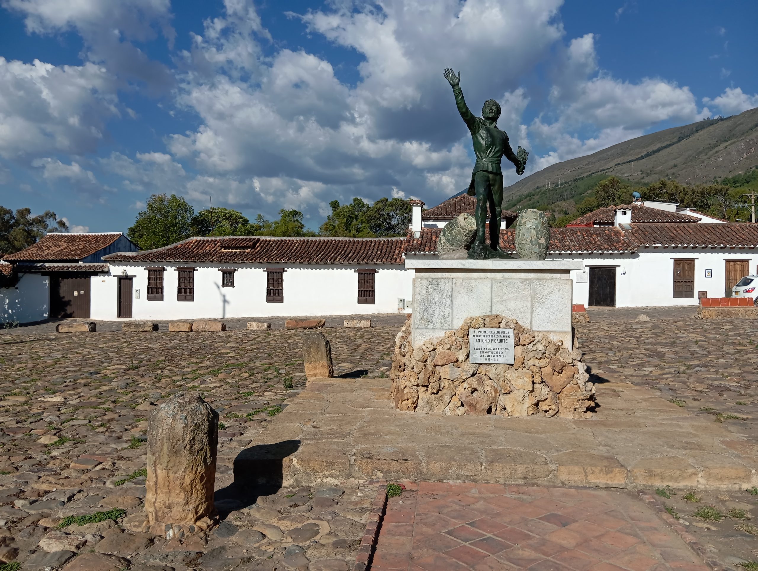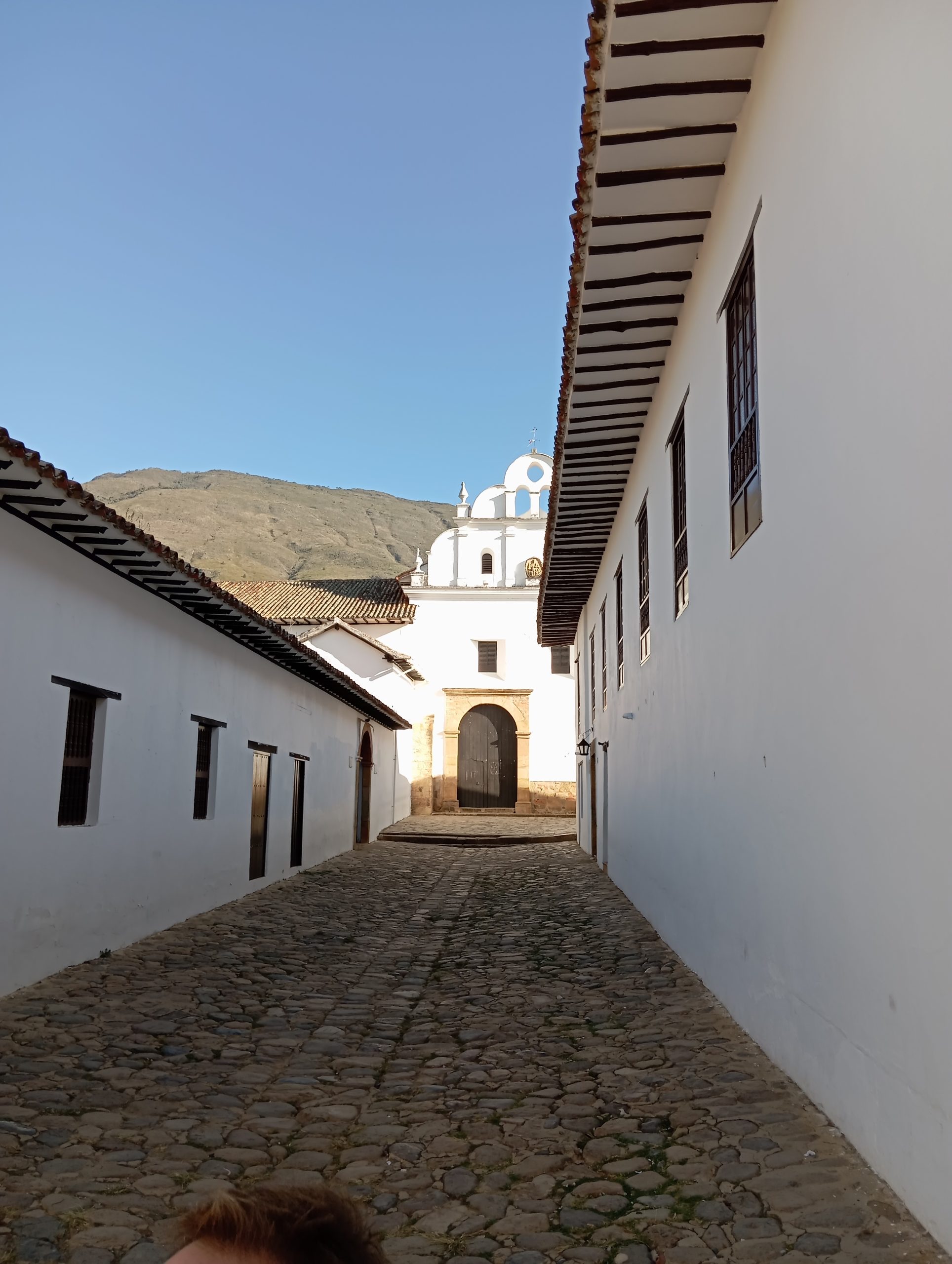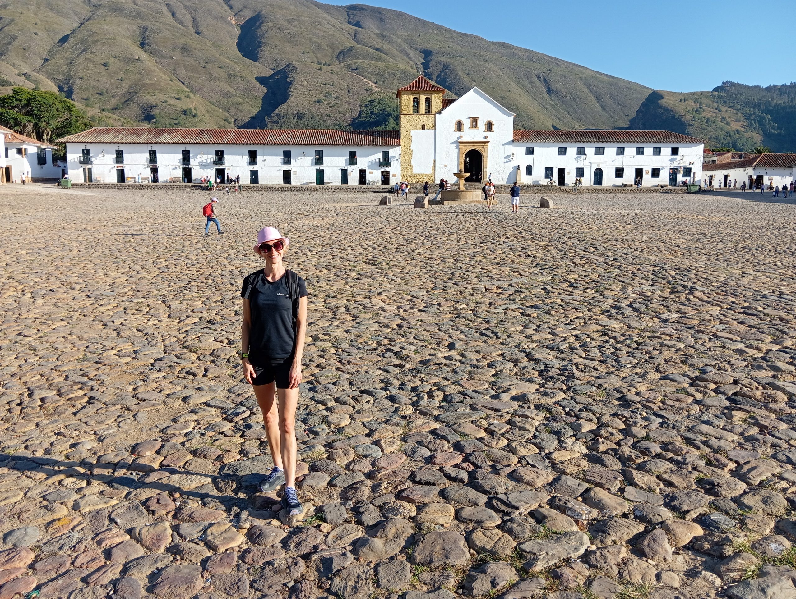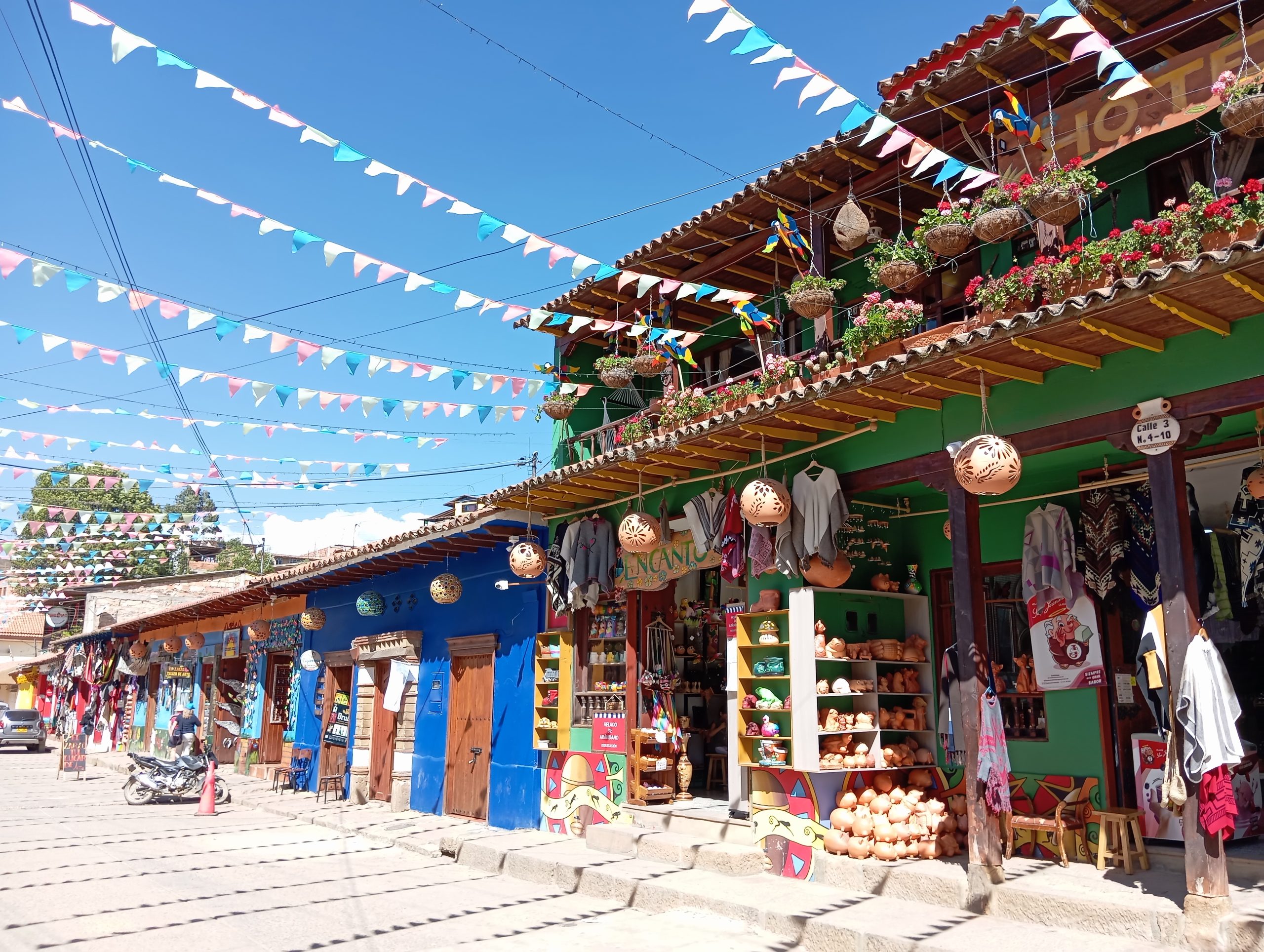 Po powrocie do naszego miasteczka Villa de Leyva poszliśmy jeszcze pochodzić po nim. Wąskie, brukowane uliczki, białe ciągi domków z charakterystycznymi starymi dachówkami. Małe sklepiki i restauracje. Sporo turystów, głównie z Kolumbii. Duży plac z kościołem. Tutaj kręcili kolumbijską wersję Zorro. Scenografię mieli w zasadzie gotową. Piękne miejsce. Zajrzeliśmy do środka klasztoru Sióstr Karmelitanek Bosych. Normalnie żyją w ciszy, bez kontaktu fizycznego z otoczeniem, bez rozmów. Ale jest tu też miejsce, gdzie można nabyć dewocjonalia lub za drobną lub większą opłatą zamówić u nich modlitwę w intencji. Wszystko odbywa się bez kontaktu. Jest taka ruchoma szafka, niczym drzwi obrotowe. My wkładamy pieniądze, a w zamian dostajemy zakupiony towar. I tylko przy tych czynnościach zakonnice mogą rozmawiać. Arek wdał się w konwersację, a ta gadała jak katarynka, chyba z 15 minut 😉