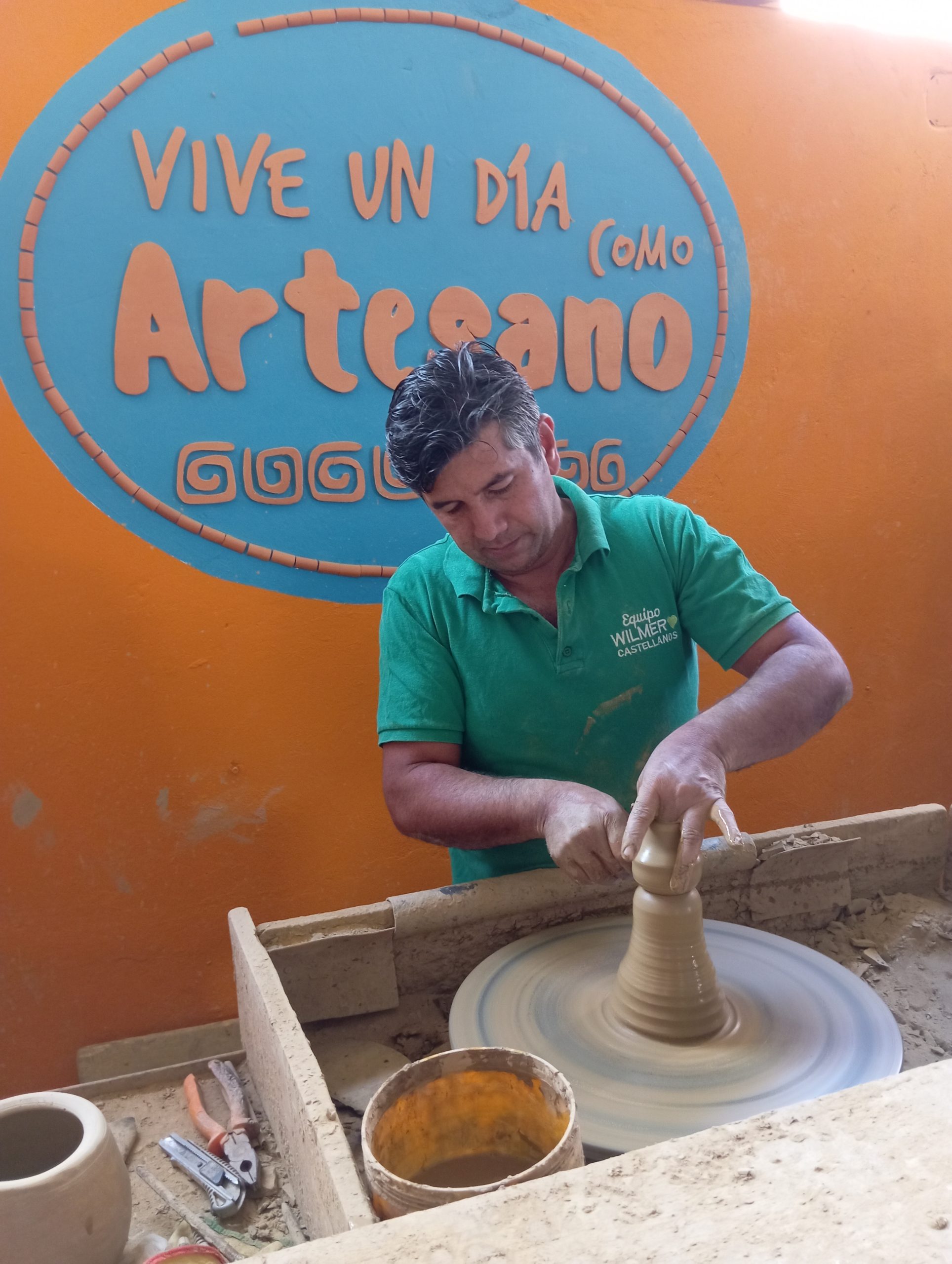 Dalej pojechaliśmy do niesamowicie kolorowego miasteczka Raquira. Nigdzie wcześniej nie widziałam takiego szaleństwa barw! Miasto to słynie z produkcji glinianych wyrobów. Zajrzeliśmy do jednej z takich rodzinnych firm, by zobaczyć jak przebiega cały proces. Była też okazja, by stanąć za stołem garncarskim i spróbować samemu coś ulepić. Pani dała mi fartuch i spróbowałam i to wcale nie jest tak łatwe jakby się mogło wydawać. Wymaga dużego wyczucia i cierpliwości.