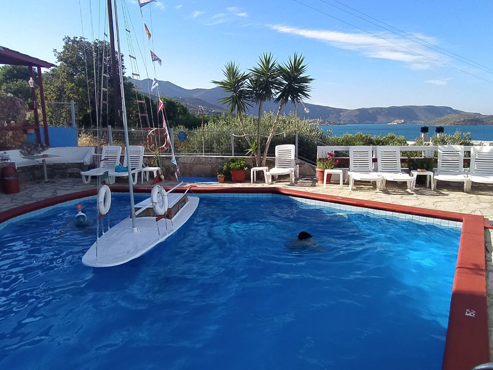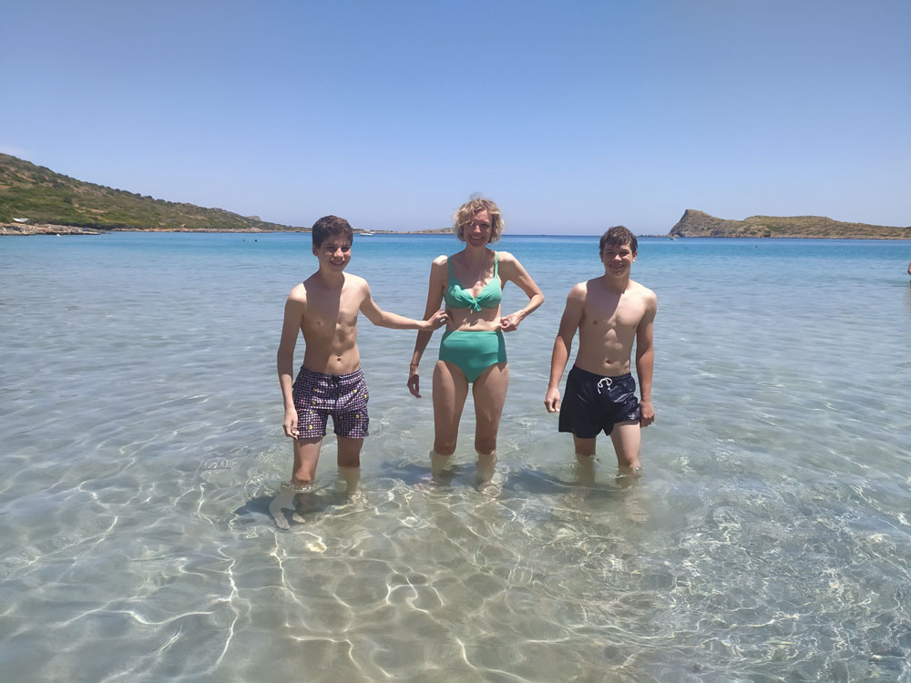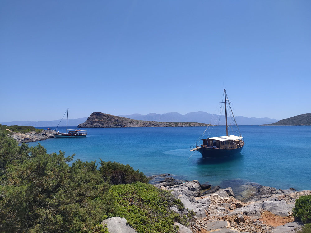 Nasz gospodarz podpowiedział nam, że niedaleko naszego lokum znajduje się ładna zatoczka i plaża. Wystarczy przejechać autem na drugą stronę grobli i przeciąć półwysep. Uprzedził jedynie, że warto tam być od rana, bo potem przypływają łodzie z turystami i robi się tłoczno.