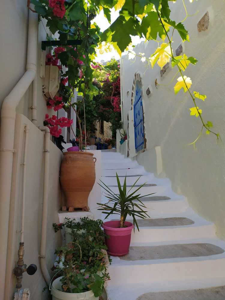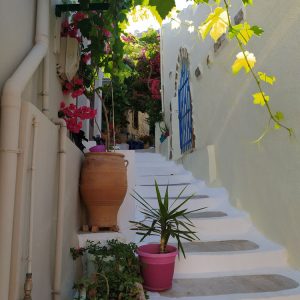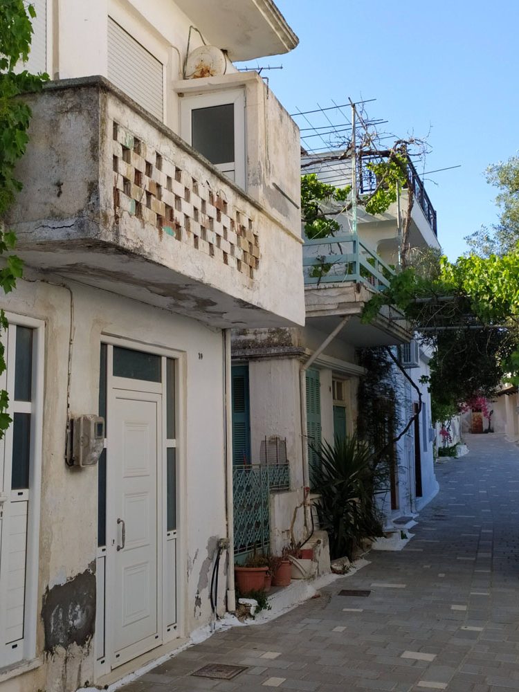 Poszliśmy w wyższe partie wioski zobaczyć oryginalne, stare domy jej mieszkańców. Część była ładnie odnowiona, z kolorowymi drzwiami i okiennicami, kwiatami. Inne w dużo gorszym stanie, niektóre rozpadające się i opuszczone. Wchodzi się do nich bezpośrednio z wąskich chodników. W tej części wioski nie ma aut, chodniki są strome, często ze schodami.