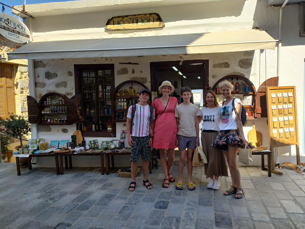 Po kąpielach w morzu pojechaliśmy trochę w głąb lądu, do małej wioski Kritsa. Przeszliśmy uliczkami pełnymi sklepików z lokalnymi wyrobami (oliwy, przetwory, zioła, lniane, haftowane serwety). W jednym z takich miejsc pracowała Polka, poopowiadała nam trochę o swoim kilkunasto letnim już życiu na Krecie.