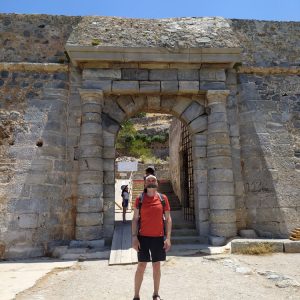 Popłynęliśmy na wyspę z Plaki. Kapitan okrążył całą wyspę, dzięki temu mogliśmy przyjrzeć się jej potężnym murom. Później zwiedziliśmy ją od środka. Budynki były całkiem dobrze zachowane. Wewnątrz jako ekspozycja wystawione były m.in kamienne tablice, na których wyryte były gry logiczne – kółko i krzyżyk, warcaby, labirynty. W ten sposób uwięzieni na wyspie zabijali czas i ćwiczyli umysł, zapewne by nie zwariować…