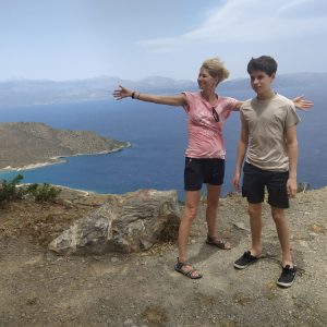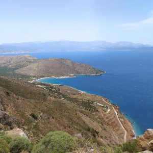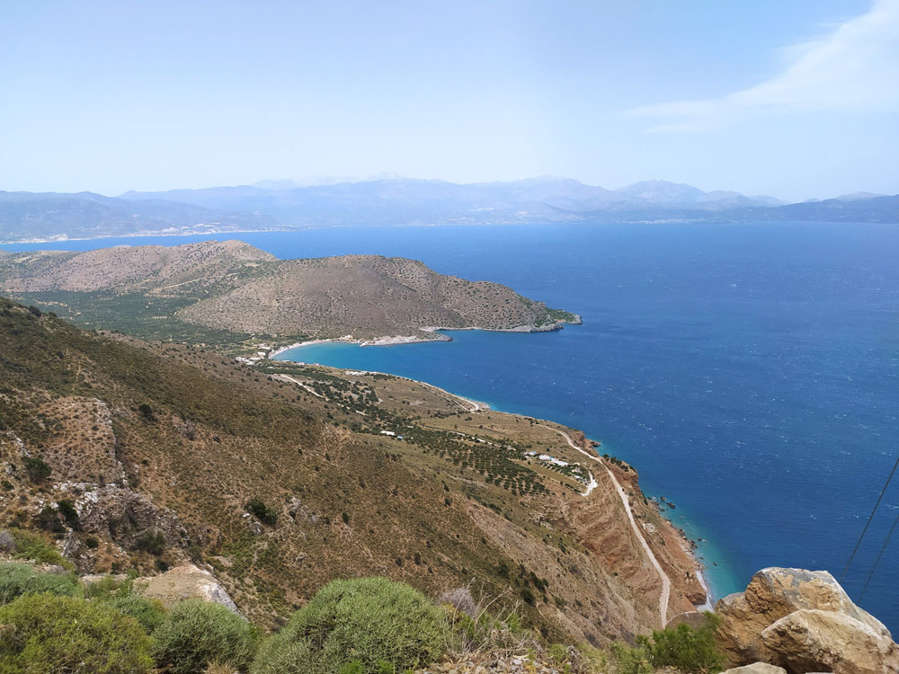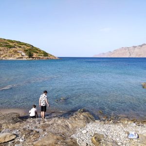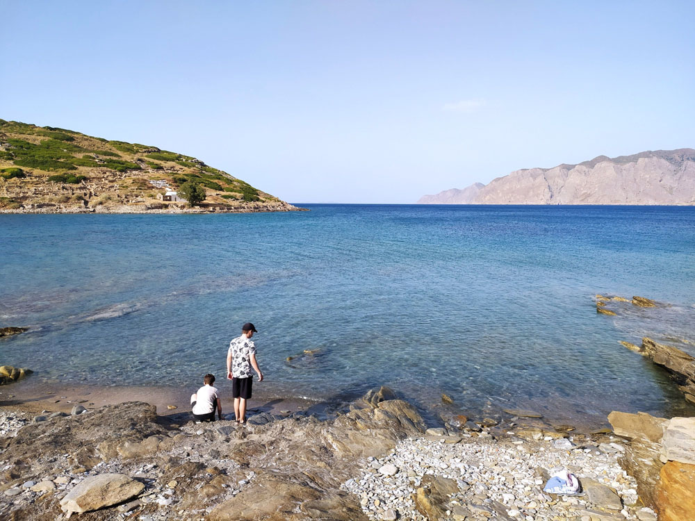 Droga powrotna poszła nam całkiem sprawnie, choć upał był już konkretny. Chyba myśl o jedzeniu pchała nas pod górę. Pojechaliśmy do uroczej wioski nadmorskiej, Mochlos. Około 150 m od brzegu znajduje się mała wysepka, która kiedyś prawdopodobnie była połączona z lądem, tworząc półwysep. Prowadzone na niej prace archeologiczne ukazały ruiny pochodzące z czasów minojskich, m.in grobowce, mniejsze mogiły i warsztaty rzemieślnicze.
