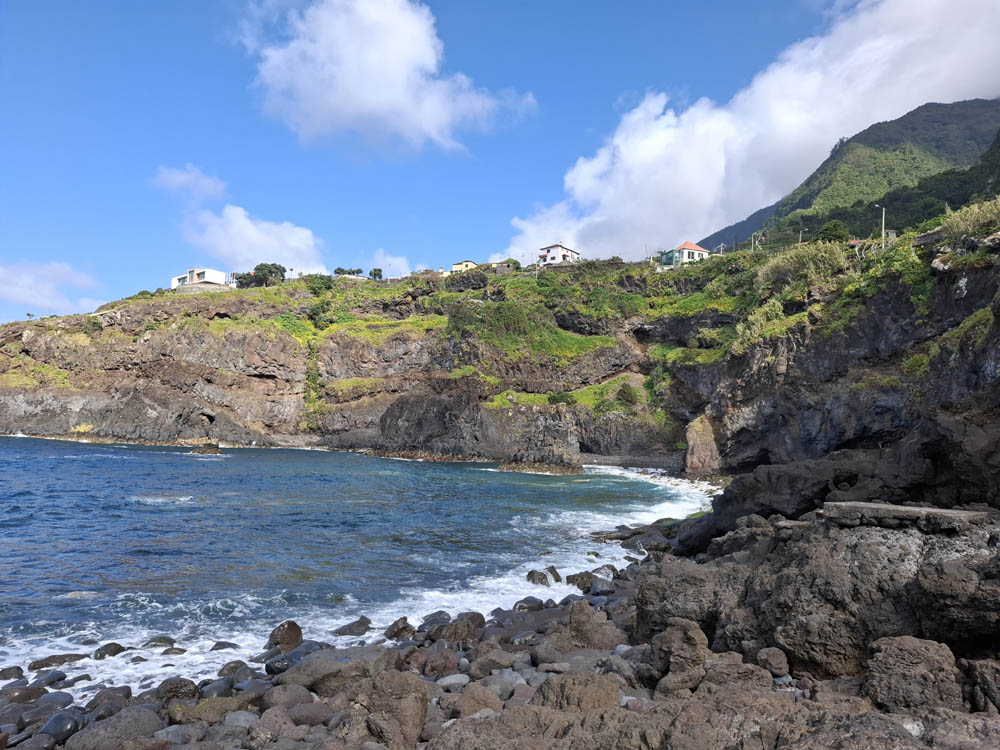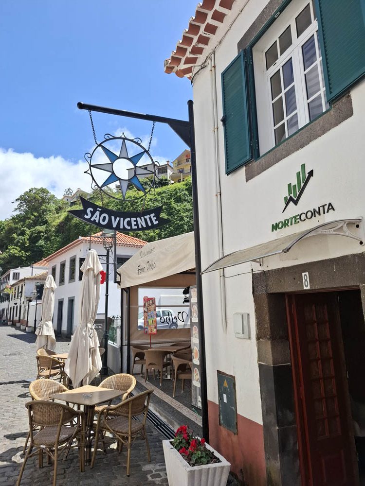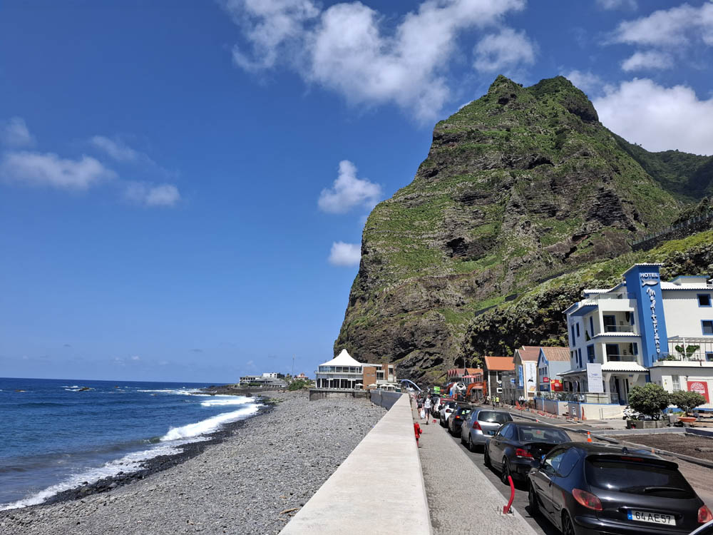 Zjechaliśmy do Sao Vicente. Mała miejscowość położona przy morzu, otoczona ścianami wąwozu. Kilka sklepików, biały kościółek, niemal pusto.