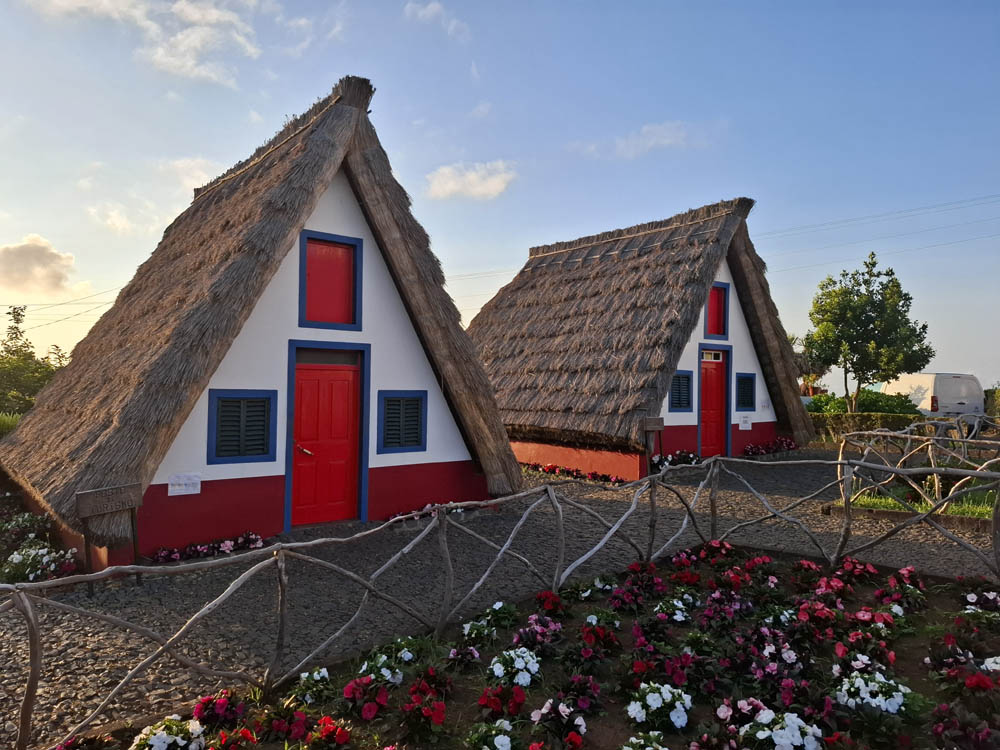 Zachód słońca już w naszej Santanie. Szybki stop przy tradycyjnych maderskich domkach w kształcie litery A.