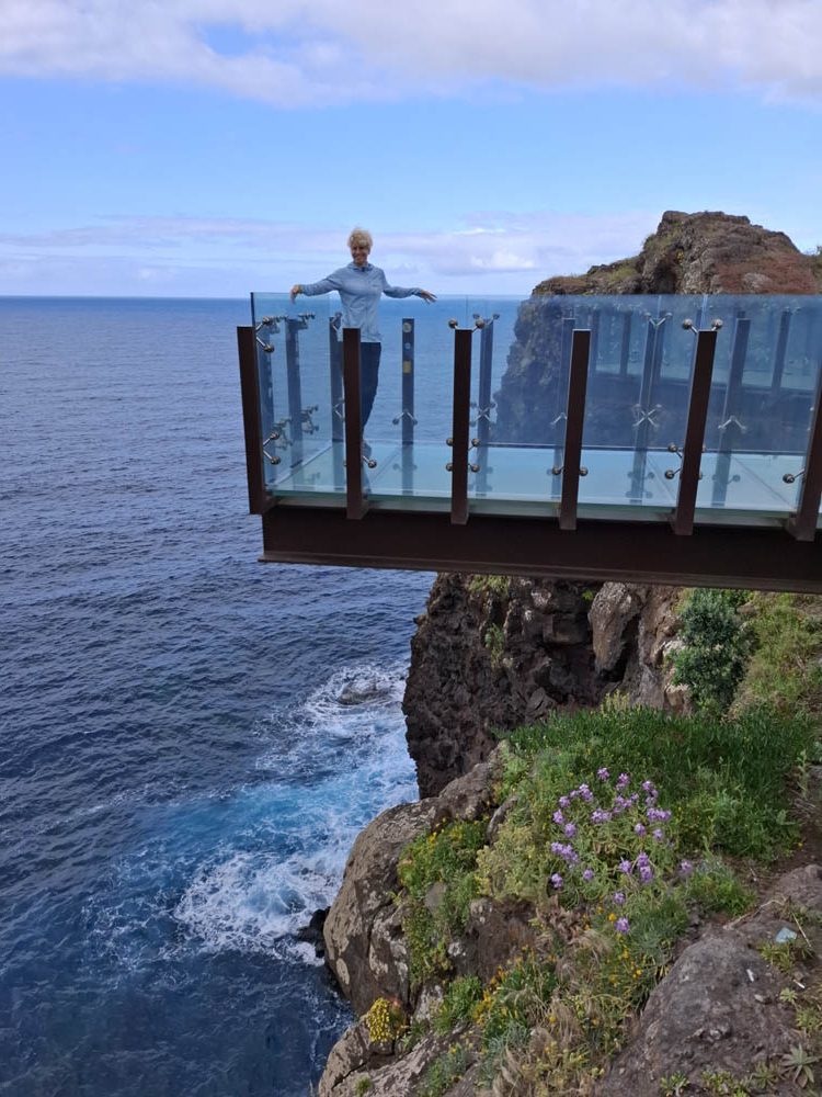 Dalej zahaczyliśmy o punkt widokowy Miradouro do Guindaste, na którym są przeszklone platformy wysunięte w morze. Widoki na spore klify.