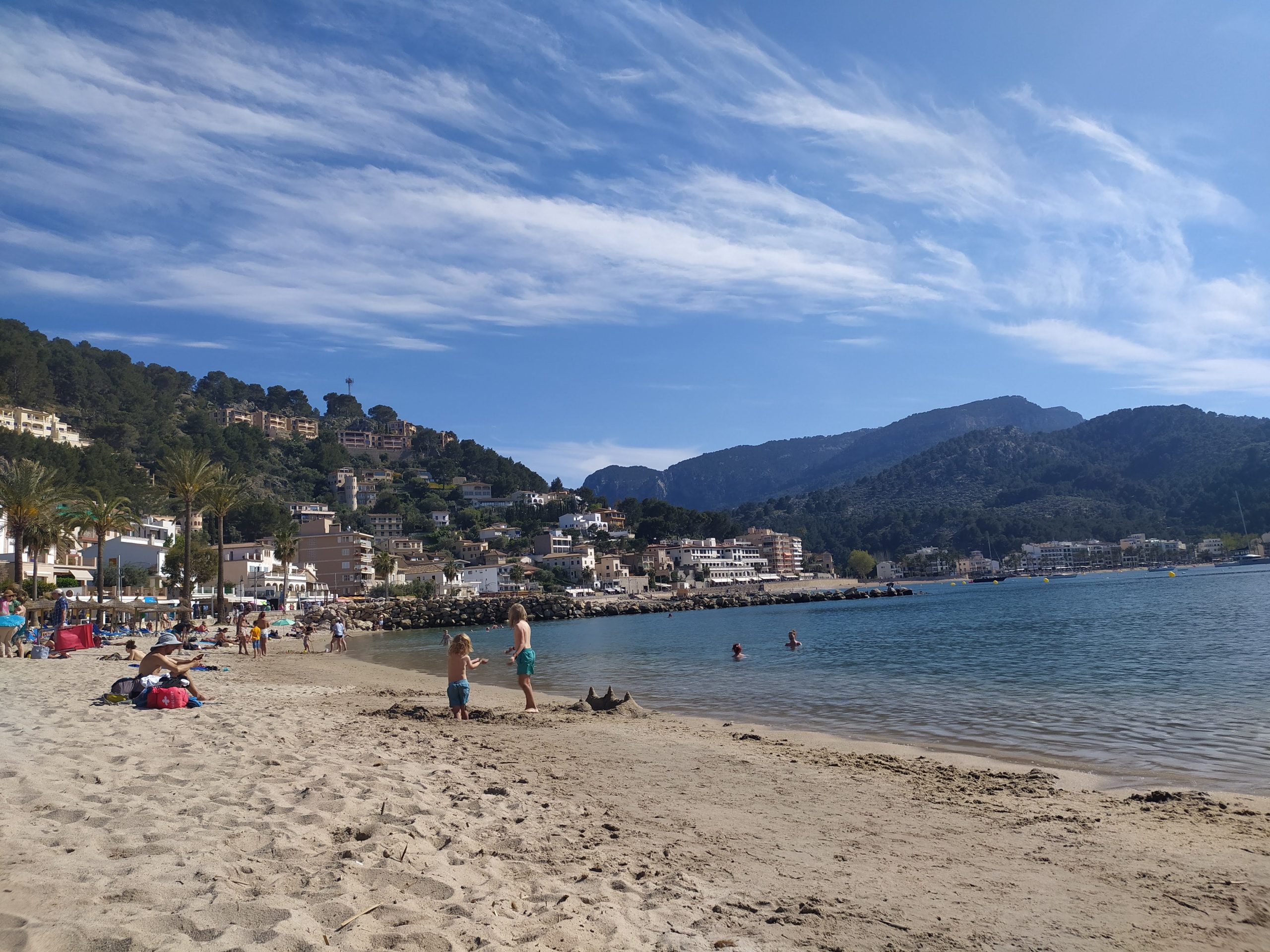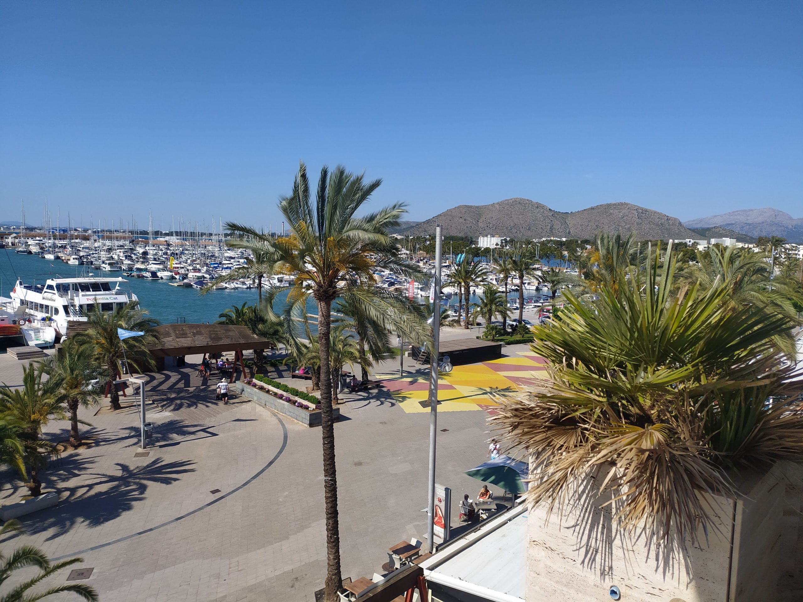 Następnie przez góry Tramuntana pojechaliśmy na wybrzeże do miasteczka Port de Soller. Zaciszna zatoczka z widokiem na zbocza gór, restauracje wzdłuż promenady, całkiem sporo ludzi. I zabytkowy drewniany tramwaj, który dowozi tu turystów z Palmy. Było przyjemnie i ciepło. Odpoczęliśmy na plaży i pod wieczór ruszyliśmy na północ wyspy do naszej bazy na kolejne trzy dni, Port de Alcudia. Zajechaliśmy już po zmroku. Nasz hotel znajdował się na promenadzie, z widokiem na marinę. Mimo braku prywatnego parkingu, nie było problemu z autem. Przy bocznych uliczkach jest kilka placów z bezpłatnymi parkingami. Bardzo dobrze jest to zorganizowane.