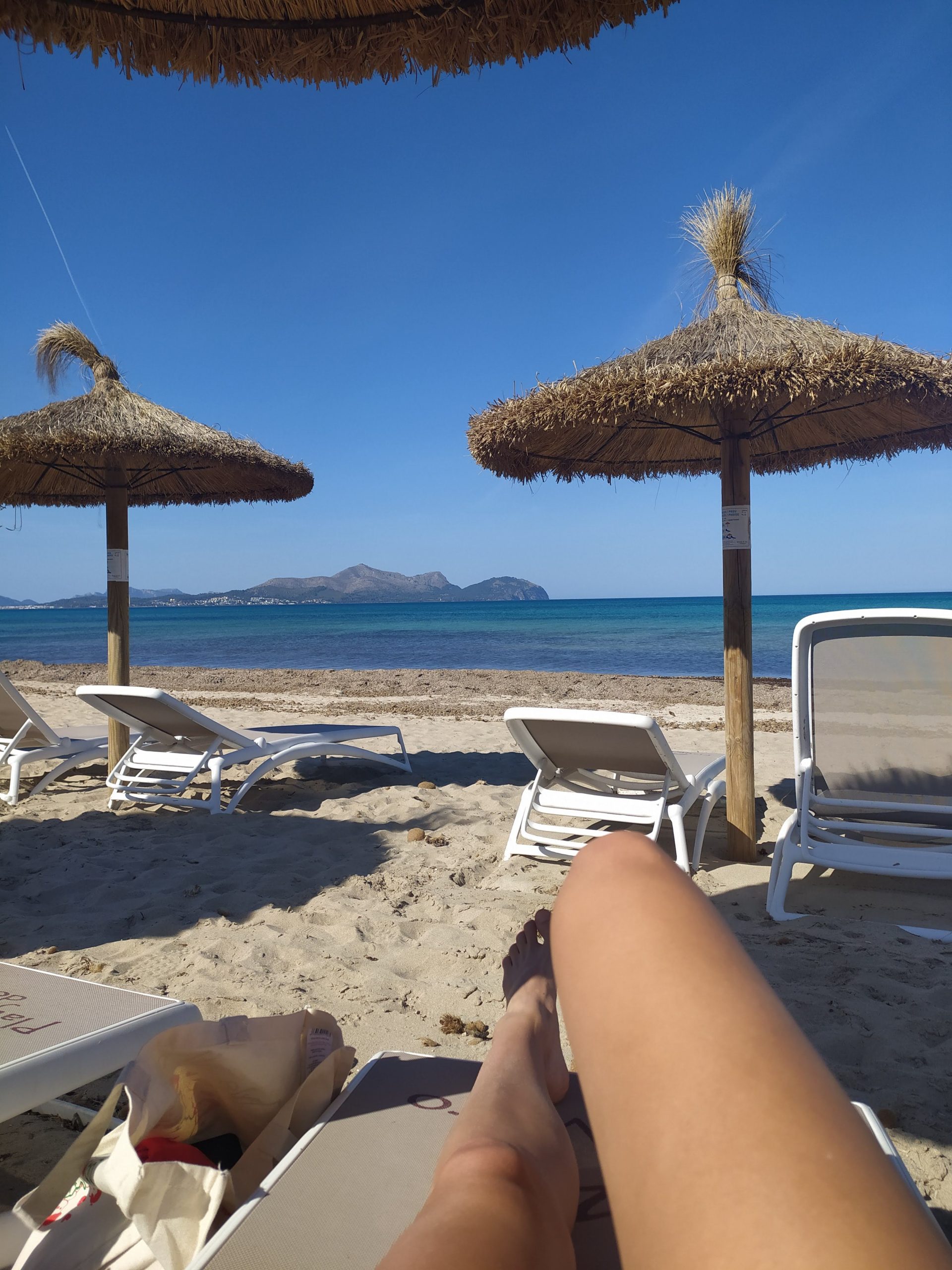 Po kolejnej godzinie jazdy dotarliśmy ostatecznie do miasteczka Can Picafort, które znajduje się kilka km od naszej miejscowości. Zatrzymaliśmy się przy samej plaży, położyliśmy na leżakach pod palemką, zamówiliśmy po piwie i zaczęliśmy się śmiać sami z siebie. Emocje opadły, słońce przyjemnie grzało, a w tle leciał jazz. Uratowaliśmy choć część z tego dnia. No, a poza tym mamy przejechaną Majorkę wzdłuż i wszerz 😉