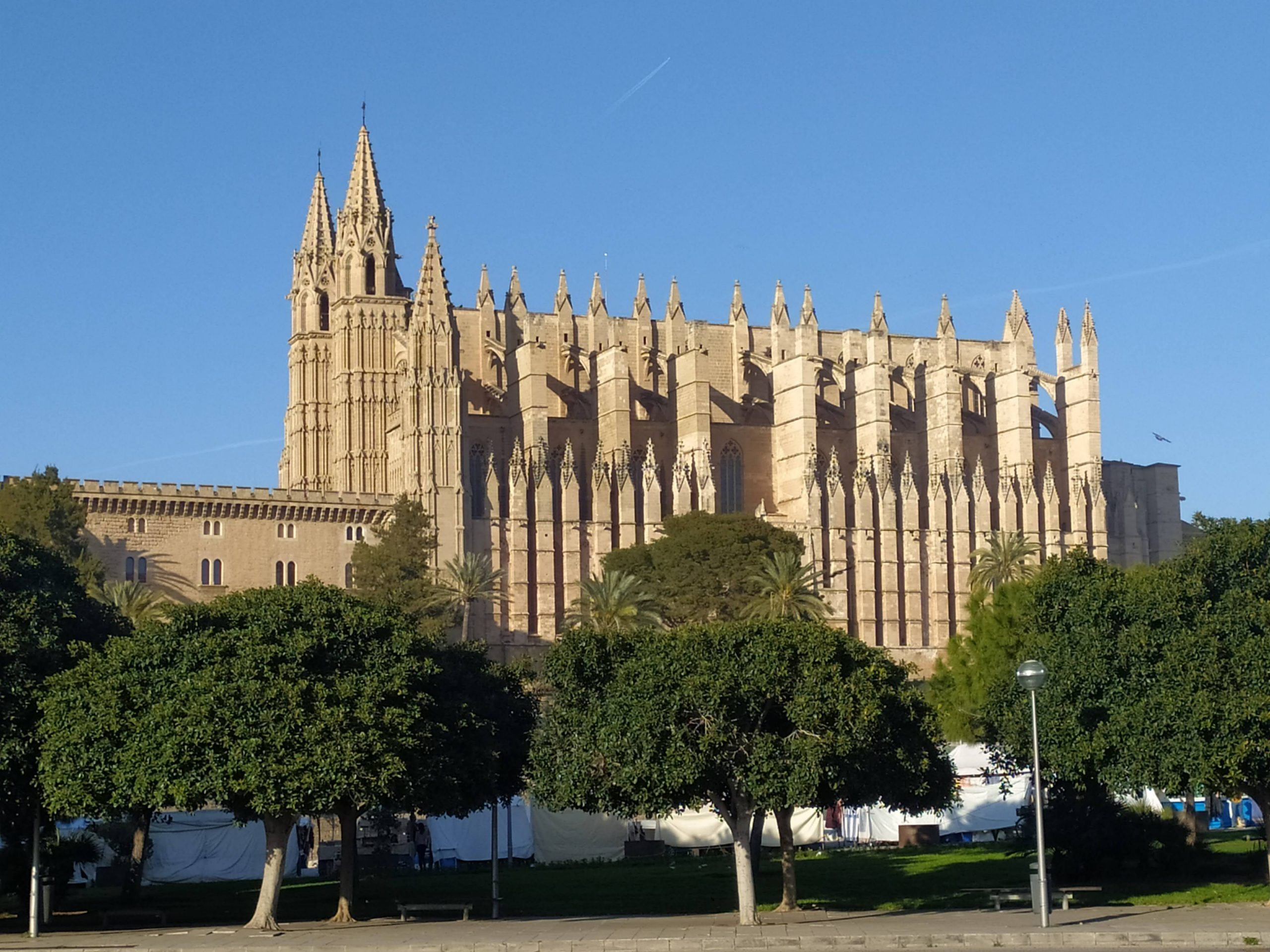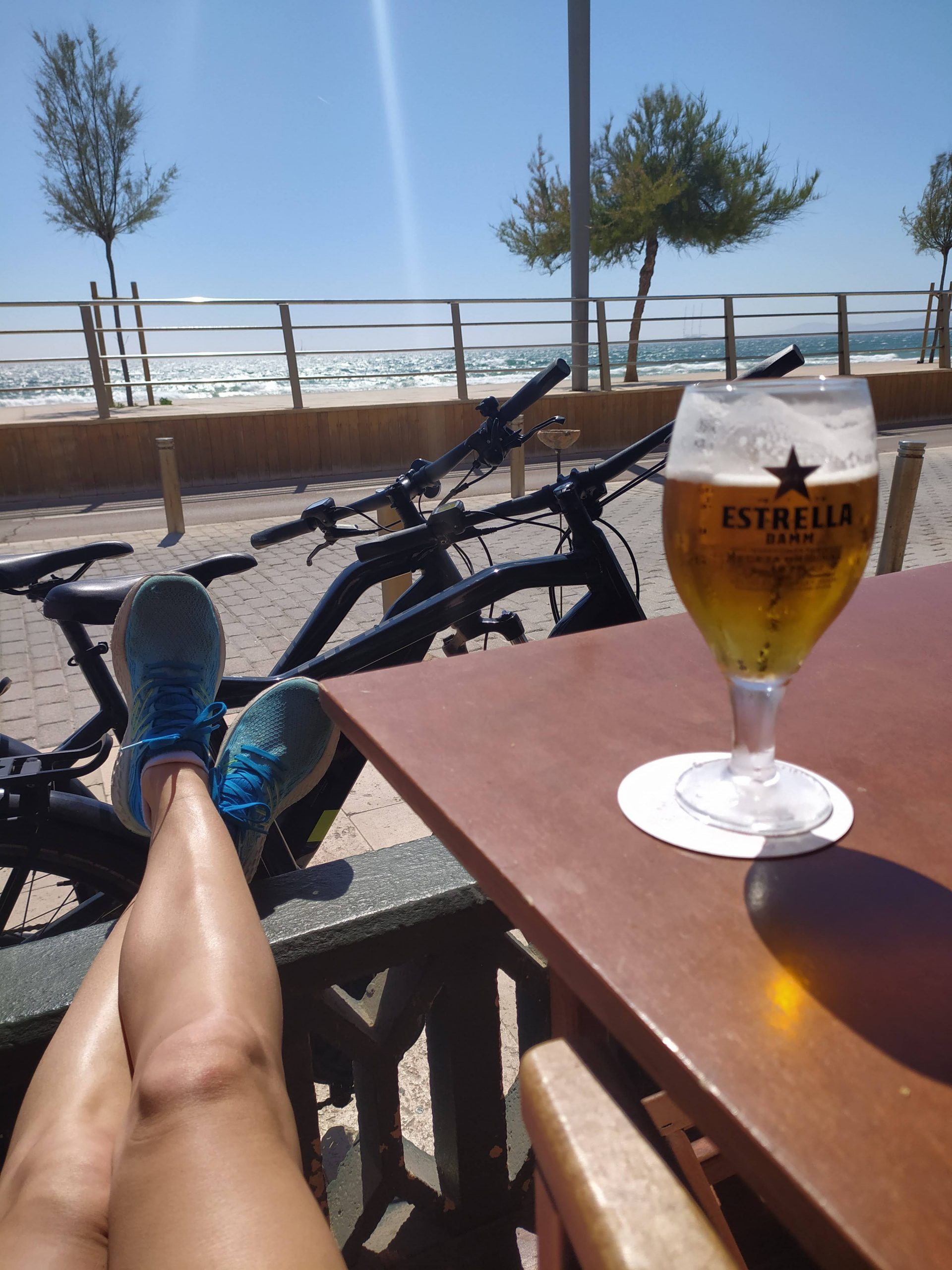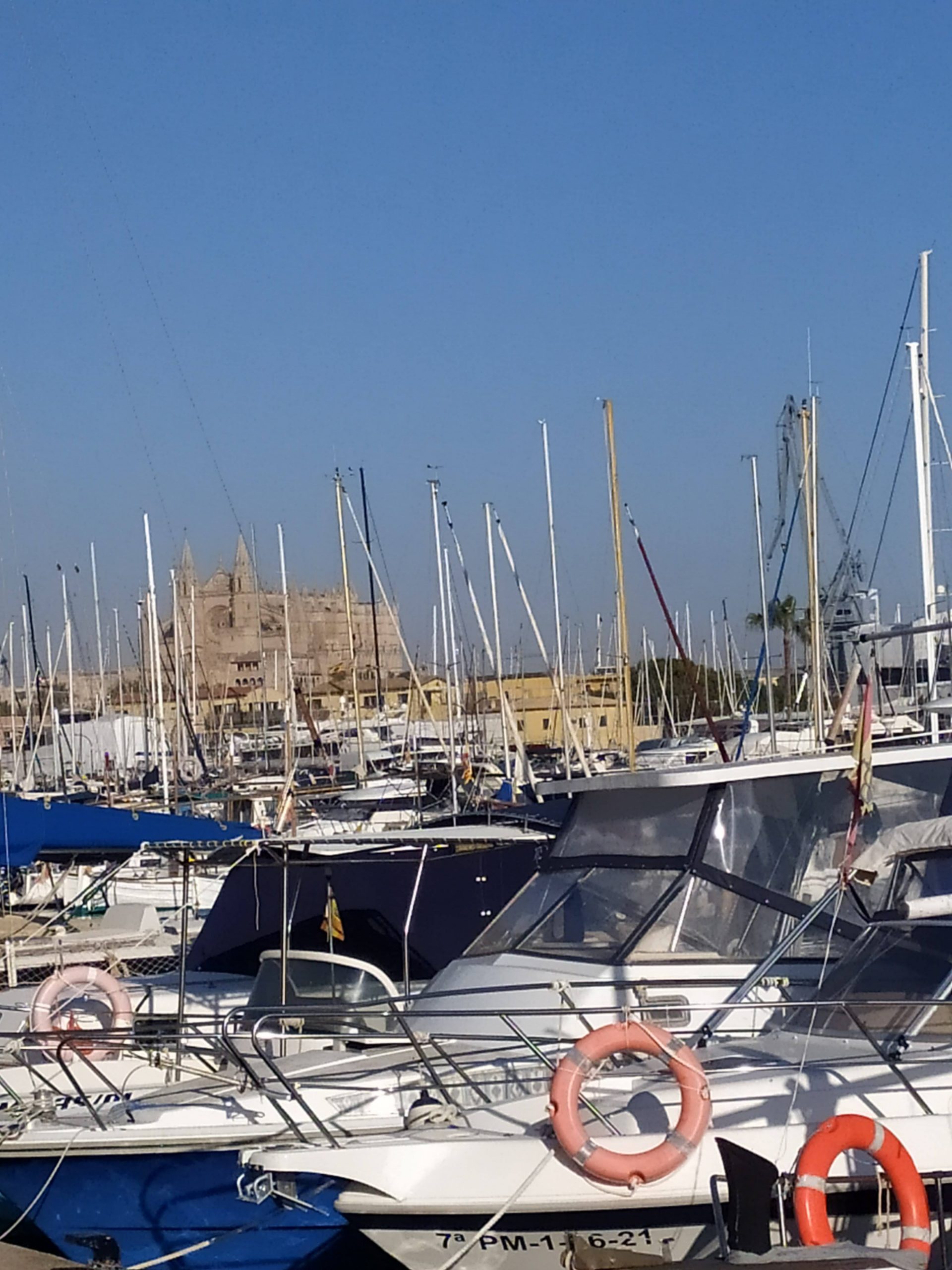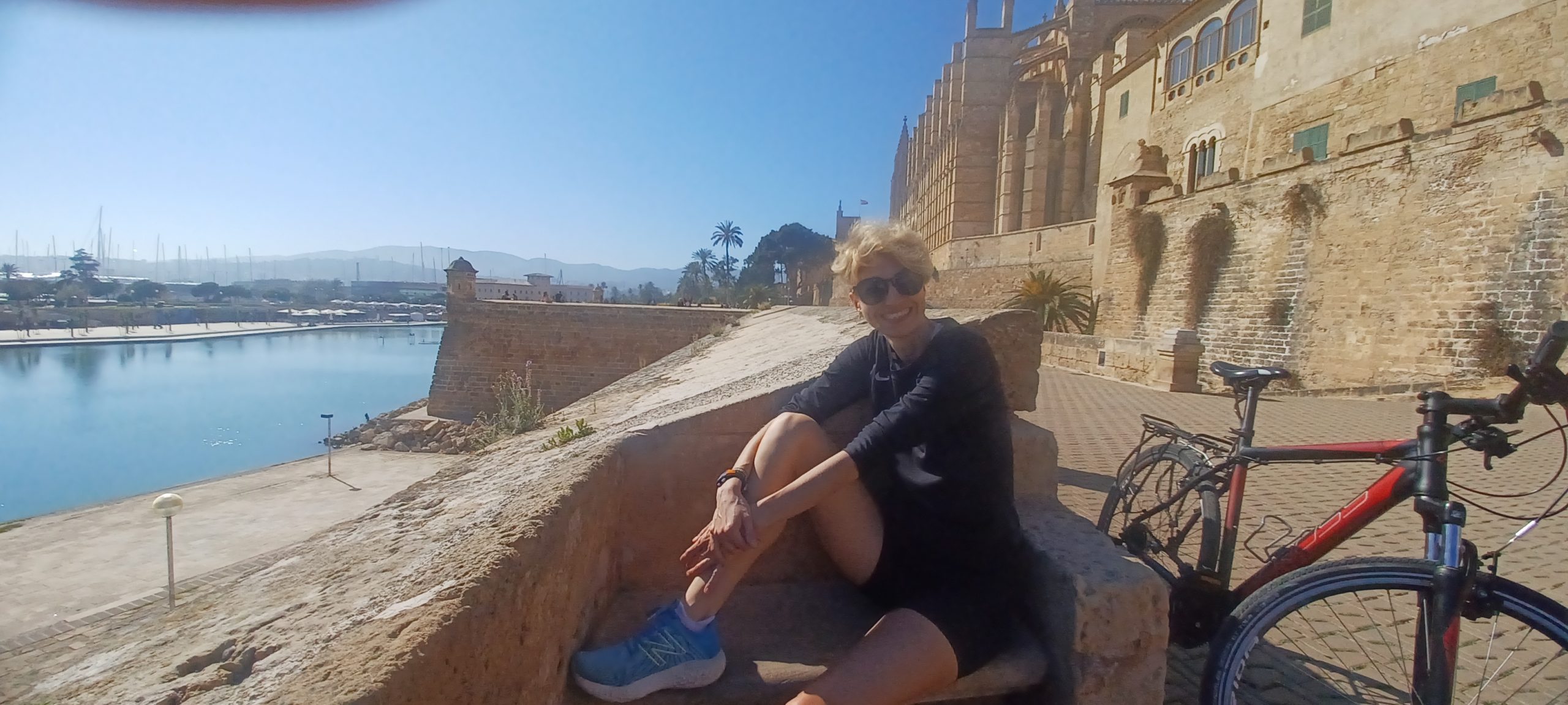 Do centrum Palmy mieliśmy około 10km. Po drodze przerwa na lunch i piwko, potem na zdjęcia i filmiki. W samej Palmie też jest sporo ścieżek rowerowych. Czasem jeździliśmy po chodnikach, choć nie mam pewności czy jest to dozwolone. W okolicy słynnej katedry i na licznych placach było już więcej turystów. Miasto podobne klimatem do Walencji czy Malagi. Jackowi przez kwadratowe place skojarzyło się z Madrytem, nie wiem, nie byłam. Jeszcze 😉