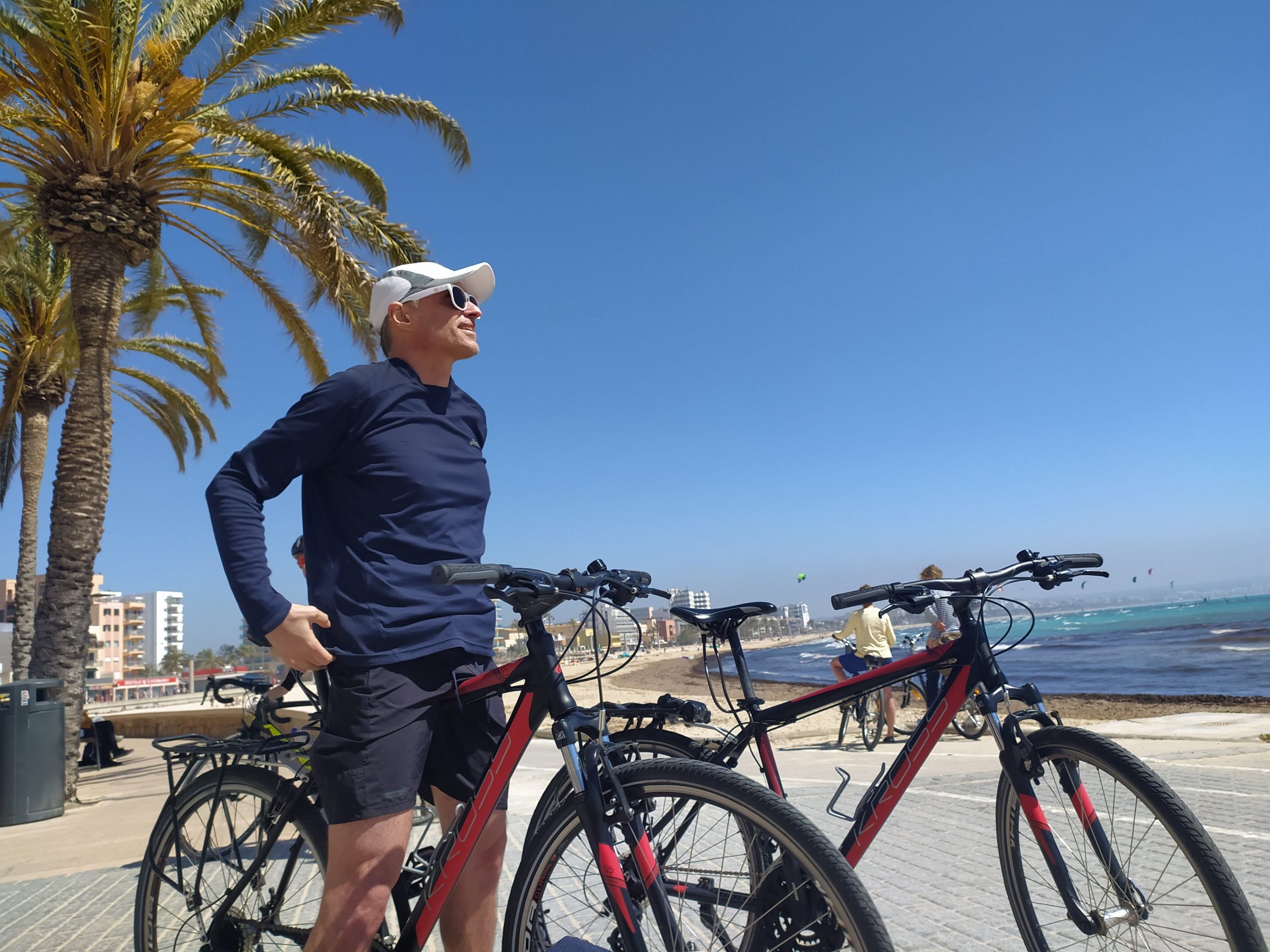 W hotelu szybko się przebraliśmy w krótkie portki i poszliśmy do obiektu naprzeciwko wynająć rowery na wycieczkę. Pracująca tam Polka zmartwiła się, że nie może dać nam zniżki za pół dnia najmu, ale kwota i tak nie była wysoka, a my chcieliśmy zwiedzić choć pobieżnie stolicę – Palma de Mallorca.