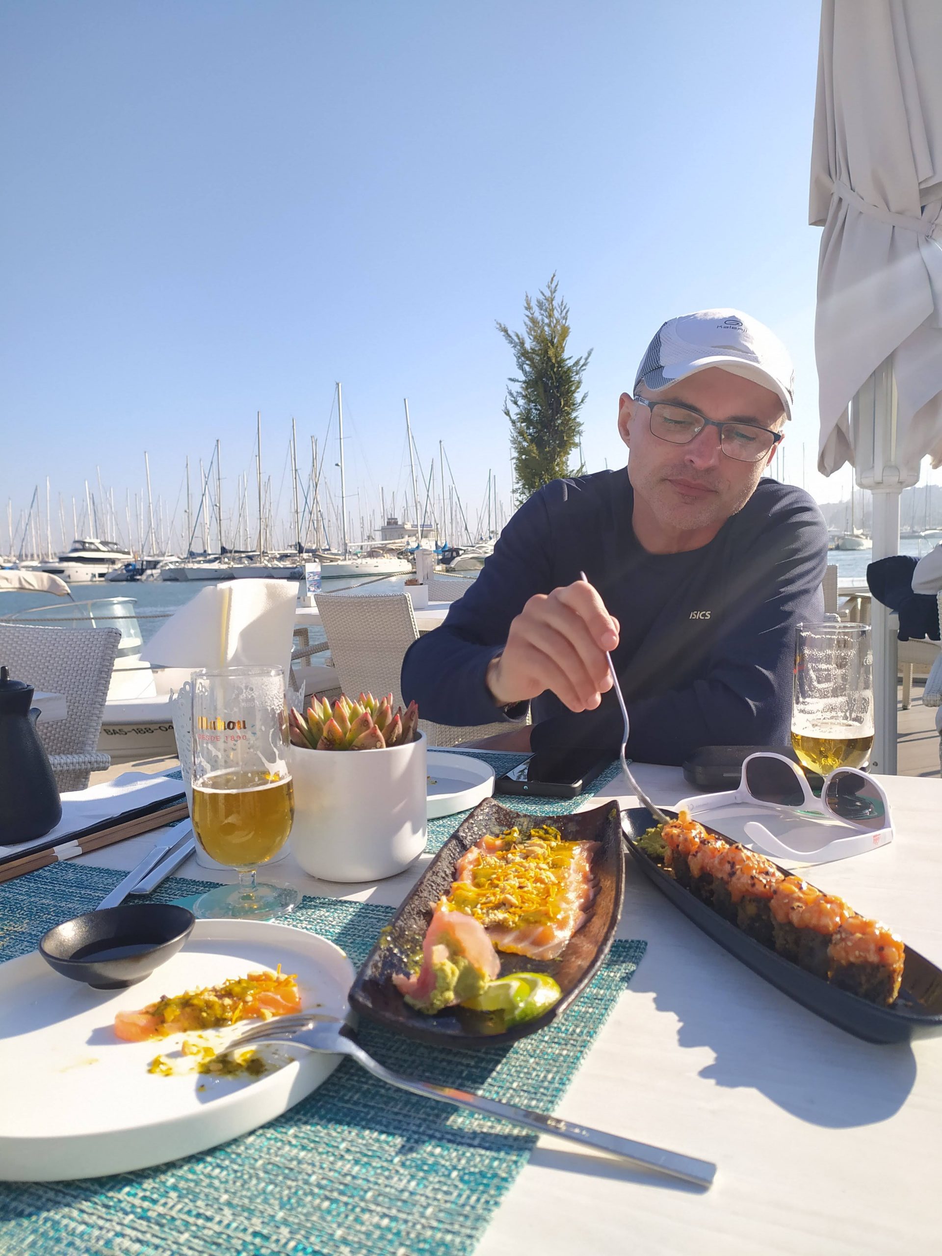 Z uśmiechem od ucha do ucha pojeździliśmy sobie po starówce, na koniec zjechaliśmy na wybrzeże, do mariny. Siedliśmy, by coś zjeść przed powrotem do nas. W przystani było zacumowanych mnóstwo żaglówek. Grupa młodzieży pod okiem trenera miała akurat trening na kajakach. Chilloutowa muzyczka w tle, słońce i klimat wakacji. Stwierdziłam, że tak niewiele trzeba, raptem 6h w innym otoczeniu, by oderwać się i zrelaksować…