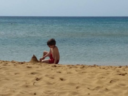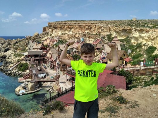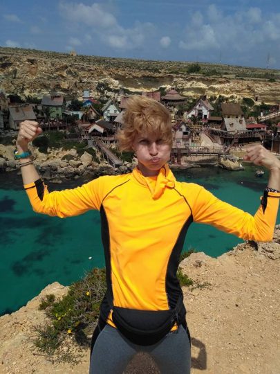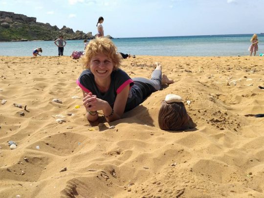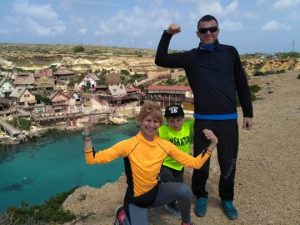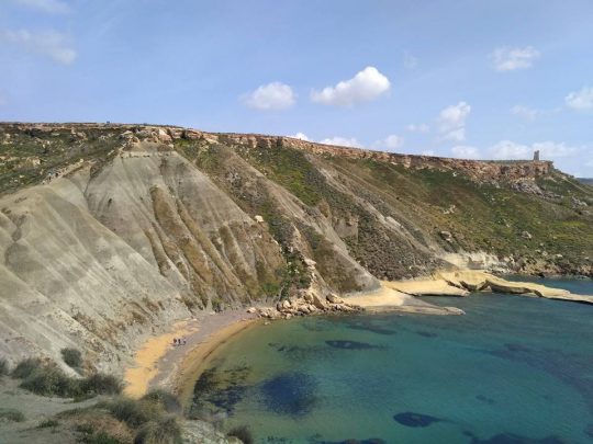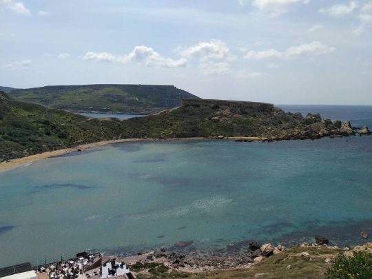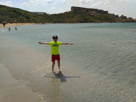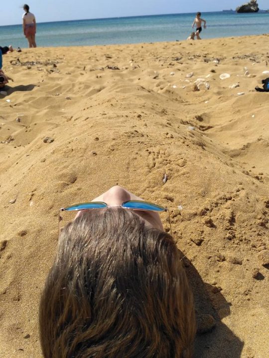 Po przypłynięciu na Maltę najpierw pojechaliśmy zobaczyć wioskę Popeya. Drewniane domki nad błękitną zatoką. Kręcono tu film o przygodach tego marynarza. Następnie trzy zatoki, oddzielone od siebie kawałkami lądu. Tak nam się tam spodobało, że siedzieliśmy na plaży ciesząc się słońcem z dobre 3h. Ja przeszłam się wzgórzami, by zobaczyć ostatnią z zatok. Wzgórza pachniały kwiatami. Janek wskoczył do wody, twierdził że była cieplejsza niż wczoraj na Comino. Ja zamoczyłam nogi, ale nie wyczułam większej różnicy temperatur.