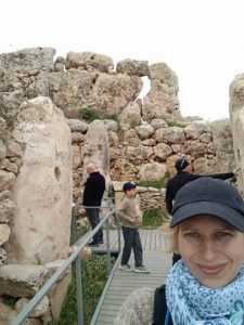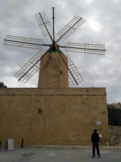 Po chwili zadumy pojechaliśmy zobaczyć starożytne ruiny świątyni Ggantija. Nie łatwo było tam trafić, ale w końcu się udało. Zwiedziliśmy muzeum z wykopanymi eksponatami, naczyniami, figurkami, biżuterią. Niesamowite, że mają one ok 4000 lat, 1000 lat więcej niż piramidy egipskie! Na zewnątrz były kamienne resztki świątyni. Niektóre z głazów miały wyryte daty i imiona. Zdziwiłam się widząc datę 1856. Myślałam, że to żart. Ale niekoniecznie, bo pierwsze wycieczki brytyjskich turystów były tu organizowane już w połowie XVII wieku. Niedaleko wykopalisk był stary młyn, w którym aktualnie urządzone jest muzeum prezentujące jak żyli kiedyś Maltańczycy.
