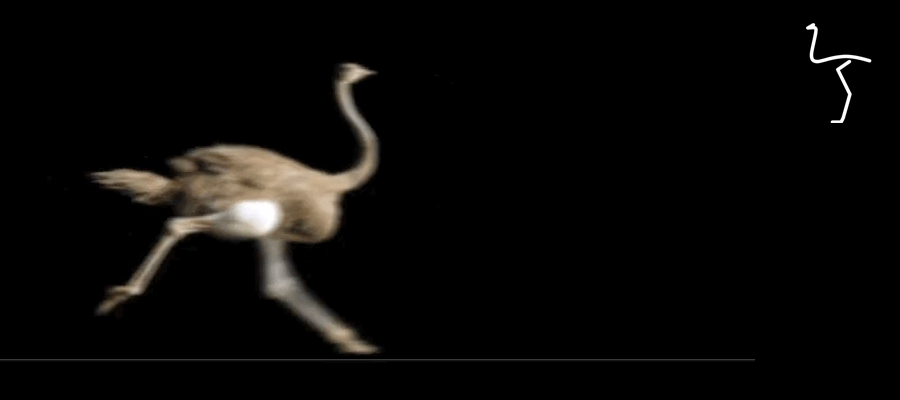 Prace nad wprawieniem w ruch avatara trwają dość mozolnie. Zajmuje to sporo czasu. Przez kilka dni szukałem w necie jakichś dobrych ujęć w naturze. Znalazłem kilka animowanych gifów i fragmentów z biegiem strusi na YouTube. Na początek wybrałem coś w truchcie. Później każda klatka animacji zostanie nałożona na wykres w excelu.