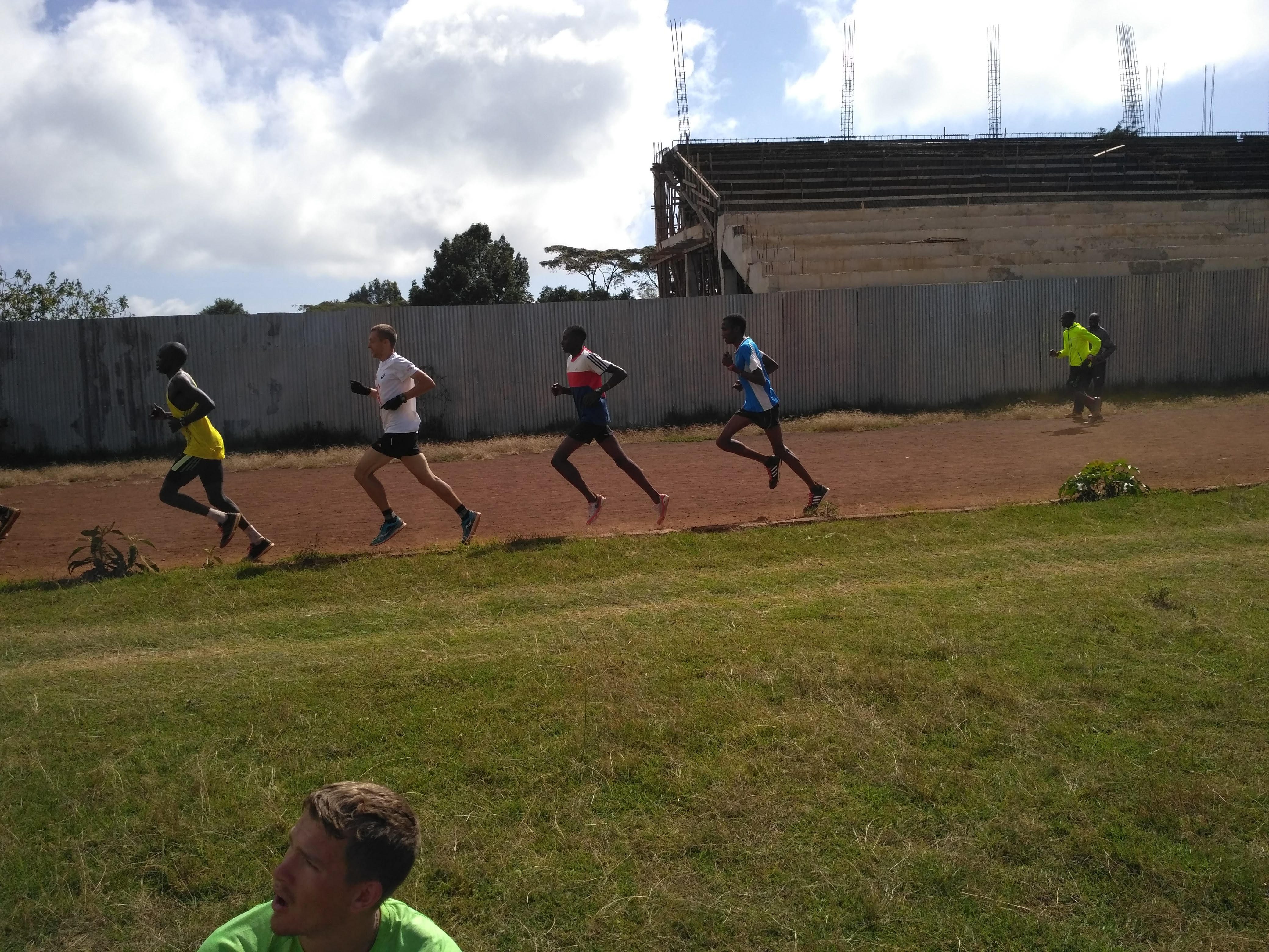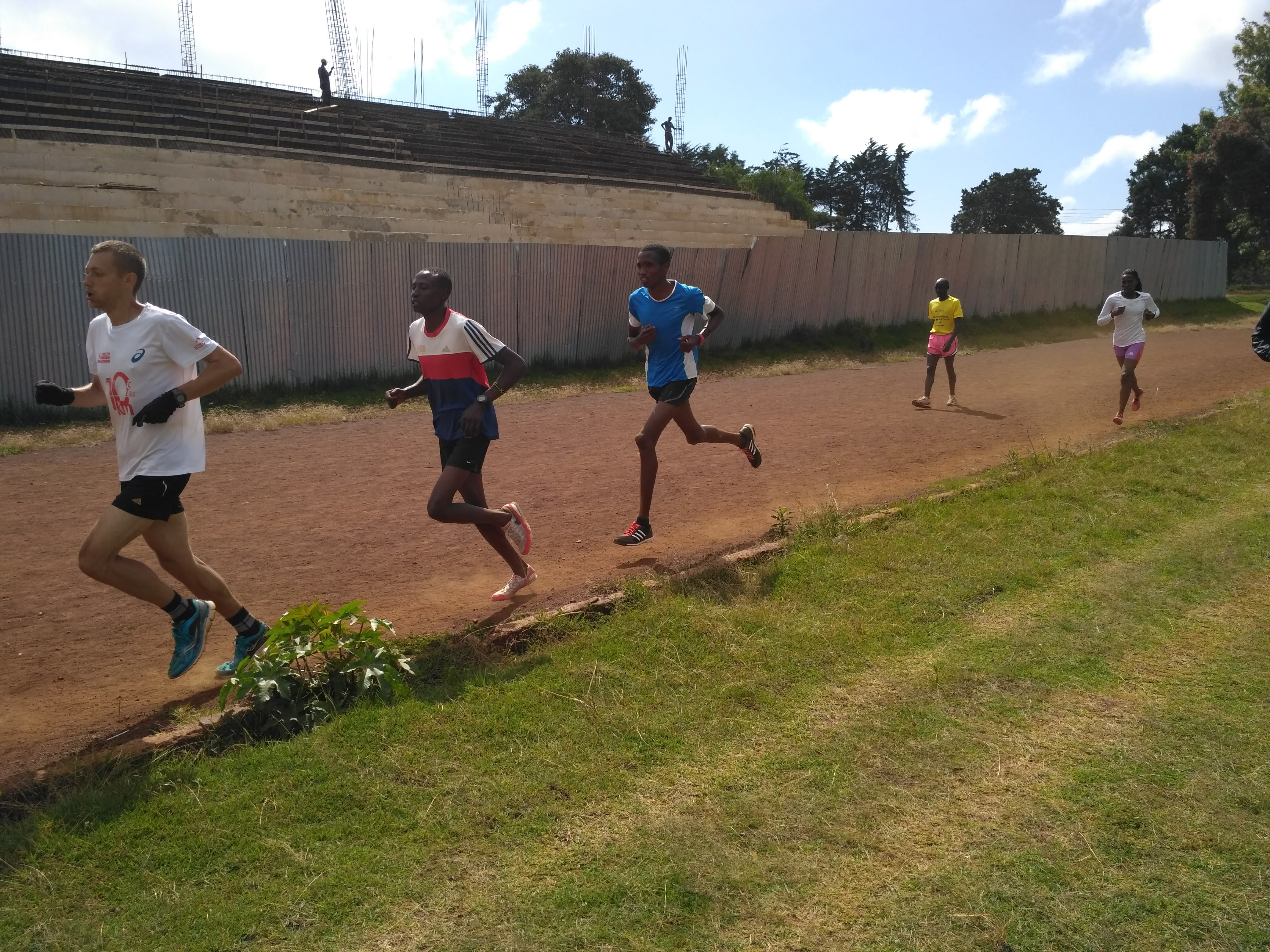 Dziś, jak w każdy wtorek na stadion Kamariny przyszło wielu biegaczy, by zrobić swój trening szybkościowy. Ja wcześnie rano pobiegałam wzdłuż głównej drogi w kierunku Eldoret. To najbardziej miękka i równa oraz mało kamienista trasa jaką udało się tu znaleźć. Można na niej spotkać wielu biegaczy. Na stadion dotarliśmy koło 10 rano. Było wielu naszych znajomych. Było też sporo białych. Podobno od teraz, aż do lutego będzie ich tu całkiem dużo. Dokształcamy się w suahili i wiemy już, że jeden biały to mzungu, wielu to łazungu. Marcin, Levi i Errol kończyli już swoje treningi. Levi, który jest w Kenii od tygodnia adaptuje się dopiero do tutejszych warunków. Tajwańczyk bardziej zaprawiony zrobił dziś 30 okrążeń 400 m po 75”.