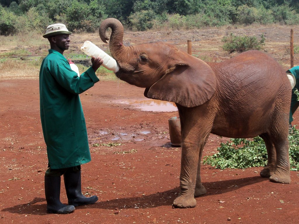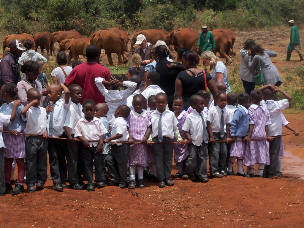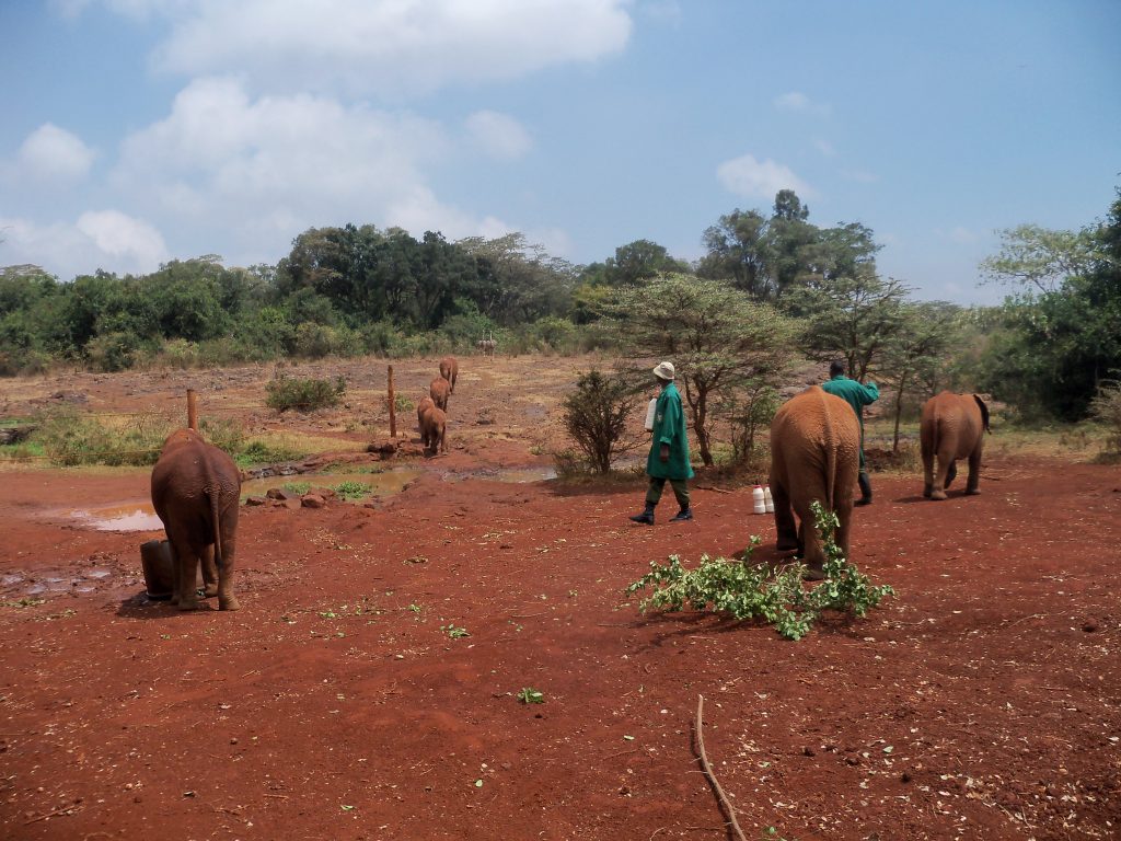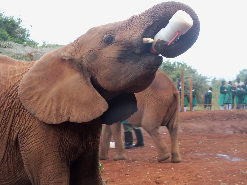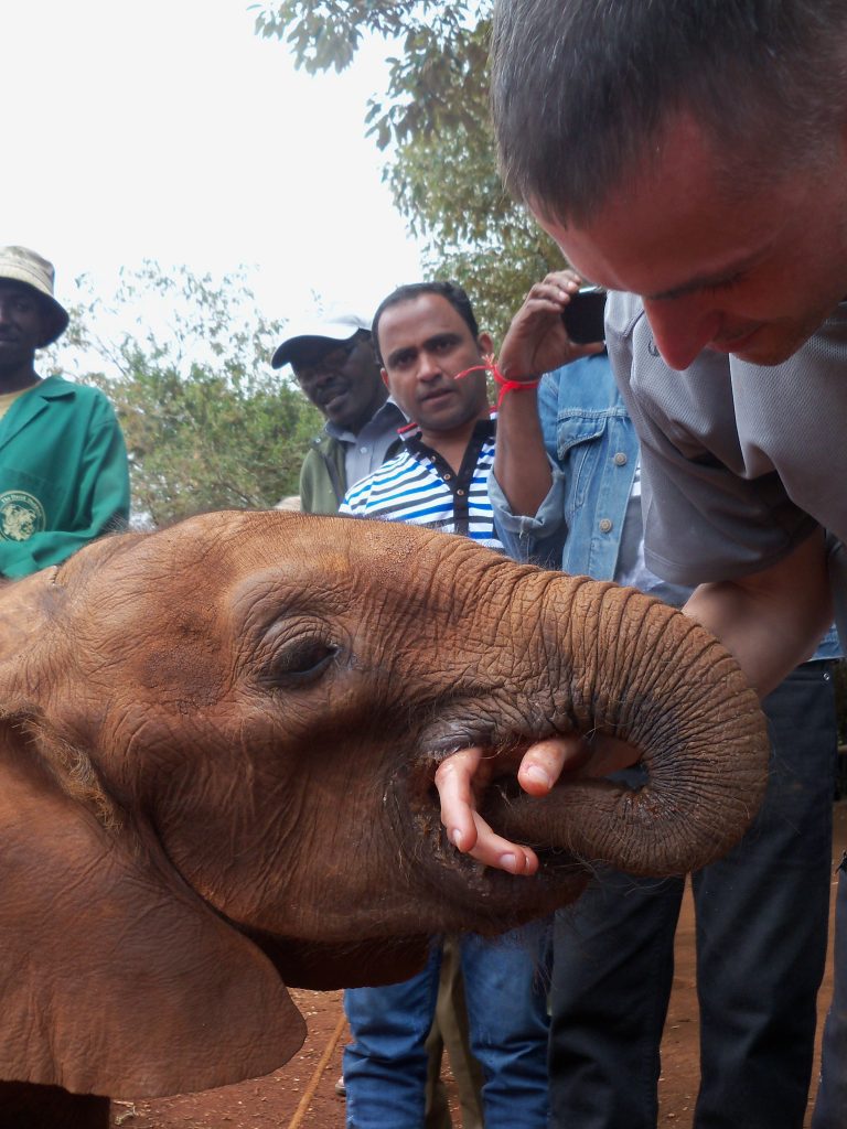 Dziś w planach sierociniec słoni w Nairobi, gdzie trafiają młode okaleczone i osierocone zwierzęta. Trafiliśmy na porę karmienia. Ze schowanych w buszu zagród wybiegło stado słoni od kilkumiesięcznych „maluchów” karmionych butelką, do sporych rozmiarów dwulatków. Miejsce to jest także często odwiedzane w ramach edukacyjnych wycieczek przez kenijskie dzieci.