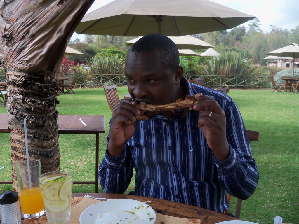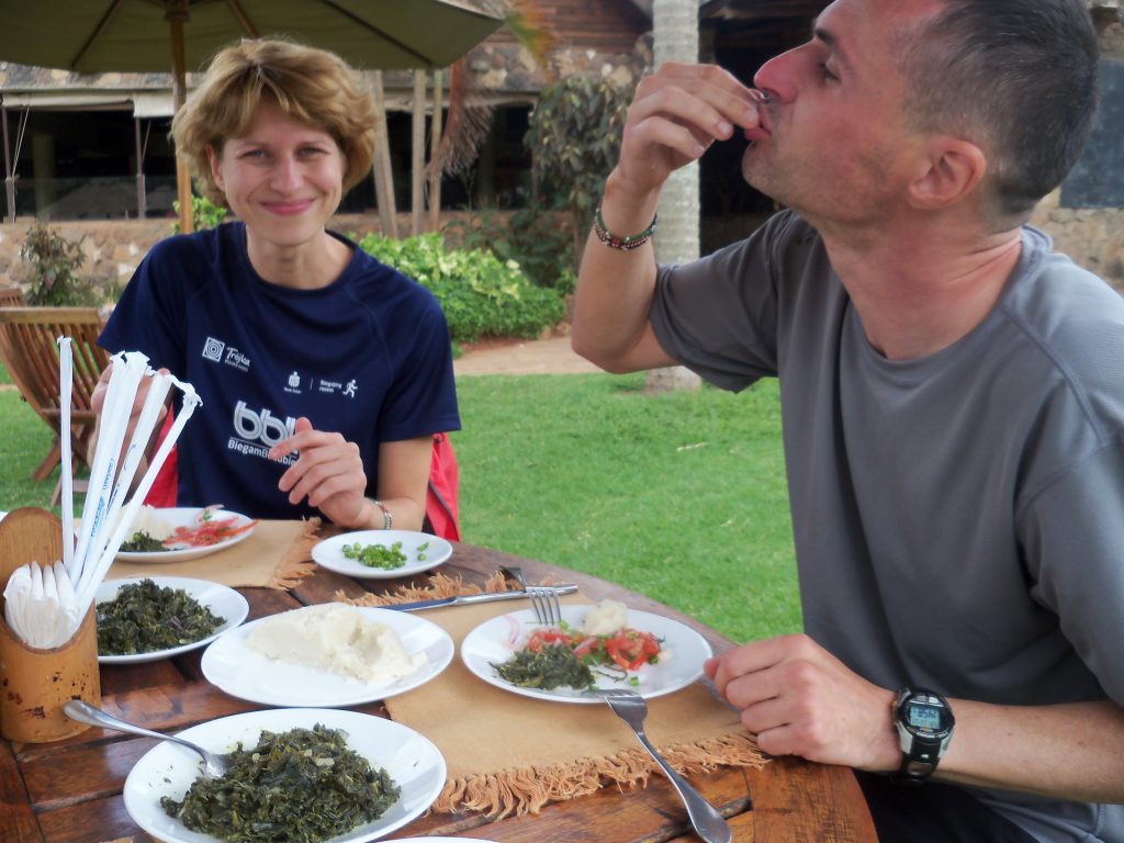 Chłopaki zabrali nas później do restauracji i zamówili typowe kenijskie jedzenie. Nasze pierwsze oryginalne ugali i sukuma. Nasi przewodnicy uświadomili nam, że nie wszyscy Keniole to przeraźliwie chudzi biegacze.