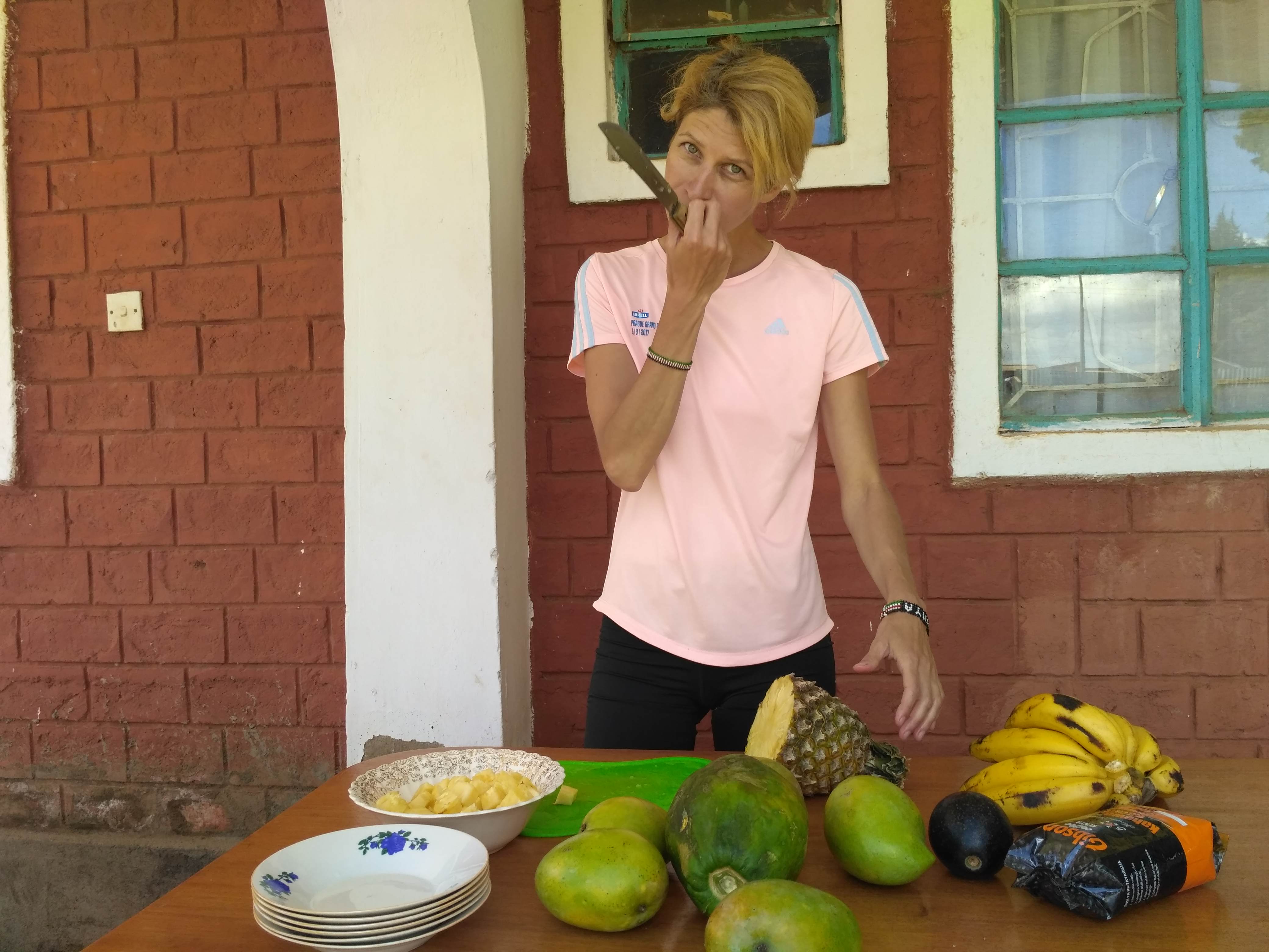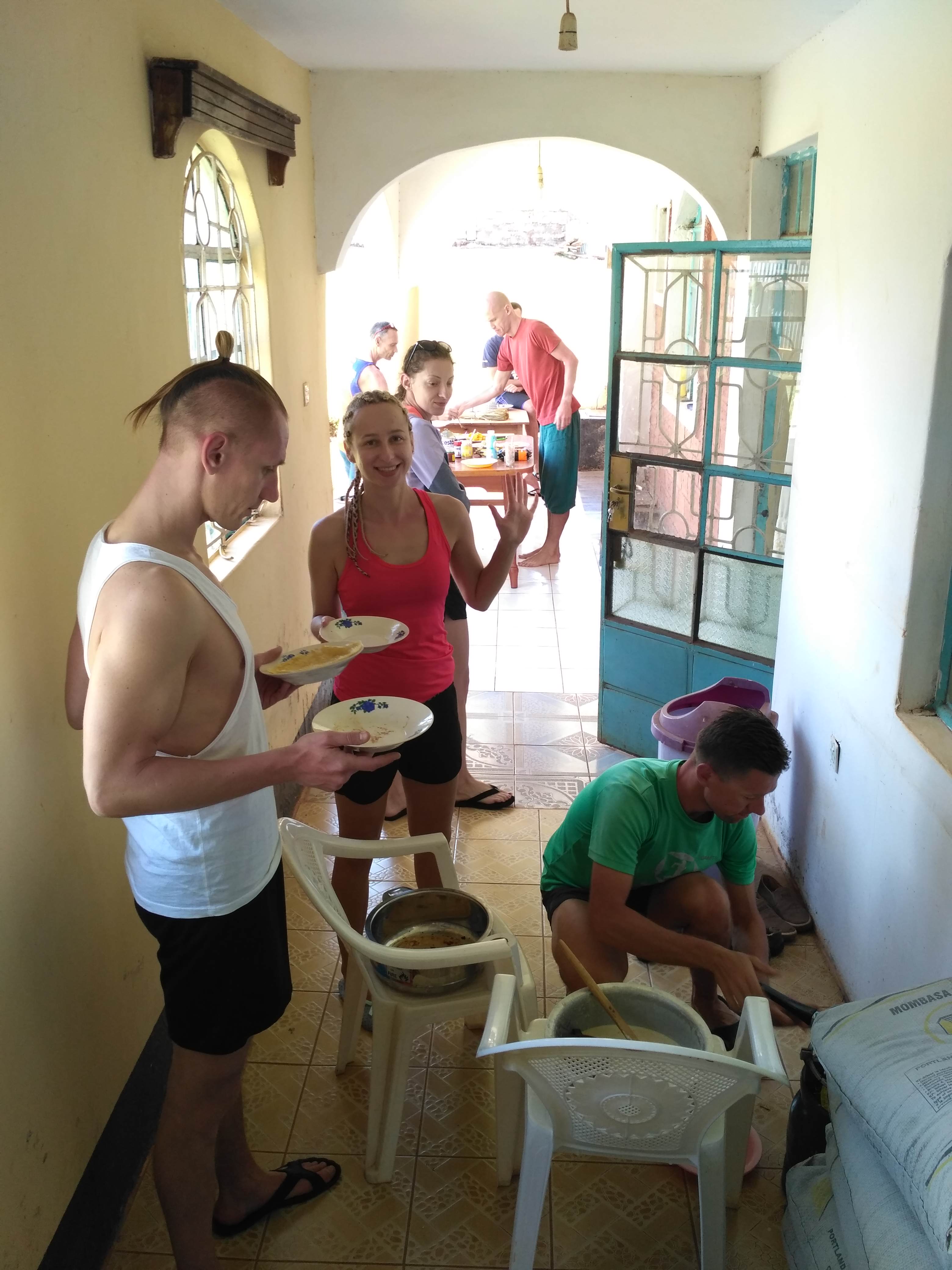 Po dotarciu do domu chłopacy wzięli się za naleśniki. Ja pokroiłam owoce, mango, ananasa, papaję i banany. Mieliśmy też dżem, miód i czekoladę w proszku. Uczta na całego. Meshack i Daniel też się zajadali, choć dla nich było to coś zupełnie nowego. Później, objedzeni po uszy zalegliśmy na kocach.