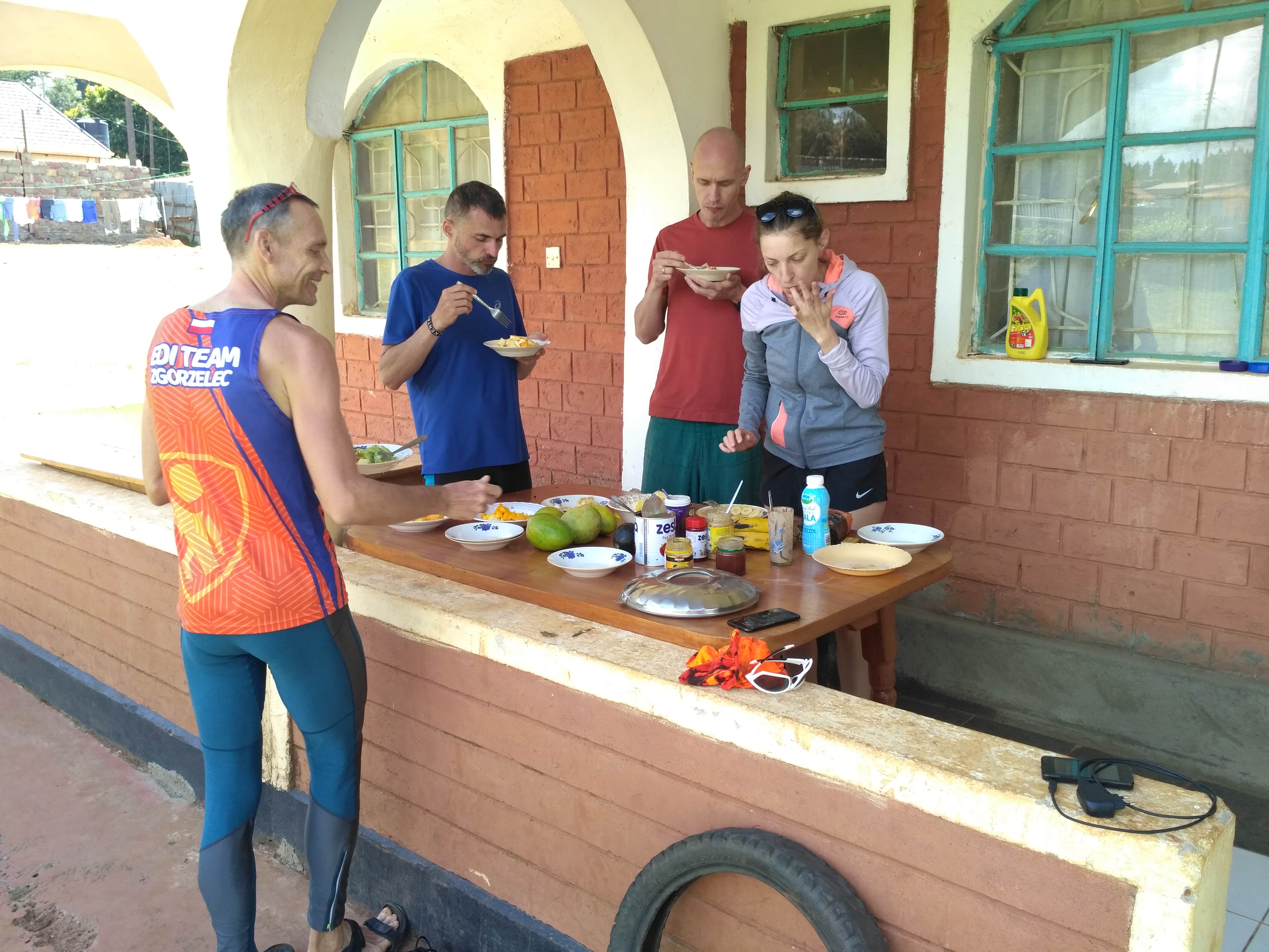 Kolację przygotowaliśmy sobie dziś sami. Ania z Moniką zrobiły francuskie tosty, Bartek pyszną pastę z awokado, do tego pomidory. W ciągu dosłownie trzech minut wszystko zniknęło ze stołu i zaczęliśmy się zastanawiać co by tu jeszcze zjeść. Robert ugotował szybko jajka, idealnie na miękko. Mi się to nigdy nie udaje. Popiliśmy herbatą z termosów. Trochę pogadaliśmy jeszcze i pośmialiśmy się i dziś sporo wcześniej poszliśmy spać. Jutro w planach trening na stadionie w Tambach.