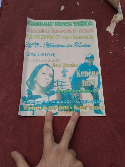 Chcieliśmy iść na piwo do naszego znajomego Australijczyka. Okazało się, że zamknął knajpę i wyjechał. Nie wiadomo kiedy wróci. Szkoda, bo pizzę serwował genialną. Wracając drogą do hotelu ktoś nagle zawołał mnie po imieniu. Był to Reuben, z którym rok temu wspólnie trenowaliśmy i spotykaliśmy się na biegach w Czechach. Fajnie jest tu znowu być. Pogoda super. Ciepło, nie pada, choć powietrze ostrzejsze i trochę chłodniejsze niż w Kapsabet. Ale do biegania idealnie. Na bramie wjazdowej do miasta wisiało ogłoszenie o dyskotece u Kipsanga. Na szczęście już się odbyła. Kolejna w przyszły weekend, start o 18, koniec o 6 rano…