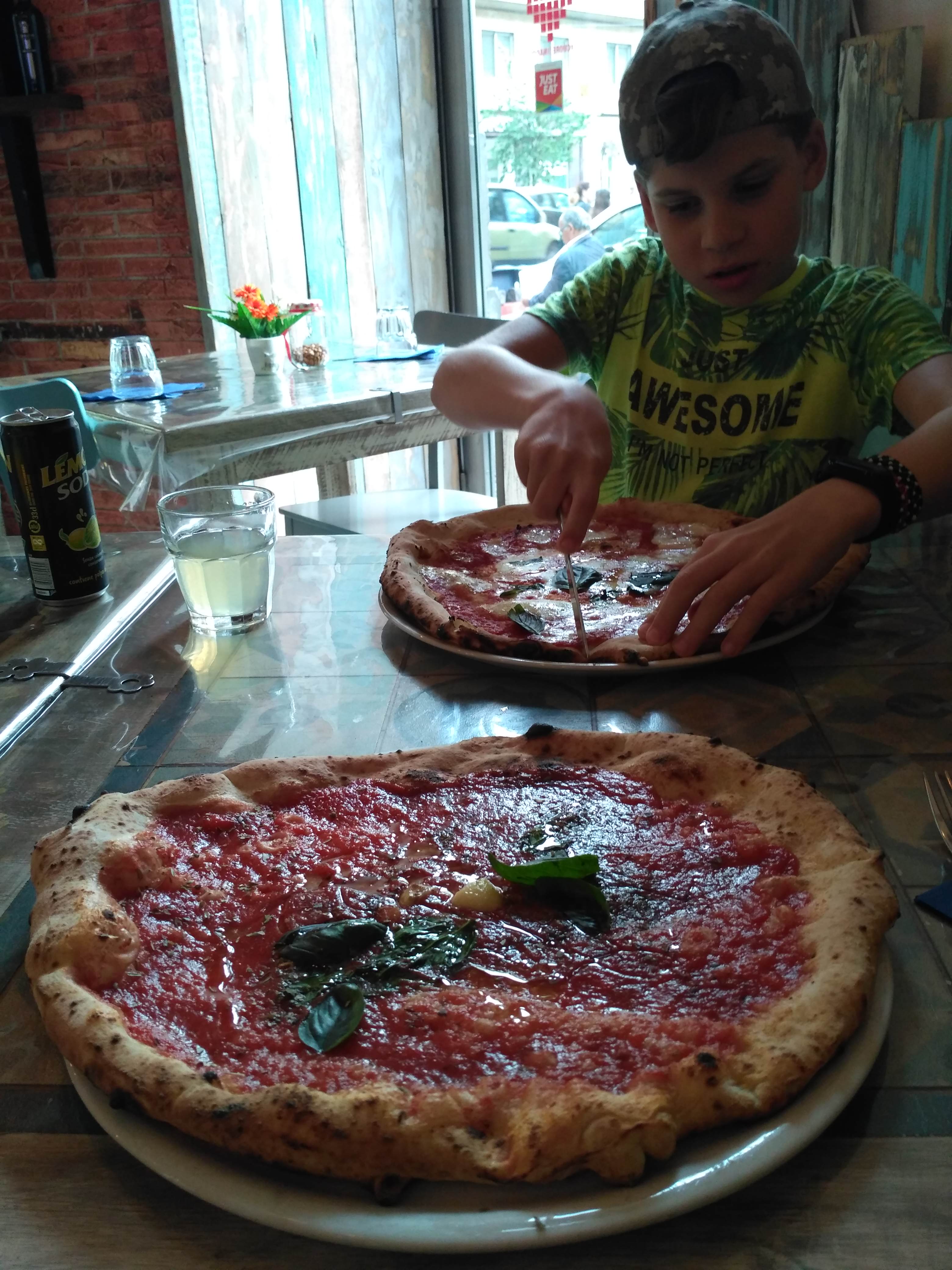 Ruszyliśmy w kierunku wybrzeża i zatrzymaliśmy się przy pierwszej knajpie z napisem pizza na jednej z głównych ulic. Zamówiliśmy trzy różne pizze, które po niedługiej chwili dostaliśmy. Były bardzo smaczne, o nieregularnym ksztakcie, wypiekane w piecu opalanym drewnem.