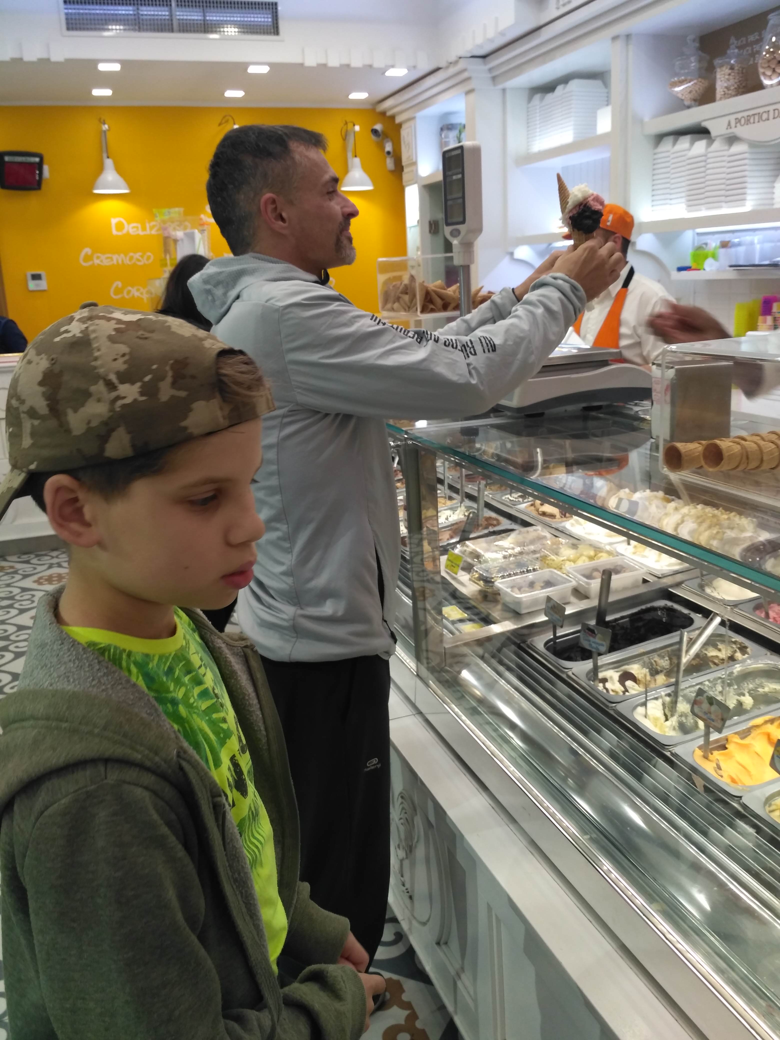 Gdy w końcu dotarliśmy na miejsce nasz guesthouse był zamknięty, a telefon właściciela nie odpowiadał. Z pomocą lokalnej dziewczyny udało mi się z nim w końcu skontaktować, już do nas jechał. Miał na imię Pascal. Bardzo sympatyczny i zabawny. Mamy ładne mieszkanie, z kuchnią i łazienką i zamykanym parkingiem na auto. Jest bezpieczne. Pascal zaparzył Jackowi mocne espresso i wytłumaczył nam, gdzie są najlepsze lody u „Galla” na Via Leonardo da Vinci. Mimo późnej pory poszliśmy tam jeszcze na spacer i deser. Wybór był ogromny, chyba ze sto smaków i faktycznie pyszne! Ulice wcześniej mocno zakorkowane teraz opustoszały. Czas spać, bo na jutro zaplanowałam wejście na wulkan i wizytę w Pompejach.