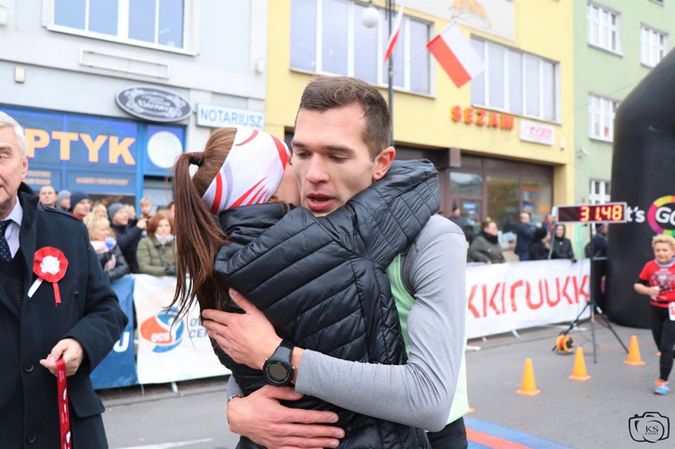 W poniedziałek Sebastian wystartował w biegu niepodległości na 10km w Obornikach Wielkopolskich. Nie mieliśmy sprecyzowanych oczekiwań czasowych. Zadowalał nas wynik poniżej 32 minut. Motywem przewodnim był za to test nowych butów, które Seba założył tuż przed startem. Sprężynują, czy nie sprężynują? Oto jest pytanie…