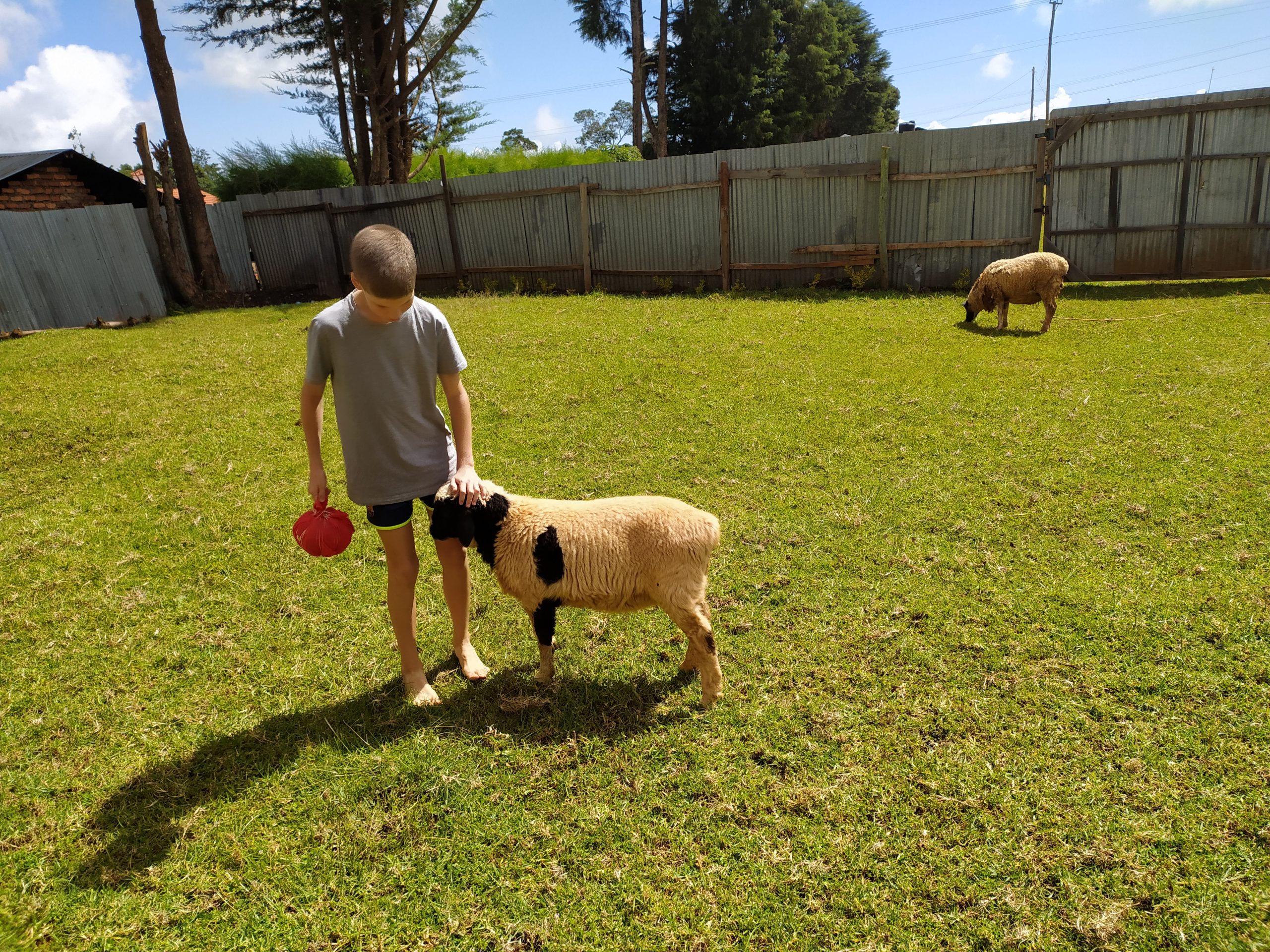 Na podwórku czekał na nas zwierzyniec. Tęsknimy za naszym Sudanichem i to taka namiastka naszego pupila. Owca Maciek nie odstępuje Janka na krok. Musimy uważać, bo rozpędza się i wbiega nam do domu. Mimo ostrych krzyków matki owcy, która wyraźnie przywołuje swoje dziecko do porządku i bacznie kontroluje jego spoufalanie się z nami.