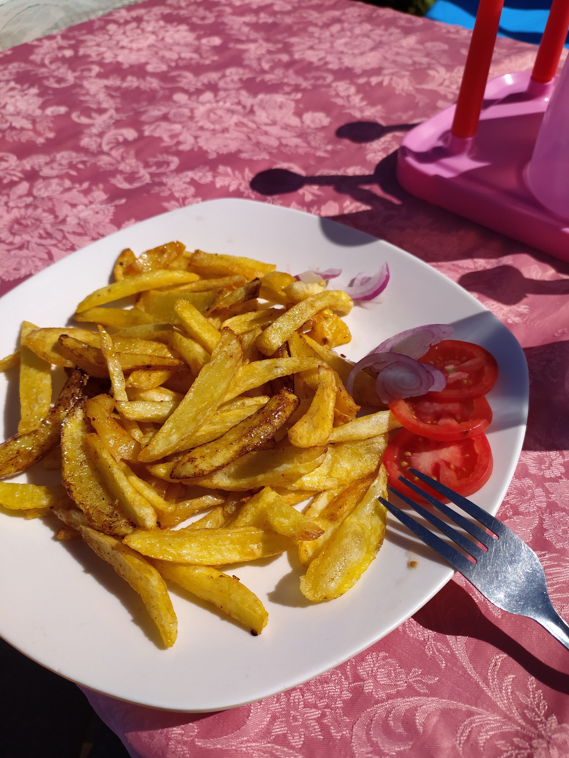 Janek poszedł rano sprawdzić stan prac w restauracji Nancy. Koniecznie nalegała, żebyśmy przyszli na lunch, na 14 na chipsy masala. Są to frytki doprawione specjalnymi przyprawami. Czekaliśmy prawie godzinę, ale było warto. Były pyszne! Nancy przygotowała dla nas stoliki na dworze, czuliśmy się jak na działkowym grillu. Słońce mocno paliło. Nancy miała dla mnie i dla Ady niespodziankę. Dostałyśmy kolorowe chusty. Nancy zawiązała mi ją wokół bioder. Bardzo mi się podoba i na pewno przyda się na wybrzeżu.