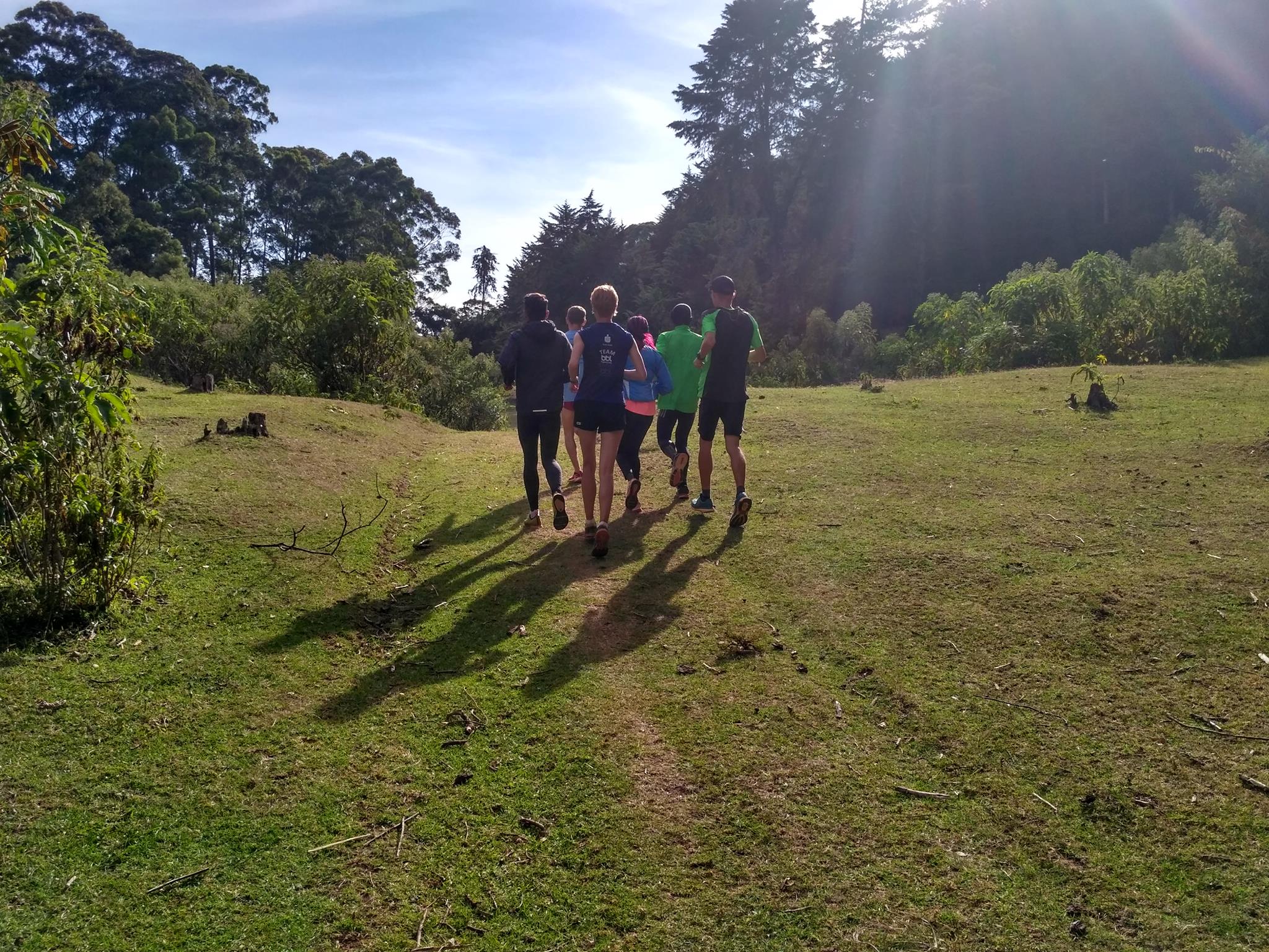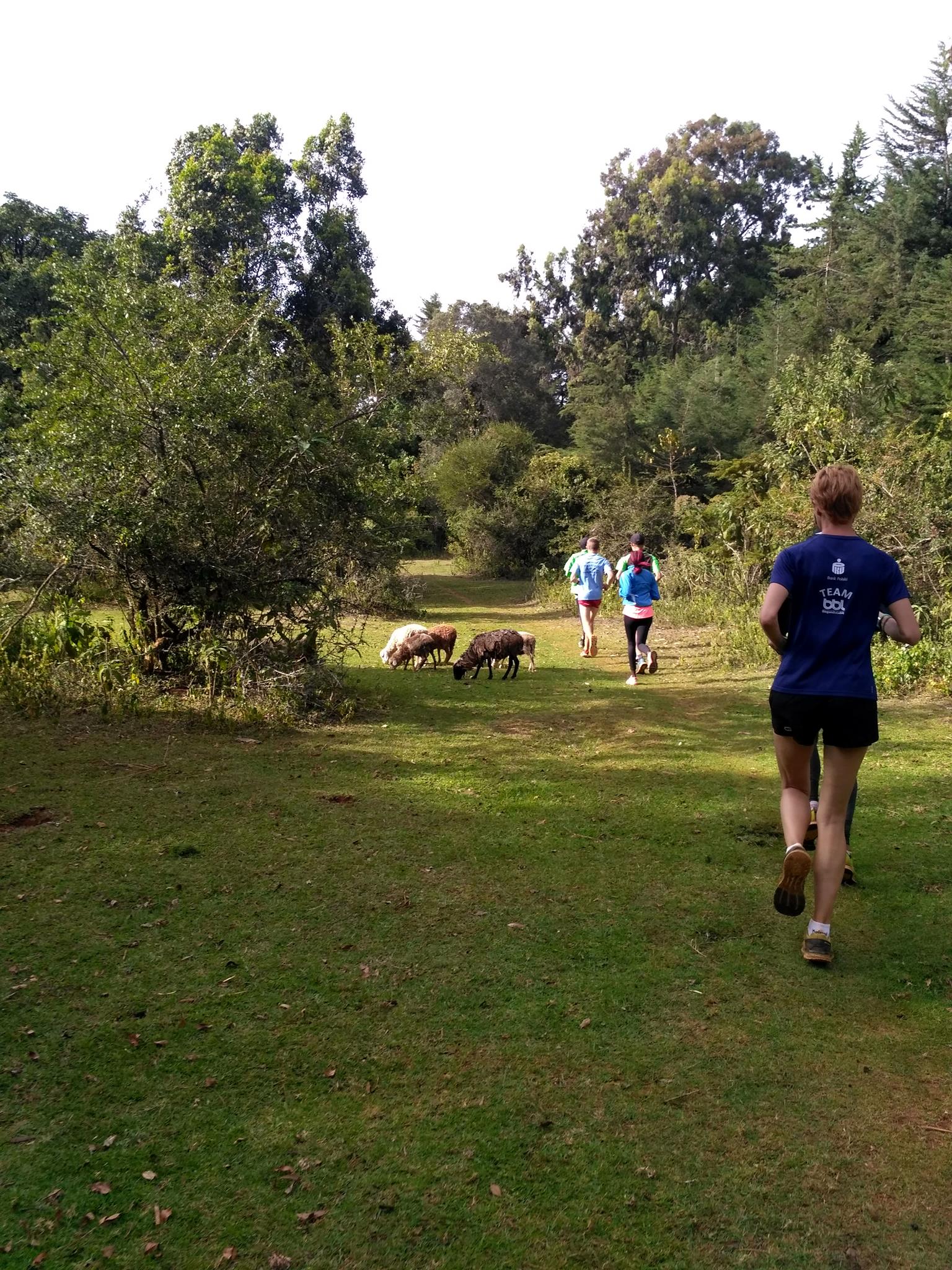 Tak dobrze mi się rano biegało, że postanowiłam dołączyć do chłopaków na ich drugi popołudniowy trening. Robili go w lesie, tym po którym rok temu biegałam w poszukiwaniu małp. Umówiliśmy się przed godziną 16 w centrum. Yacool wziął rower, ja pojechałam motorkiem. Był Marcin ze znajomą Feith, Levi i Ziet z Libanu oraz Meshack. Potruchtaliśmy w kierunku lasu. Meschack prowadził nas krętymi, leśnymi ścieżkami. Idealne do biegania, miękkie, w końcu bez kamieni i piachu. W planie było 40′ easy po 6’/km. Ale chłopakom trudno było biec tak wolno. Po 30′ zaczęłam od nich odstawać. Ale w końcu w grupie miałam trzech chłopaków, którzy mierzą w przyszłe Igrzyska. Ziet po powrocie do Libanu zamierza bić rekordy swojego kraju na średnich dystansach.