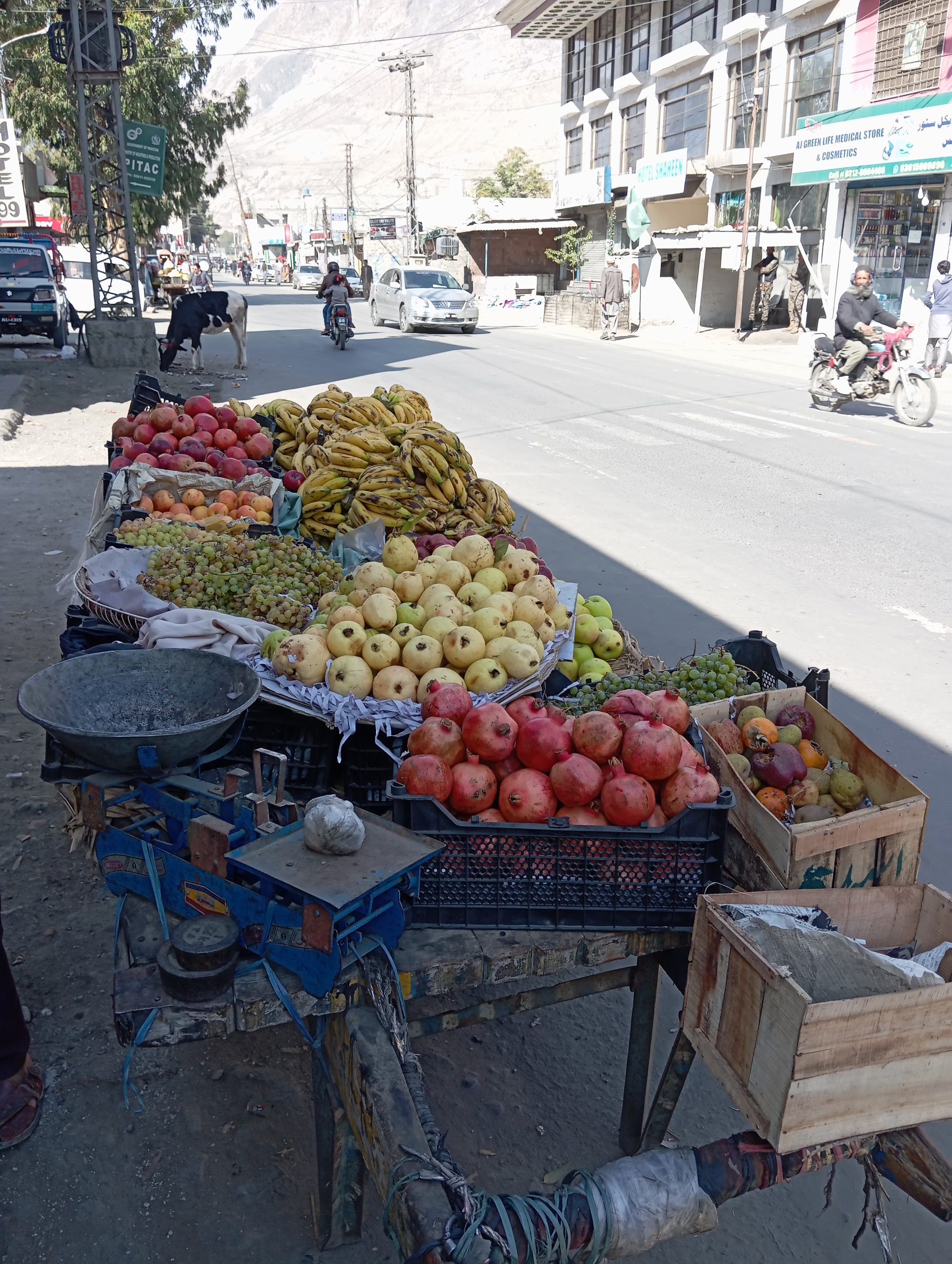 Mieliśmy ponad godzinę do przylotu samolotu. Postanowiliśmy wykorzystać ten czas na spacer na pobliski bazar. Tu bazar to też była po prostu ruchliwa, główna ulica. Pełno było na niej sklepów, budek z warzywami, rzeźników, knajp. Pochodziliśmy, porobiliśmy zdjęcia i zawróciliśmy. Dzieciaki, ale i starsi przyglądali nam się z zainteresowaniem. Nikt nie zaczepiał, nie nagabywał. Panował ogólny rozgardiasz.