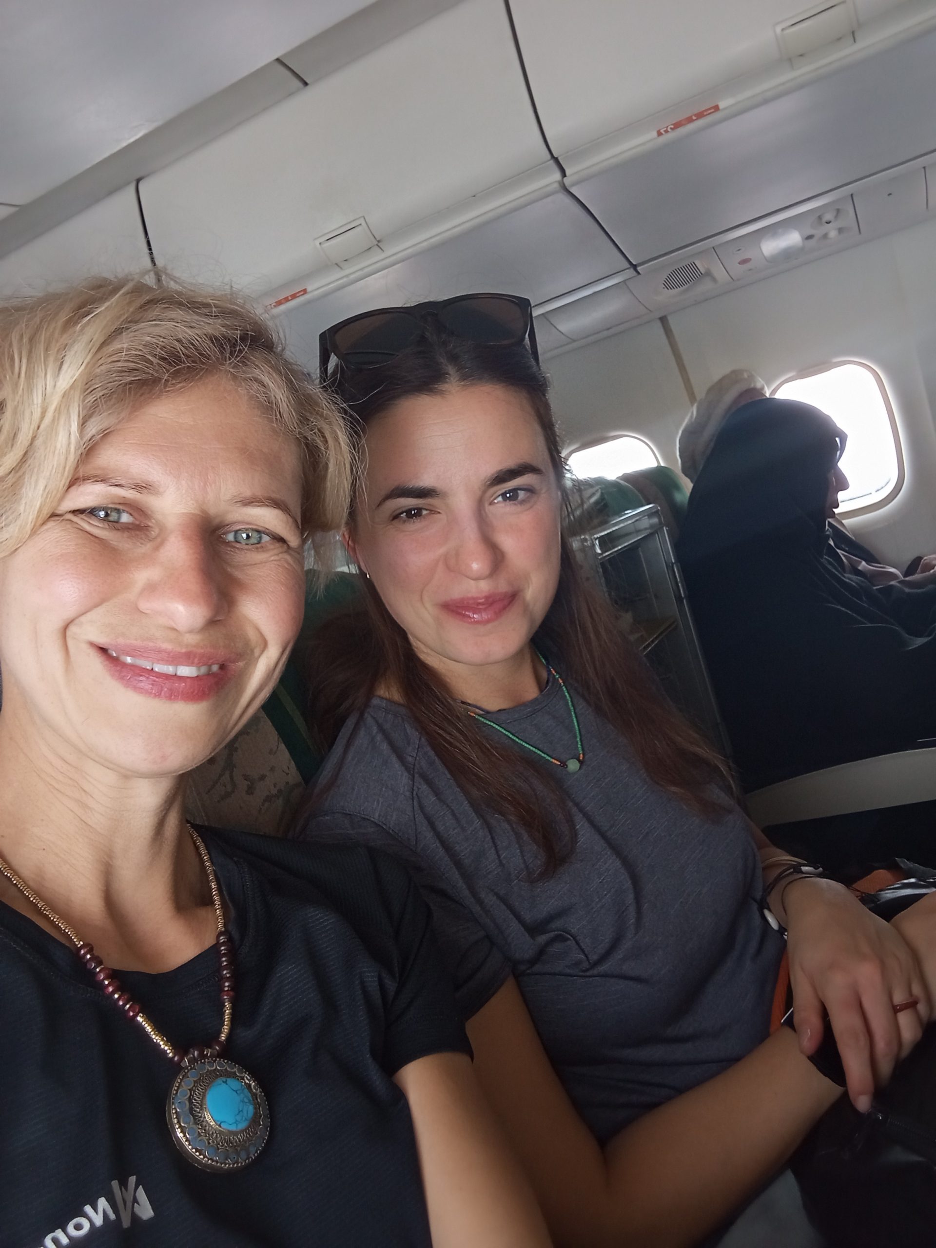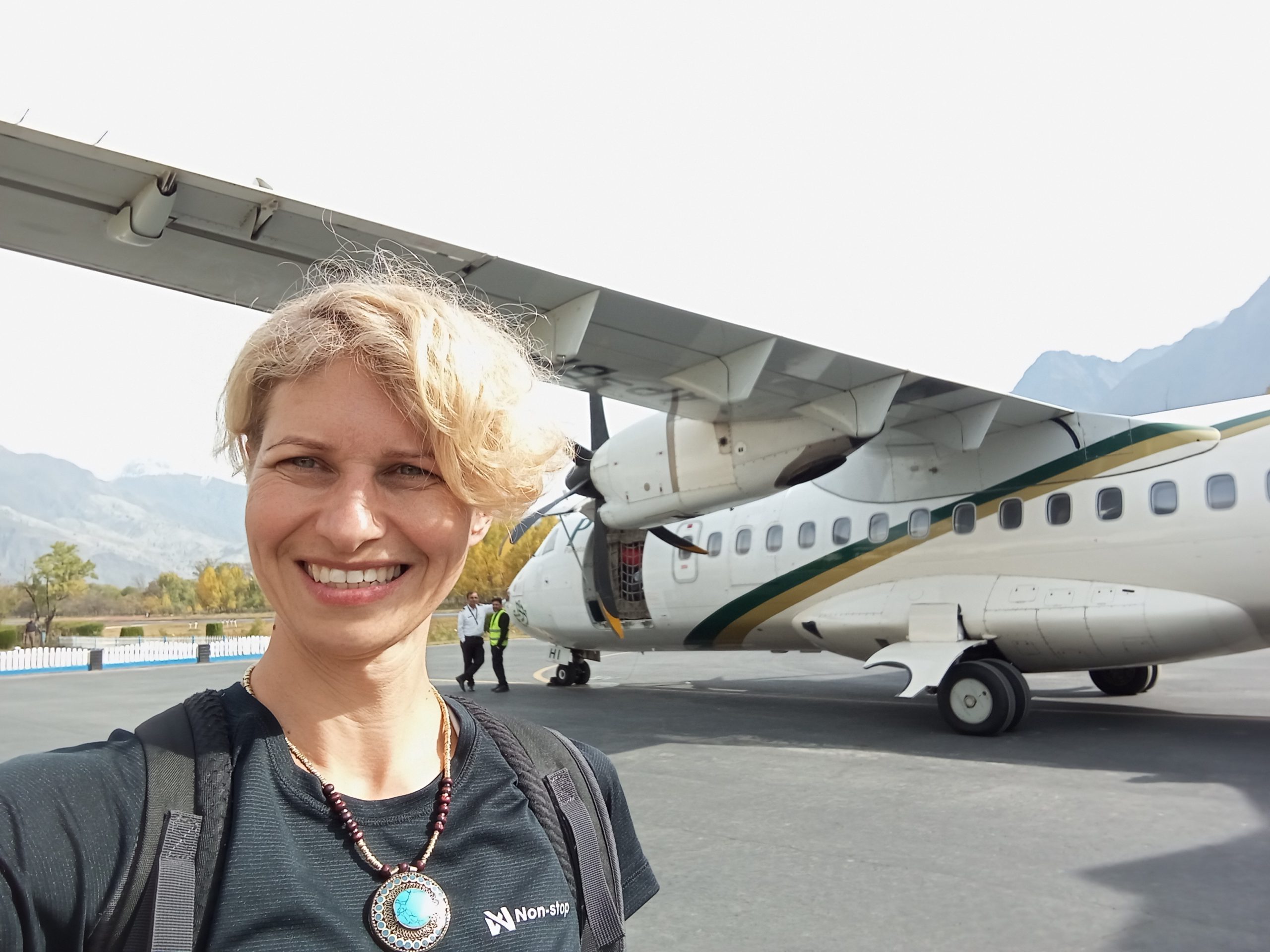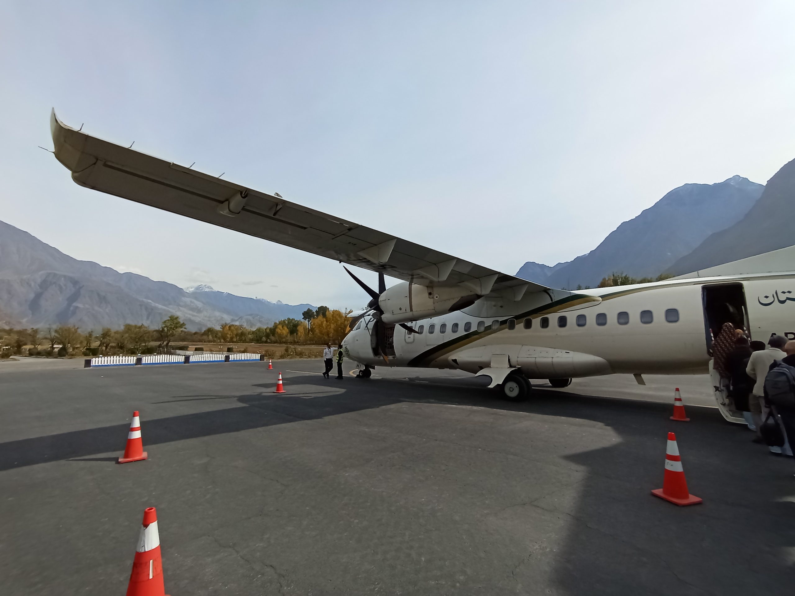 Samolot to była nieduża, śmigłowa jednostka. Z pewnością nie należała do najmłodszych. No ale skoro przyleciała, to duża szansa, że i wróci szczęśliwie… Nasz guide odprawił nas sprawnie. Zadbał byśmy wszyscy mieli miejsca po lewej stronie w samolocie, co gwarantowało super widoki na góry, w szczególności na Nanga Parbat. Pilot w trakcie lotu mówił nad czym przelatujemy. Lot był niesamowitą atrakcją!