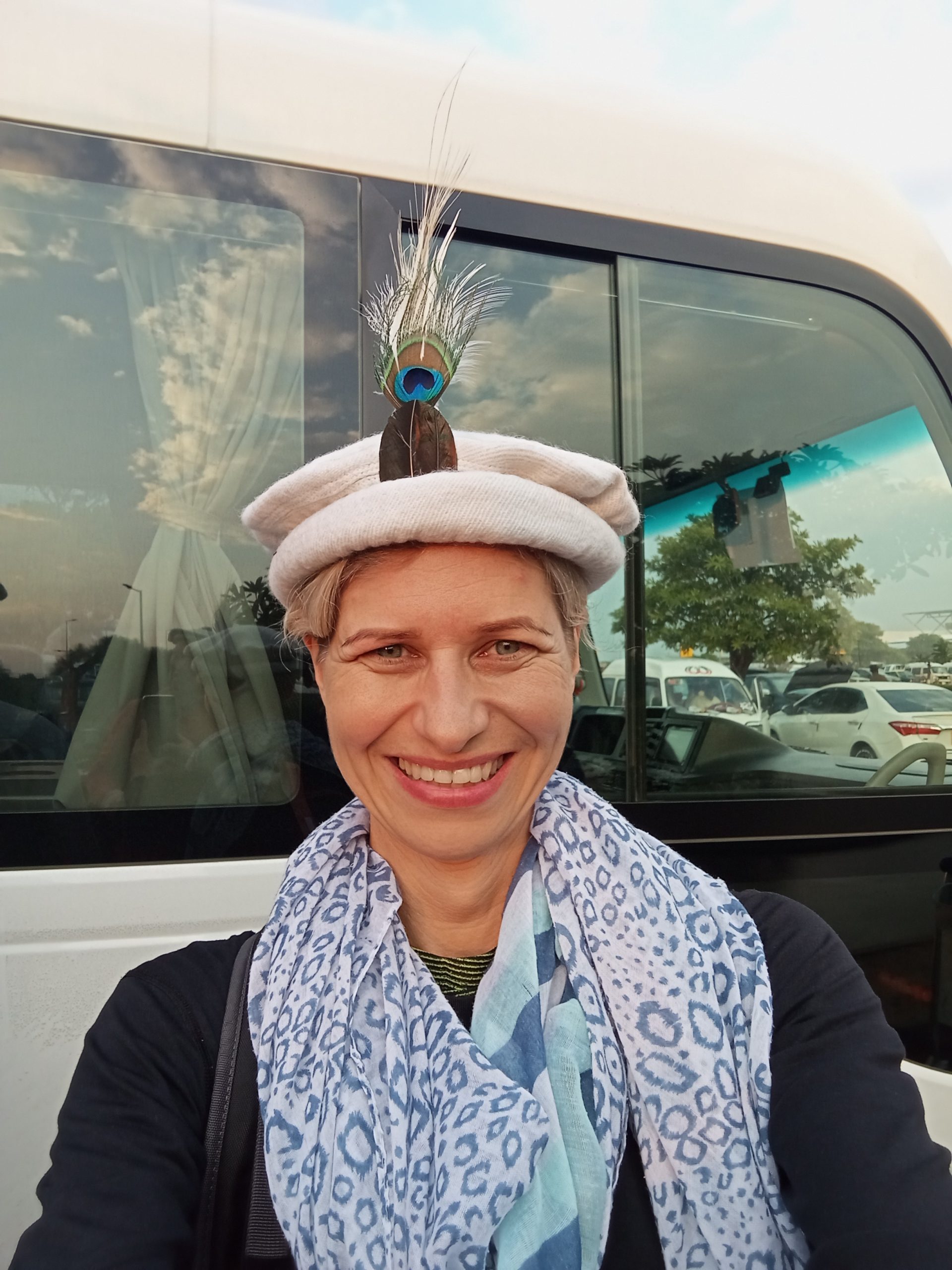 Do stolicy Pakistanu przylecieliśmy nad ranem. Procedury wizowe okazały się szybsze niż myśleliśmy. Dłużej czekaliśmy na odbiór bagaży. Na szczęście wszystkie doleciały. Kontrahent czekał na nas na lotnisku i zaprowadził do busa, którym będziemy zwiedzać kraj (między innymi). Dostaliśmy w prezencie po czapce/ berecie przyzdobionym pawim piórkiem.