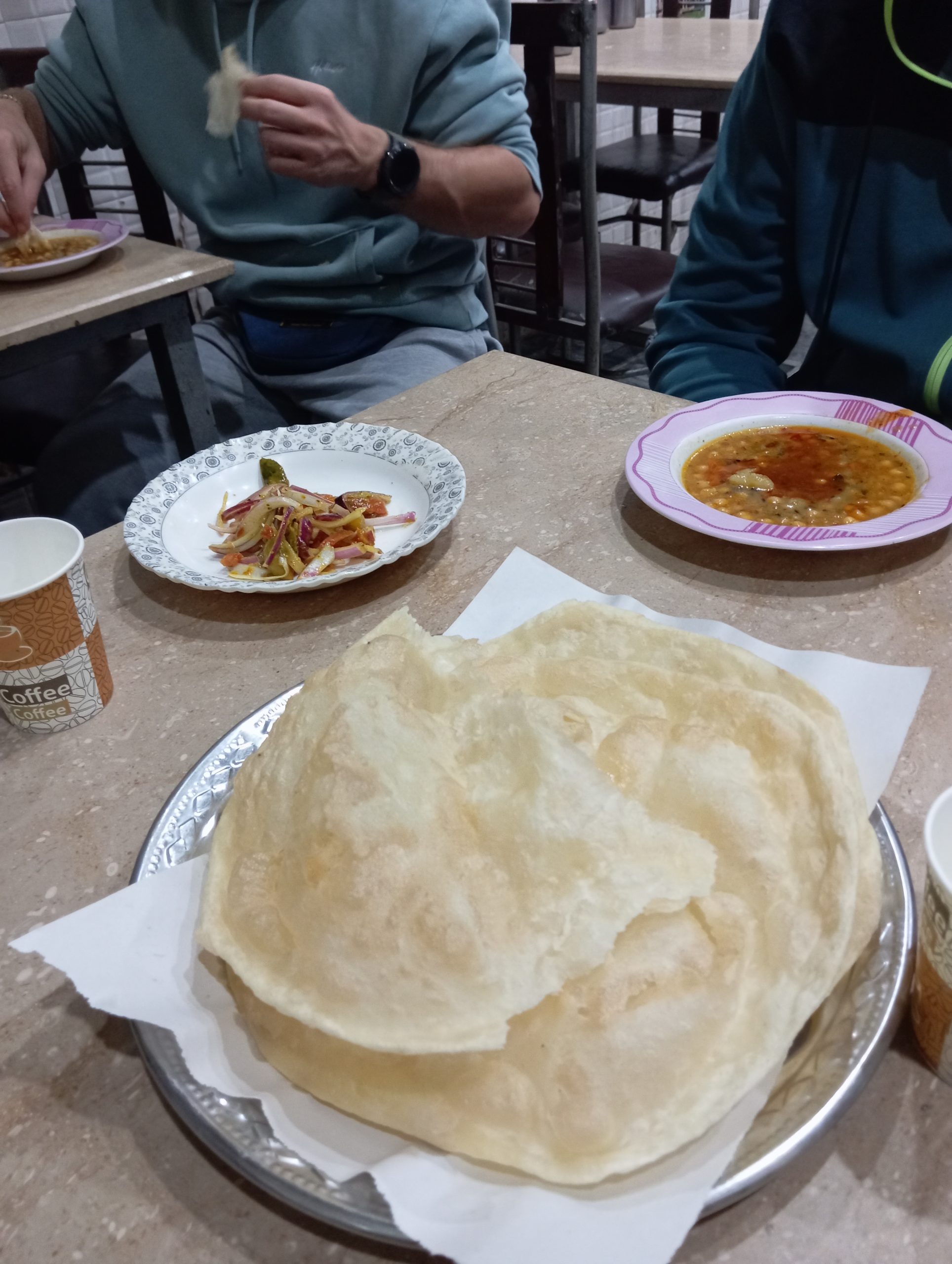 Było bardzo wcześnie rano. Ulice niemal puste, trochę motorków i mijaliśmy też kilka charakterystycznych dla Pakistanu kolorowych ciężarówek. Pojechaliśmy najpierw do centrum Rawalpindi na śniadanie. Klimat bardzo lokalny, ale śniadanie smaczne i póki co nikogo nie rozbolał brzuch 😁 Zjedliśmy typowe placki puri i nań, do tego zupę z soczewicy i kiszone warzywa. Na deser słodka chałwa. Herbata jak w Kenii z mlekiem i cukrem. Ale na prośbę, właściciel zrobił kilku osobom w tym mi zwykłą czarną, bez dodatków, mimo wyraźnego zdziwienia.