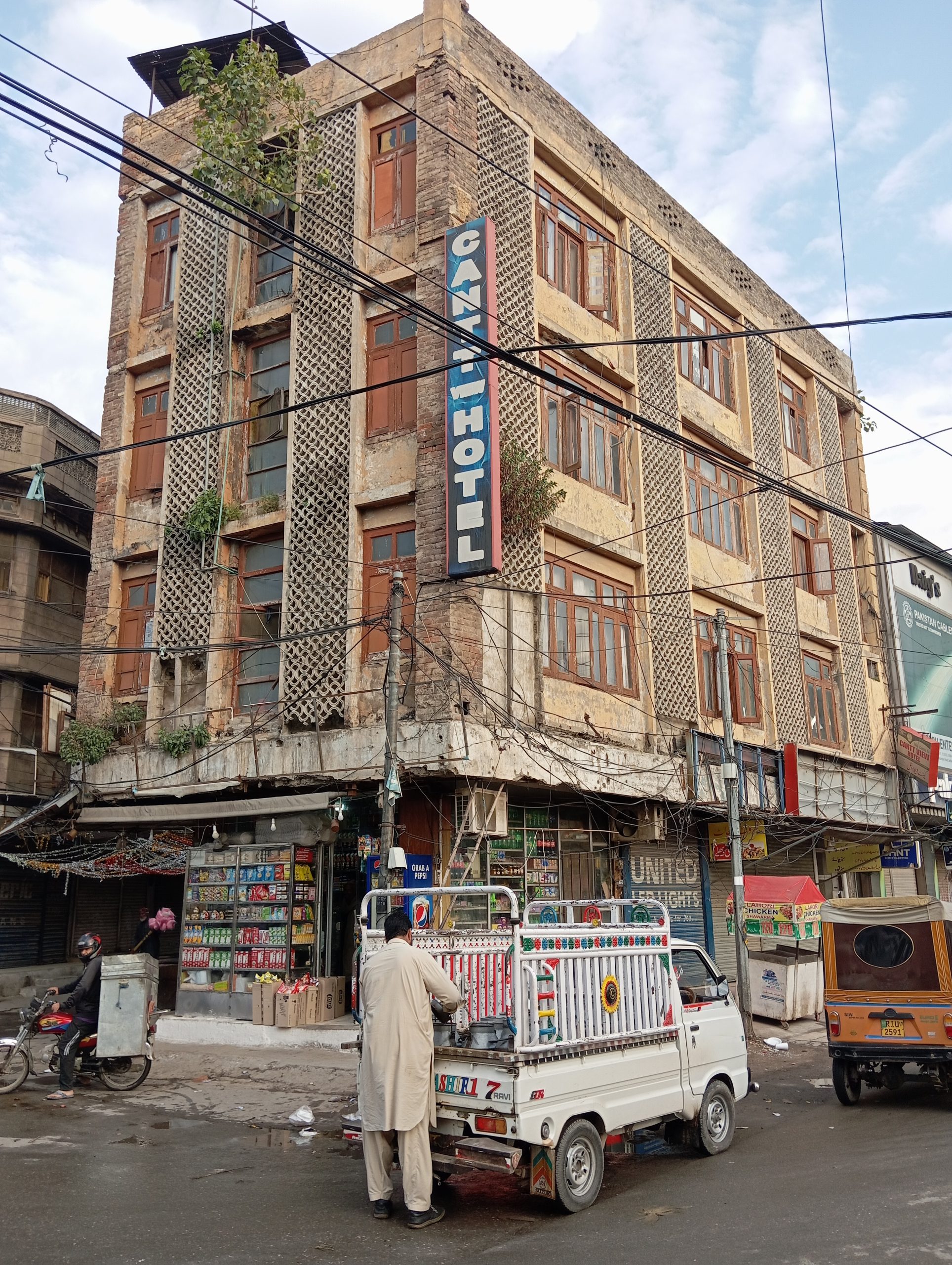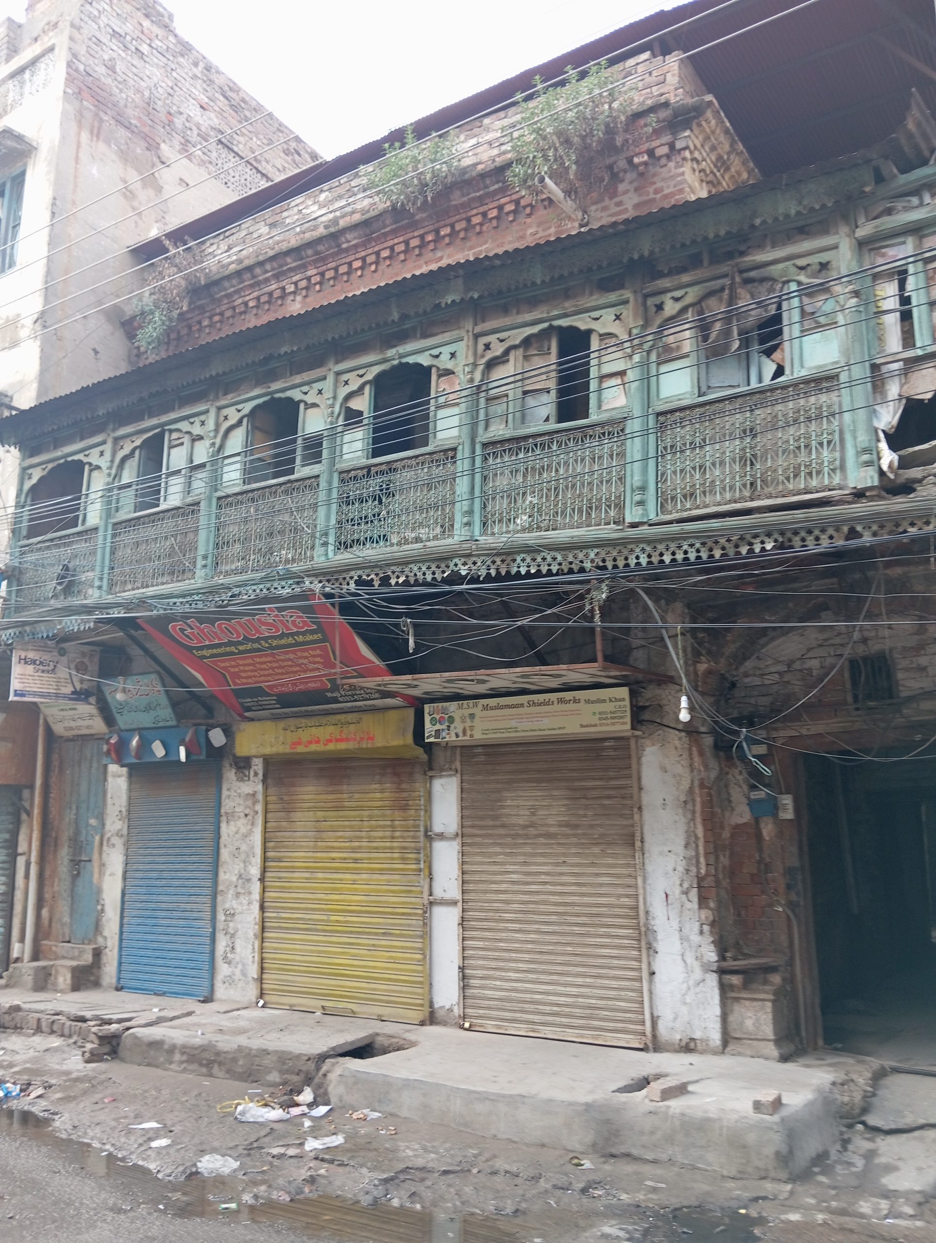 Później nasz lokalny przewodnik przespacerował z nami ulicami miasta. Pokazał kilka starych, około 100 letnich pięknie rzeźbionych fasad domów, dziś już w ruinie. Na ulicach duży bałagan i śmieci. Słupy obwieszone kablami elektrycznymi, a dookoła szyldy sklepów i reklamy firm kablowych. Grupa chłopców grała w popularnego tu krykieta. Dwie osoby z grupy też spróbowały swych sił, całkiem skutecznie 😉 Przeszliśmy szerokim deptakiem, po którym czasem przejechał motorek lub riksza. Ruch jest tu lewostronny więc trzeba uważać. Kierowcy riksz zatrzymywali się proponując transport.