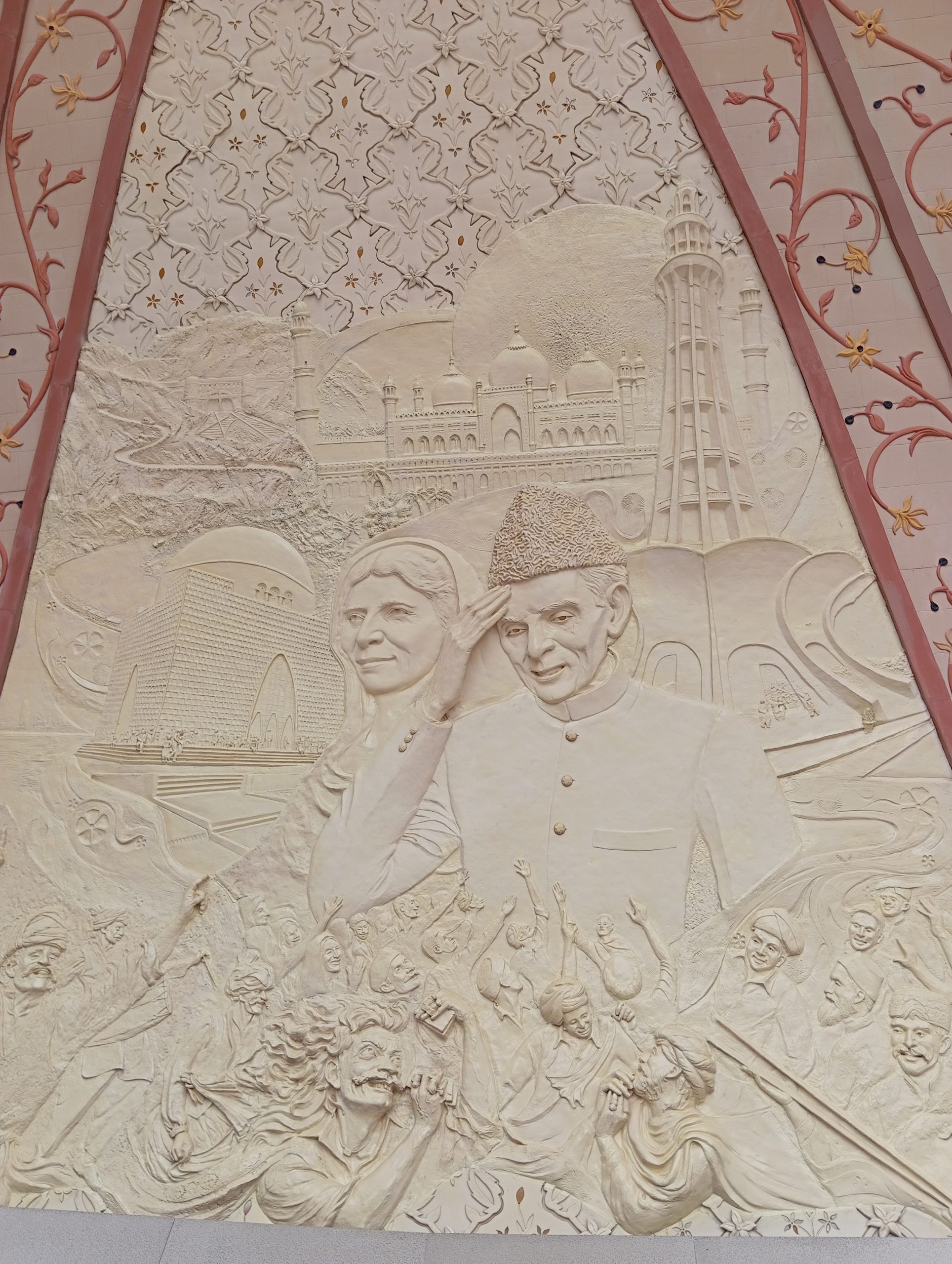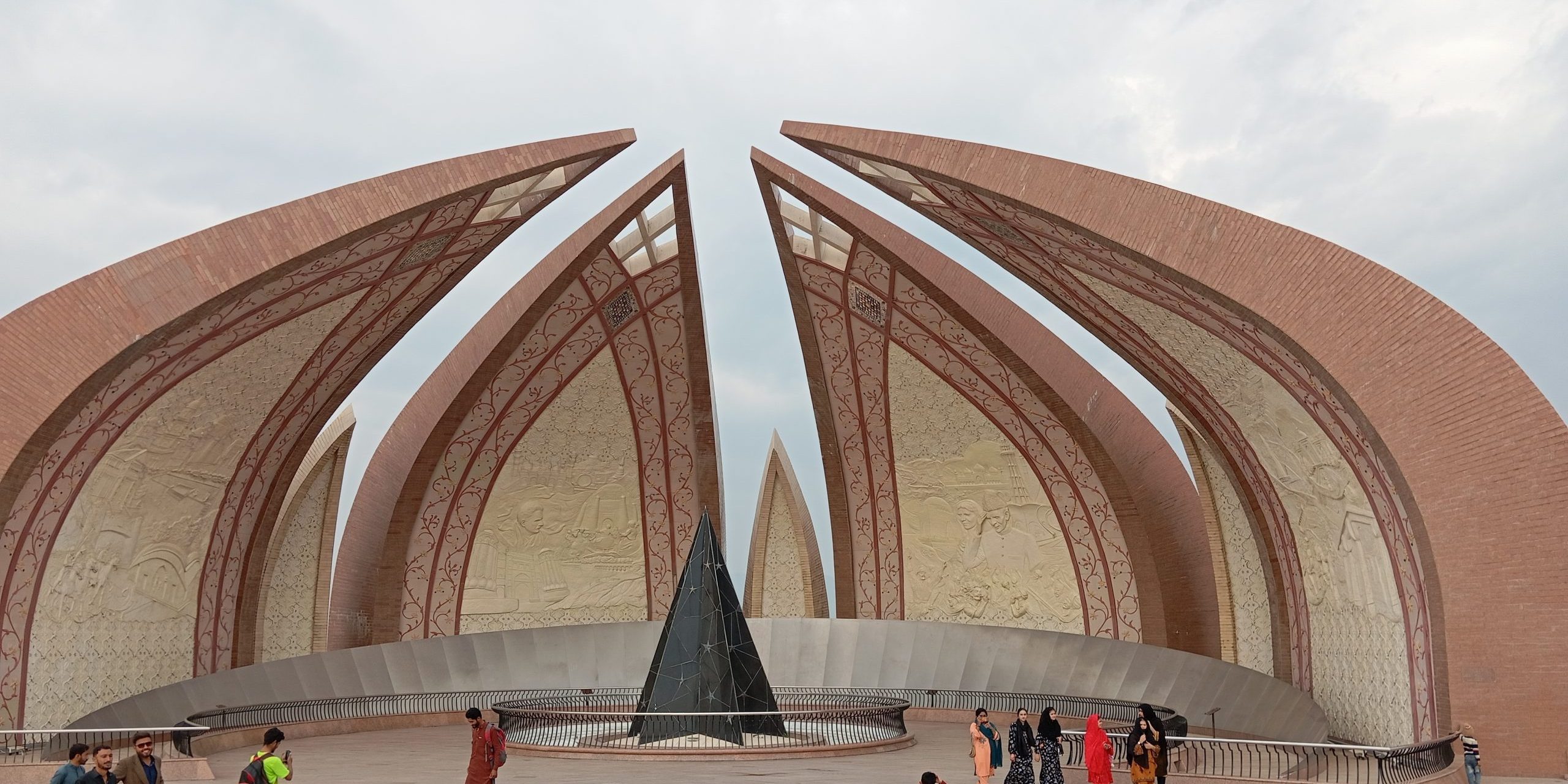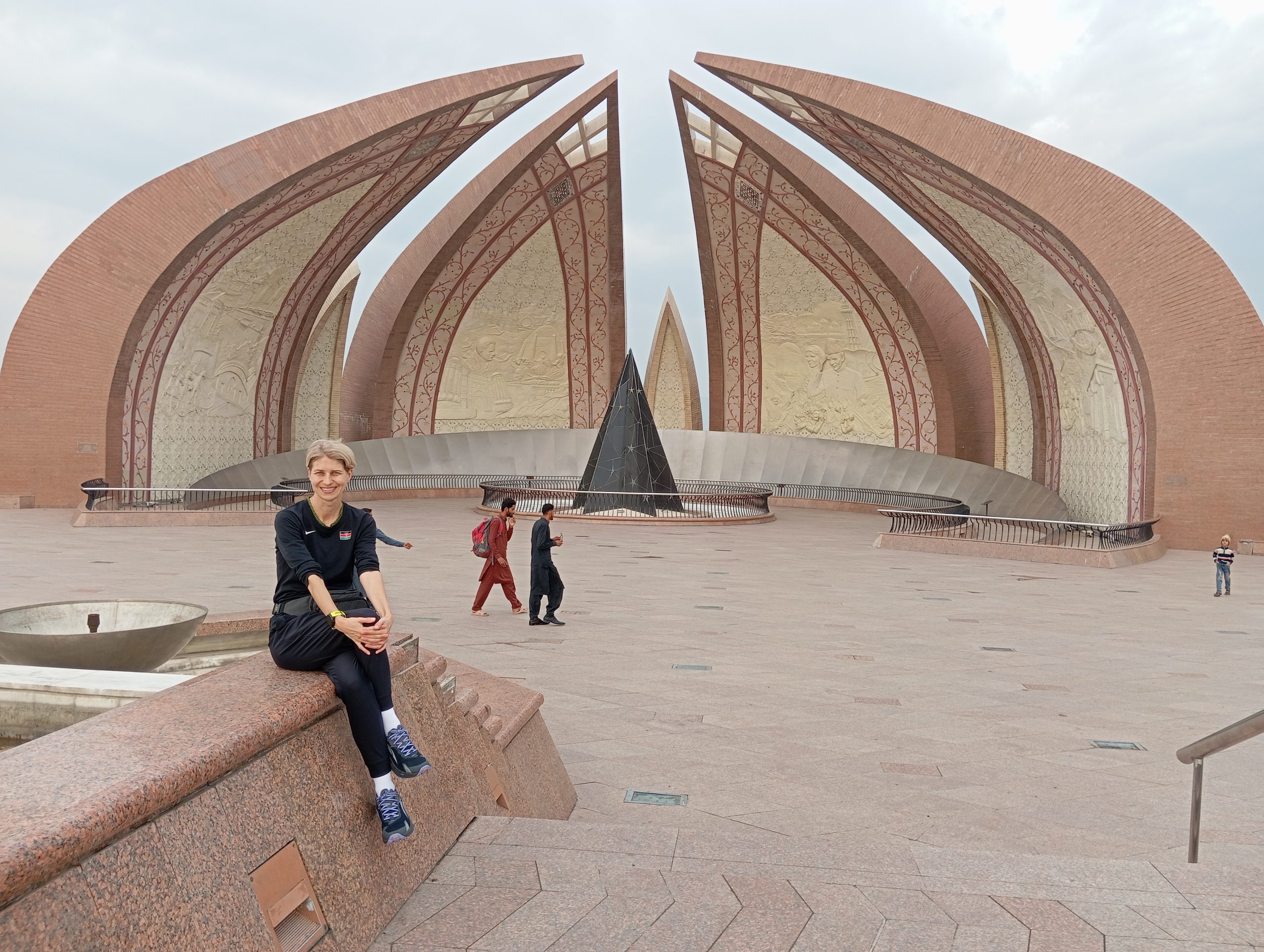 Pojechaliśmy na wzgórze z monumentem, symbolem Islamabadu. Cztery łuki symbolizują regiony kraju. Znajdują się na nich rzeźbienia przedstawiające różne ważne budowle, wydarzenia, sceny z życia.
