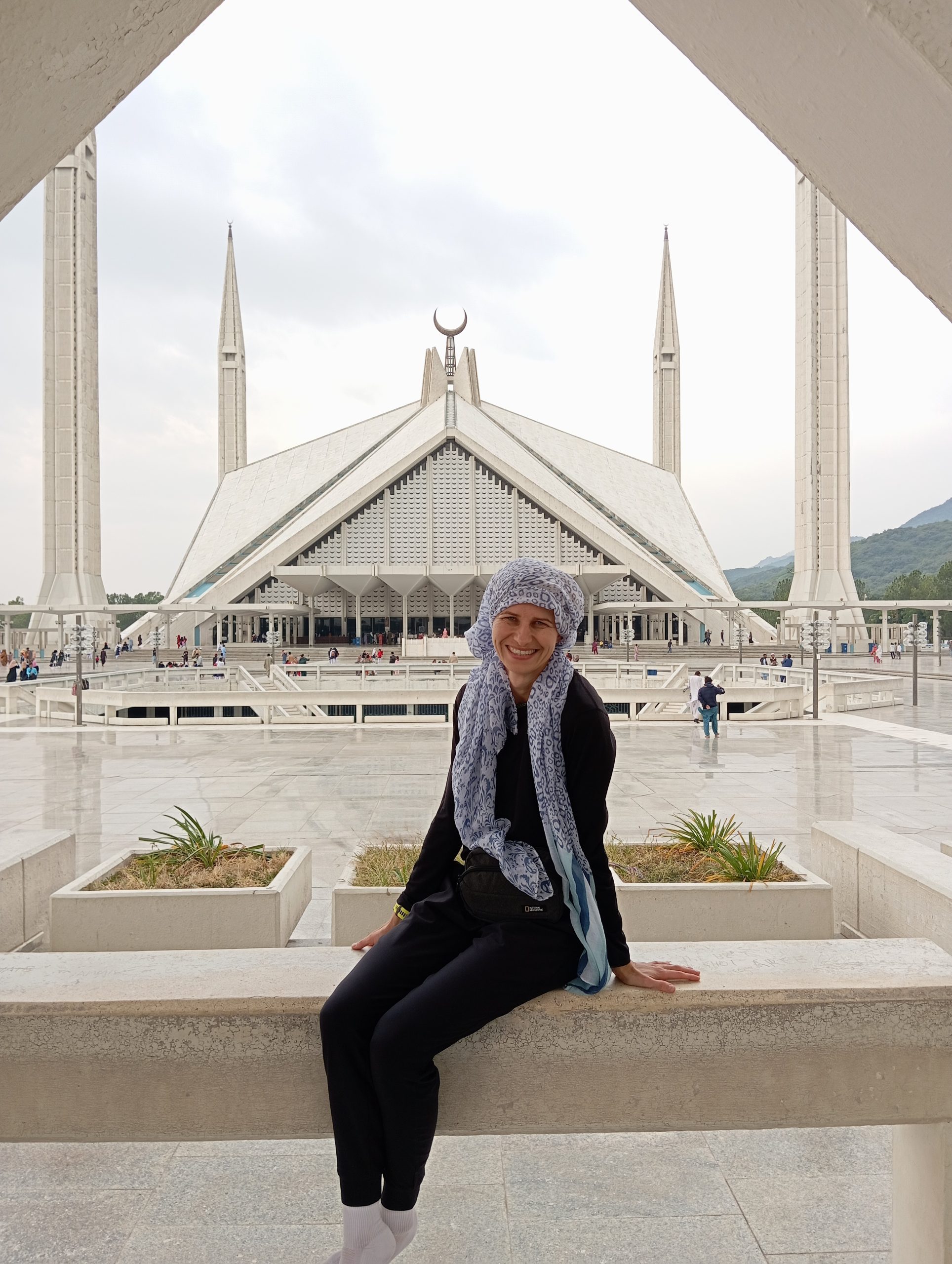 Ostatnim punktem była wizyta przed Meczetem Faisala. Ogromny gmach z minaretami, sporo ludzi na placu i otaczające go zielone Mergala Hills. Niestety nie udało się wejść do środka. Otwierają go tylko na modlitwę, a ta miała być za 2h. Po terenie obiektu, placu chodzi się boso lub w skarpetkach.