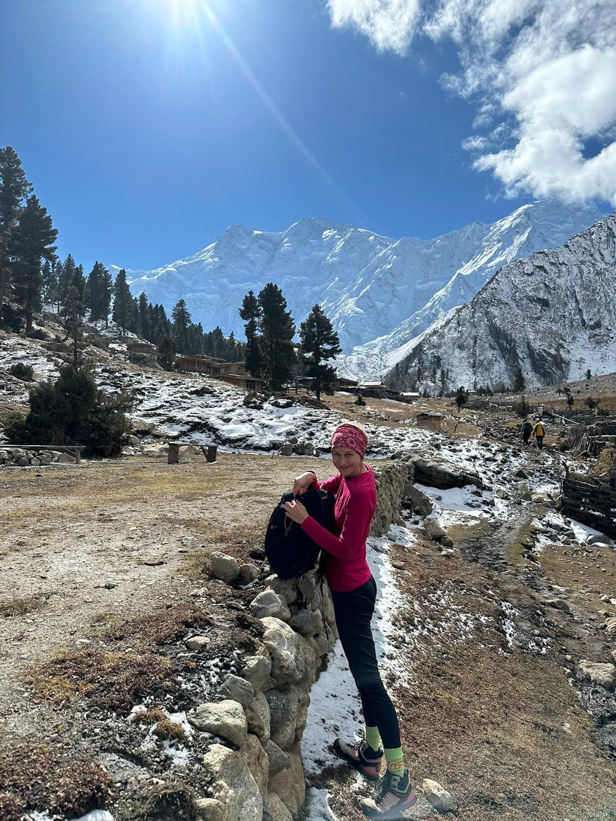 Kiedy doszłyśmy z Magdą do polany pracujący tam mężczyźni wskazali ręką, że z Nangi schodzi lawina. Widok był przerażający. Zwłaszcza, że wiedziałyśmy, że gdzieś tam jest część naszej ekipy. Nasz guide Ali spojrzał ledwo przez ramię mówiąc, że nasi są bezpieczni. My byłyśmy mniej tego pewne. Ale po kilkukrotnym zapewnieniu nas i ogólnym braku przejęcia się lawiną przez kogokolwiek siedzącego na polanie uznałyśmy, że zapewne wiedzą lepiej.